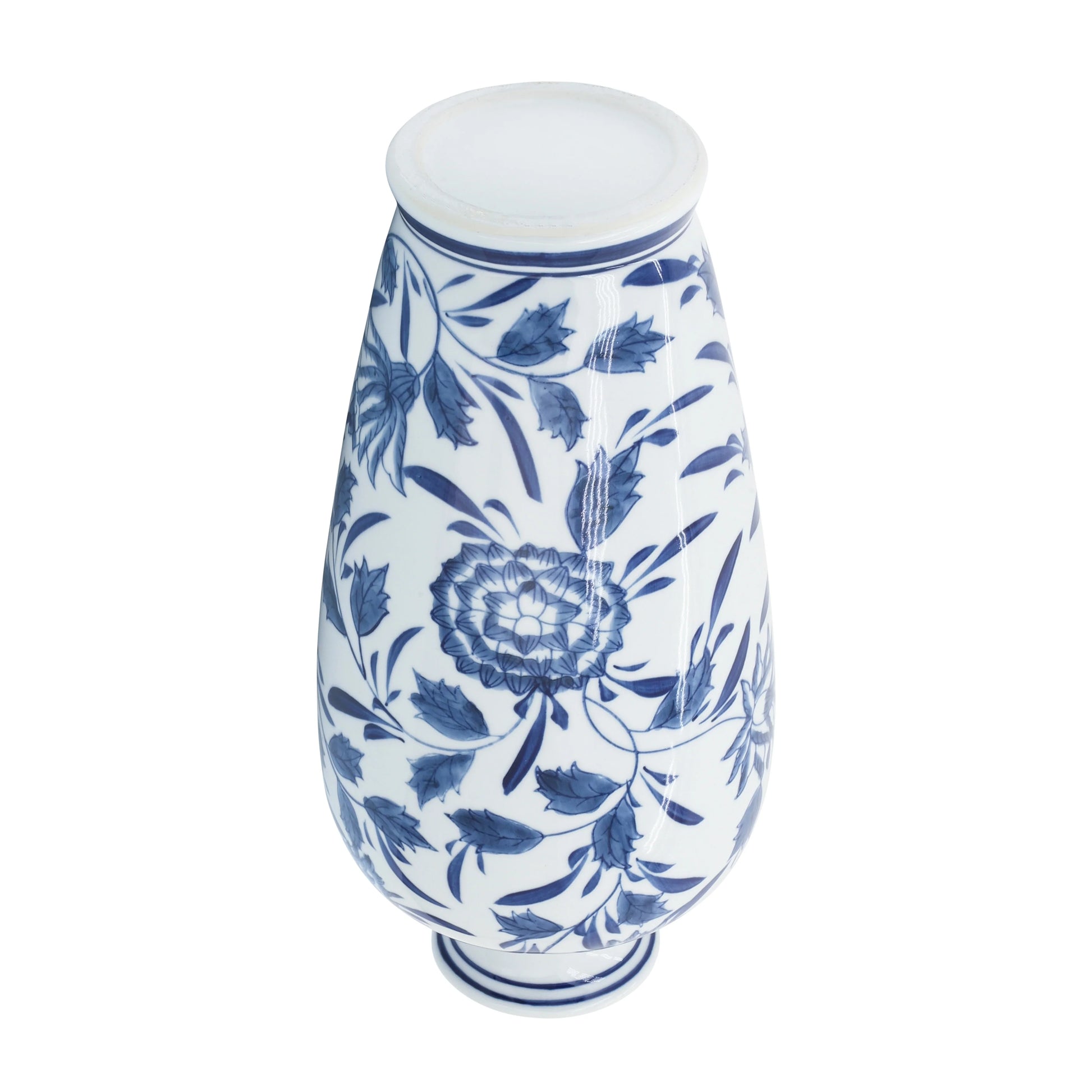 - This ceramic vase comes in a beautiful mix of blue and white coloring. The stunning vase has a gorgeous Chinoiserie design of vines and flowers that will bring a sophisticated look to your space!