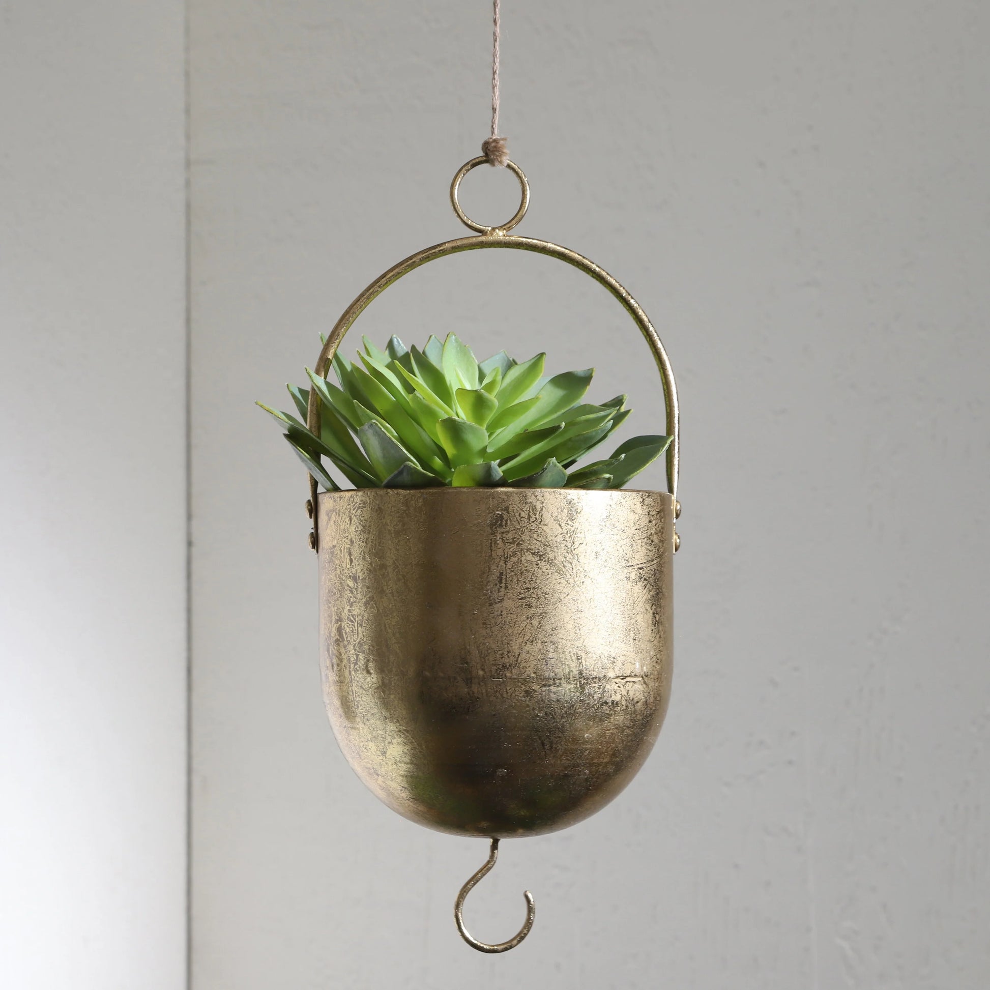 Go for the gold! Add a fun and creative hanging planter to the mix to plant your favorite succulents, cacti and other small plants. Hang in your kitchen window, on your patio or porch, or anywhere you'd like to see more plant life thrive. Made out of iron, it's not only an attractive addition to your home, it's high quality and durable! Consider giving as a gift to your plant-loving pals!