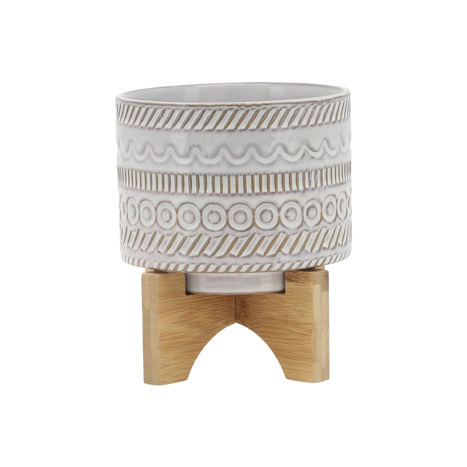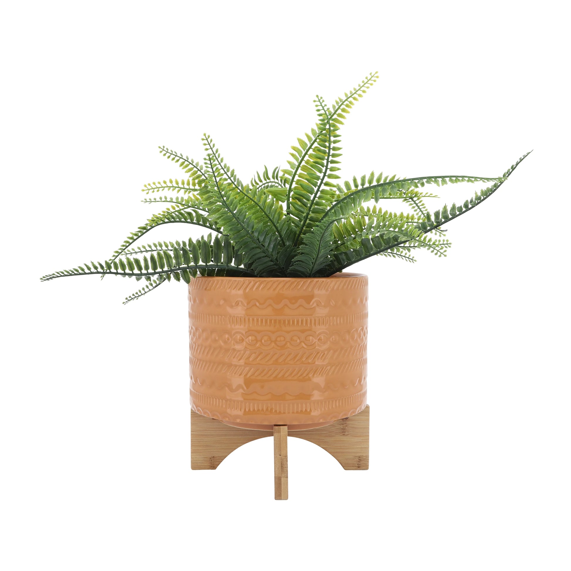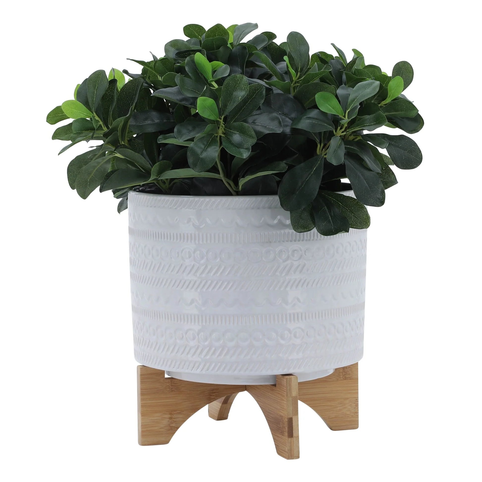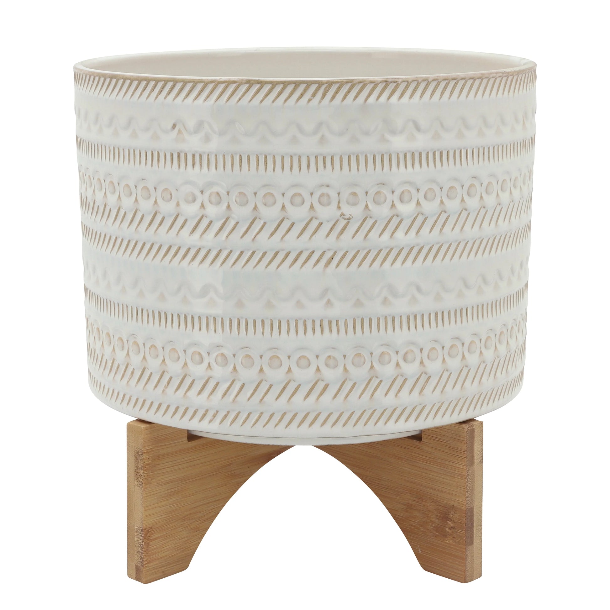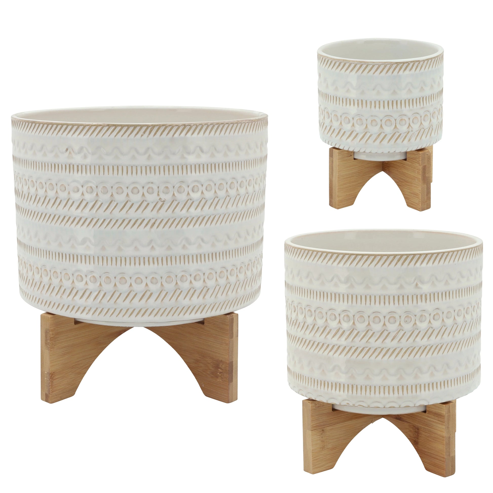 Sagebrook Home Tribal Ceramic Planter Pot with Natural Wood Stand