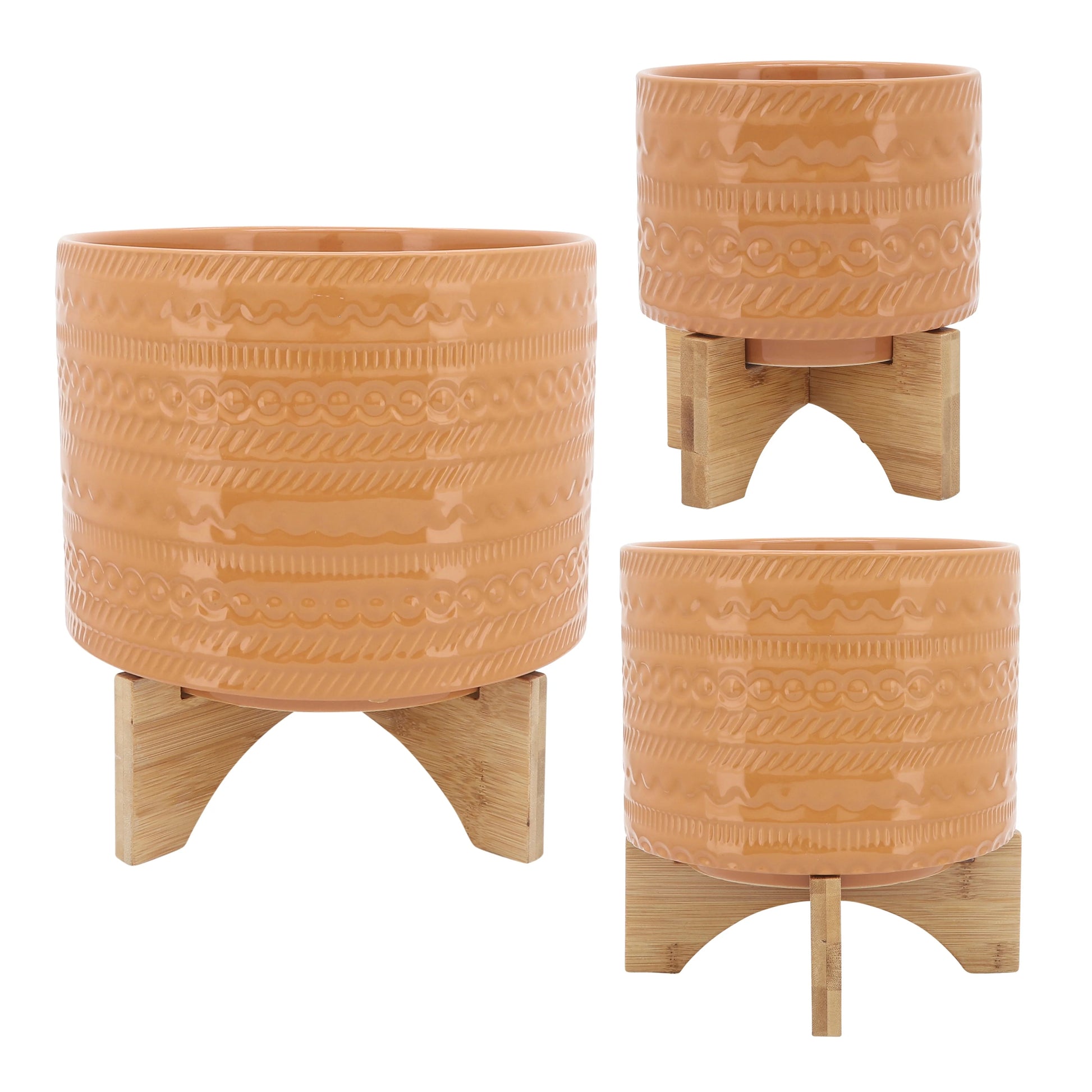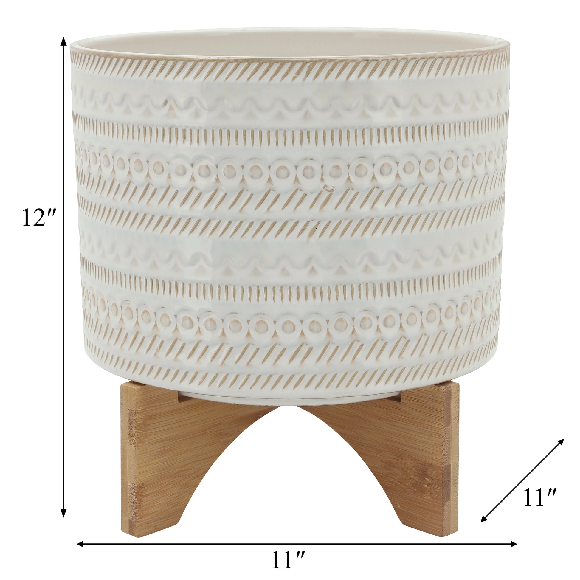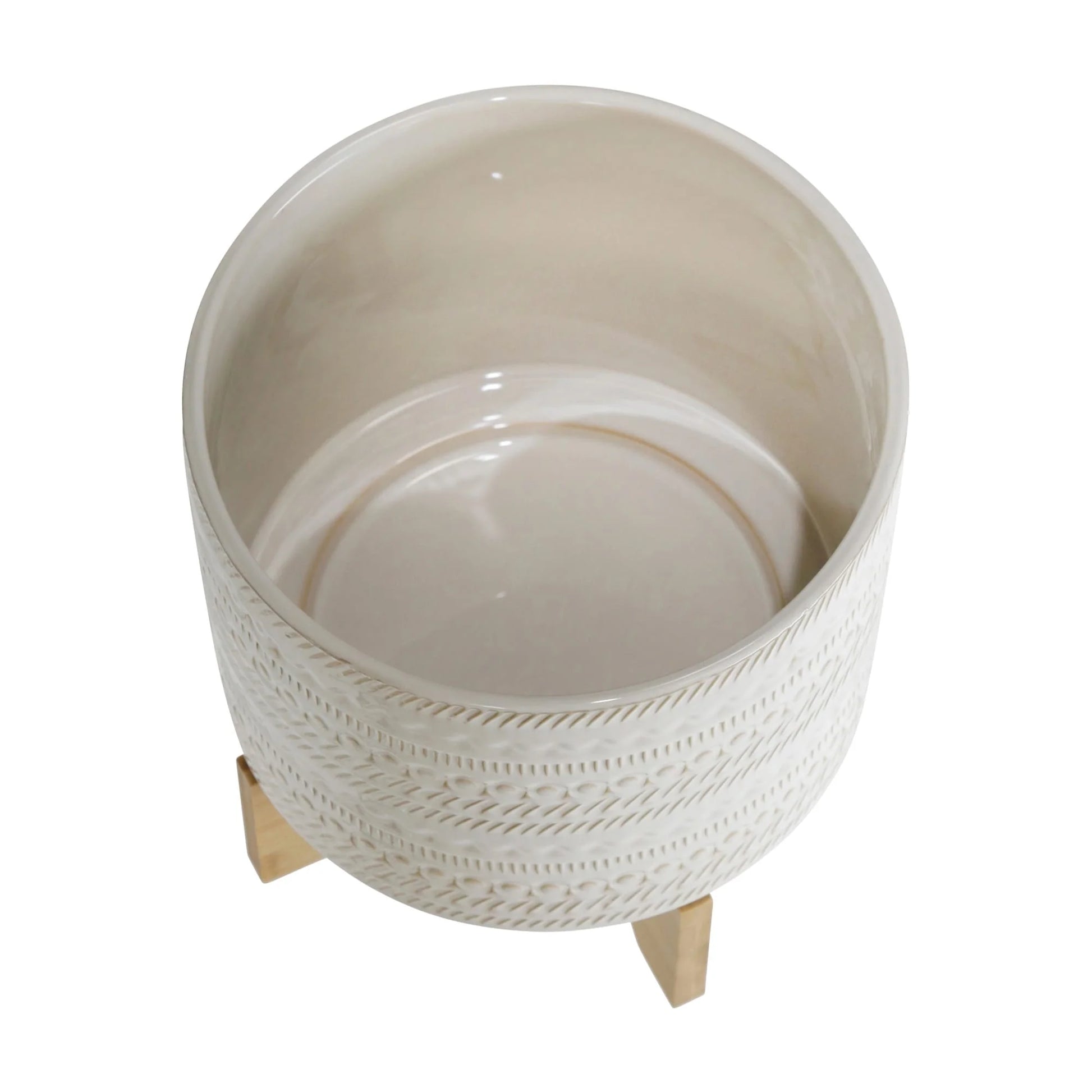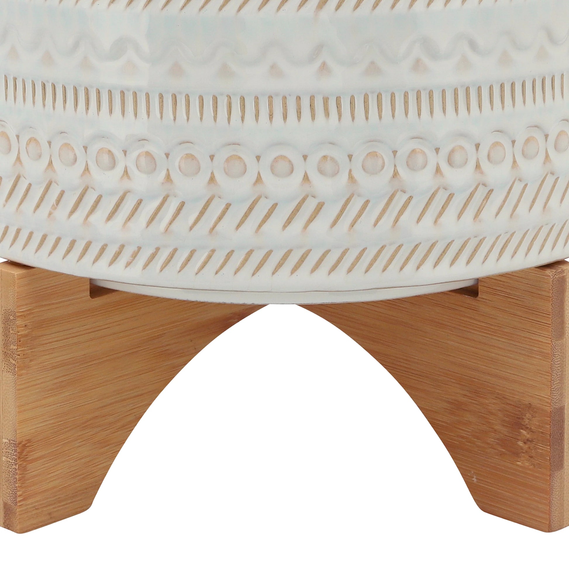 Sagebrook Home Tribal Ceramic Planter Pot with Natural Wood Stand