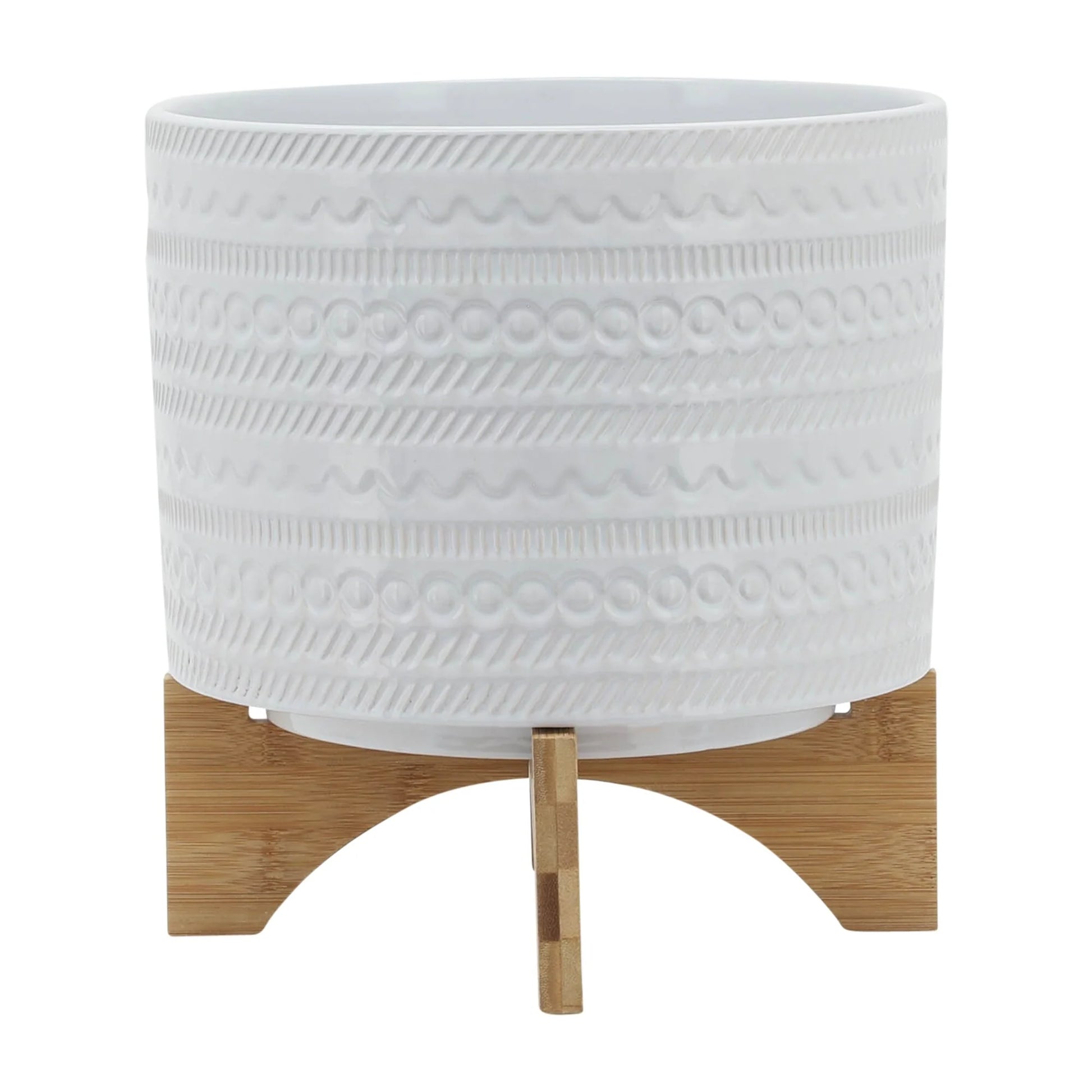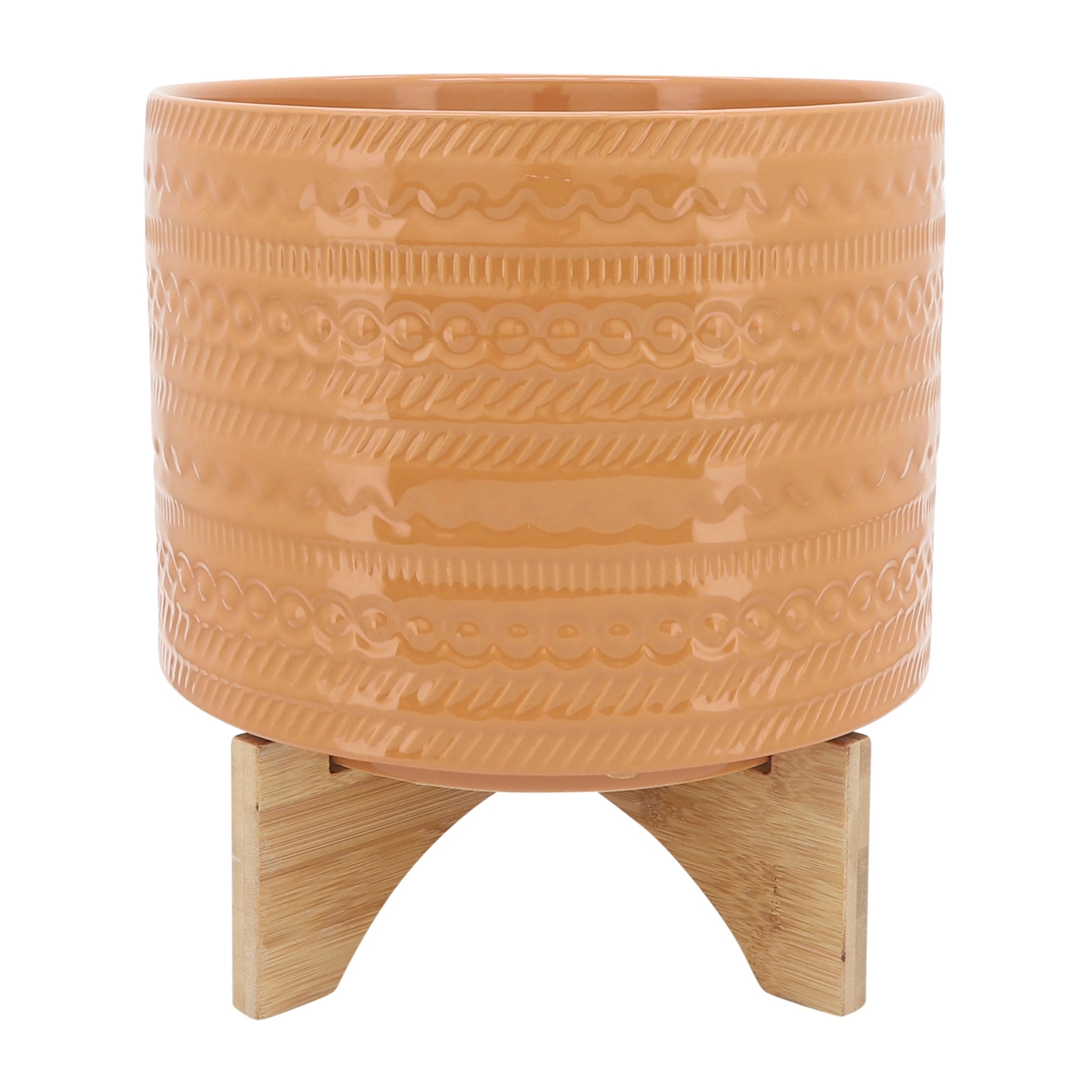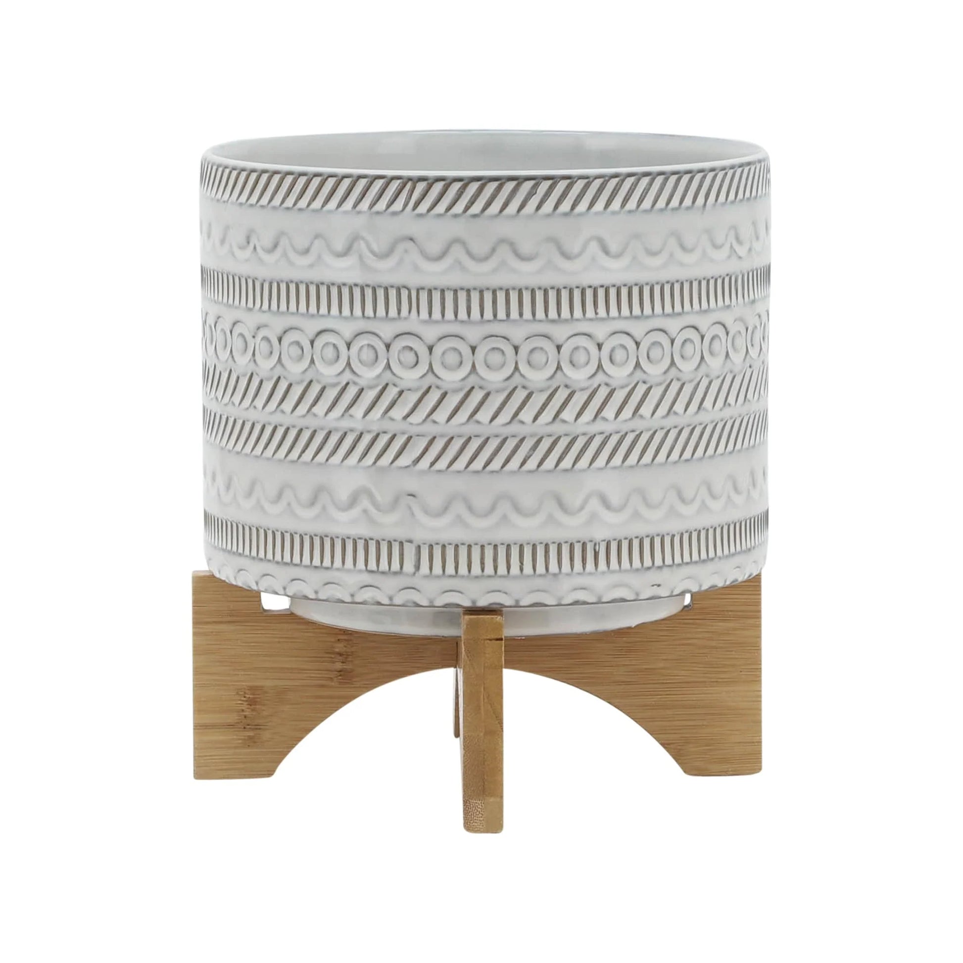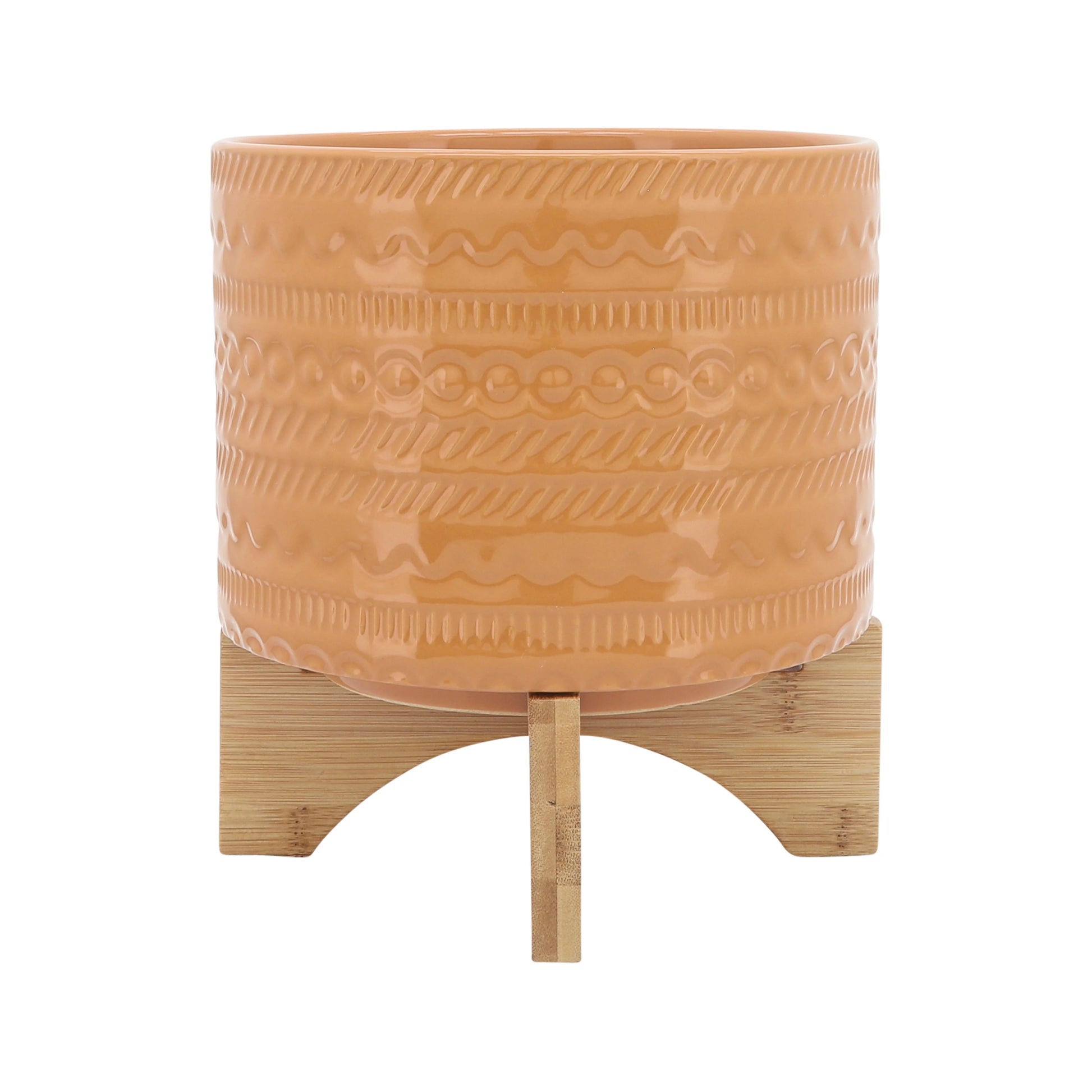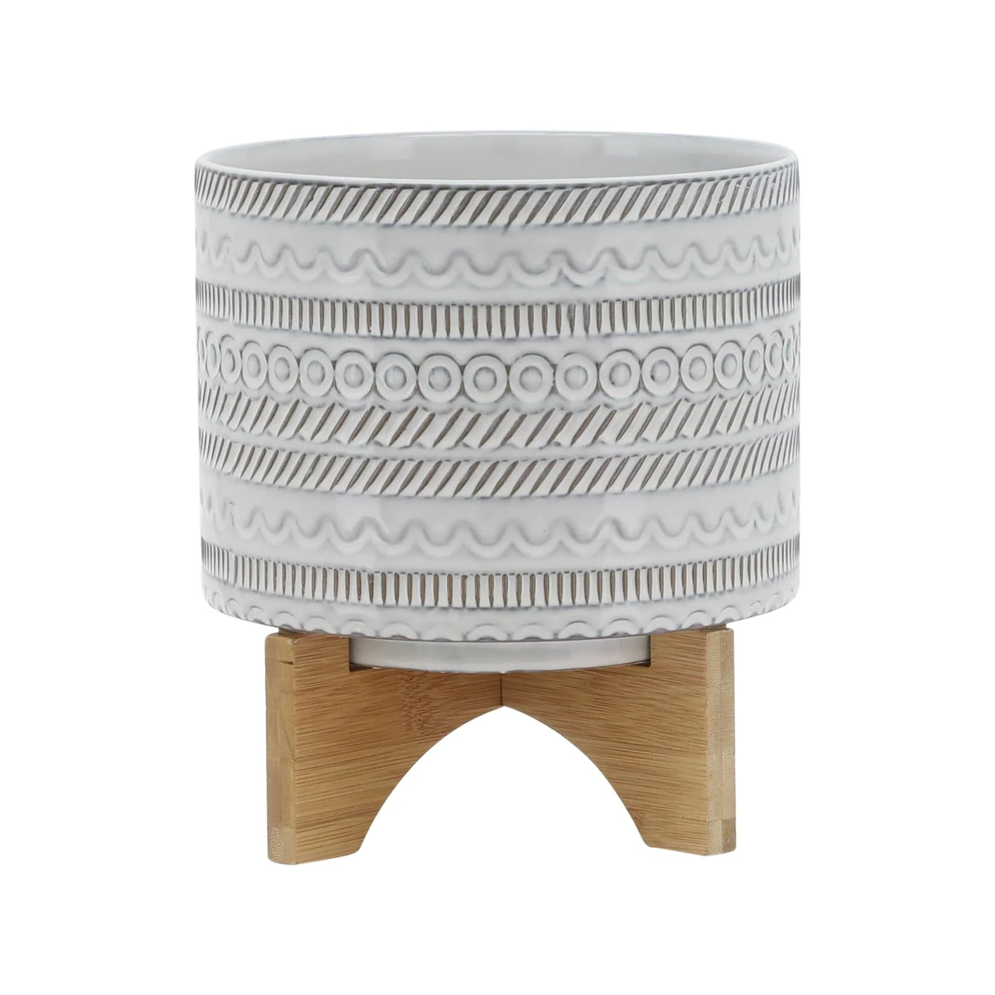 Sagebrook Home Tribal Ceramic Planter Pot with Natural Wood Stand