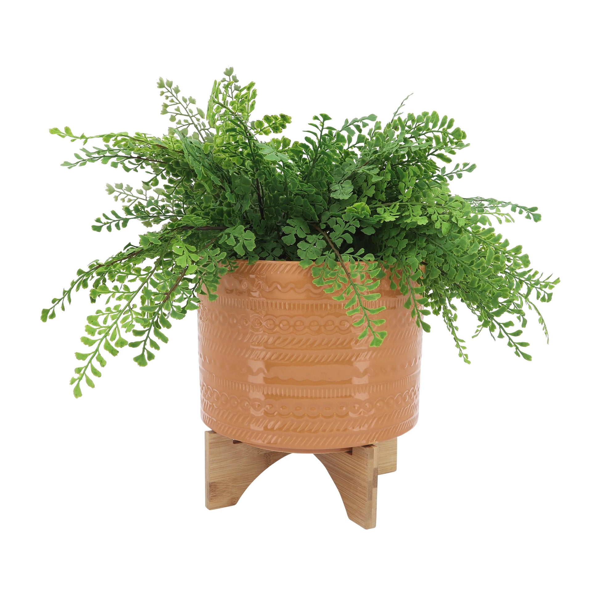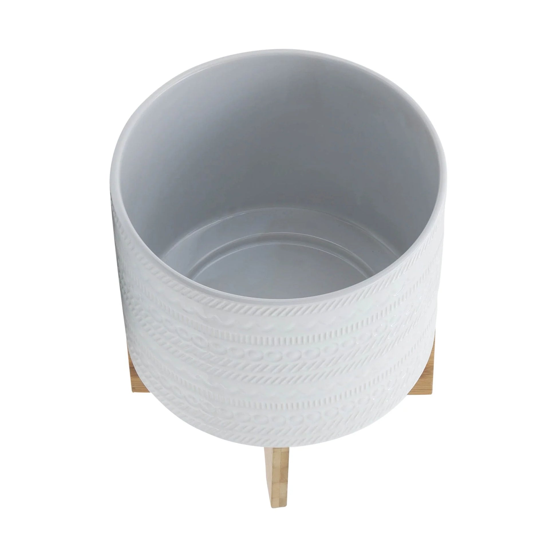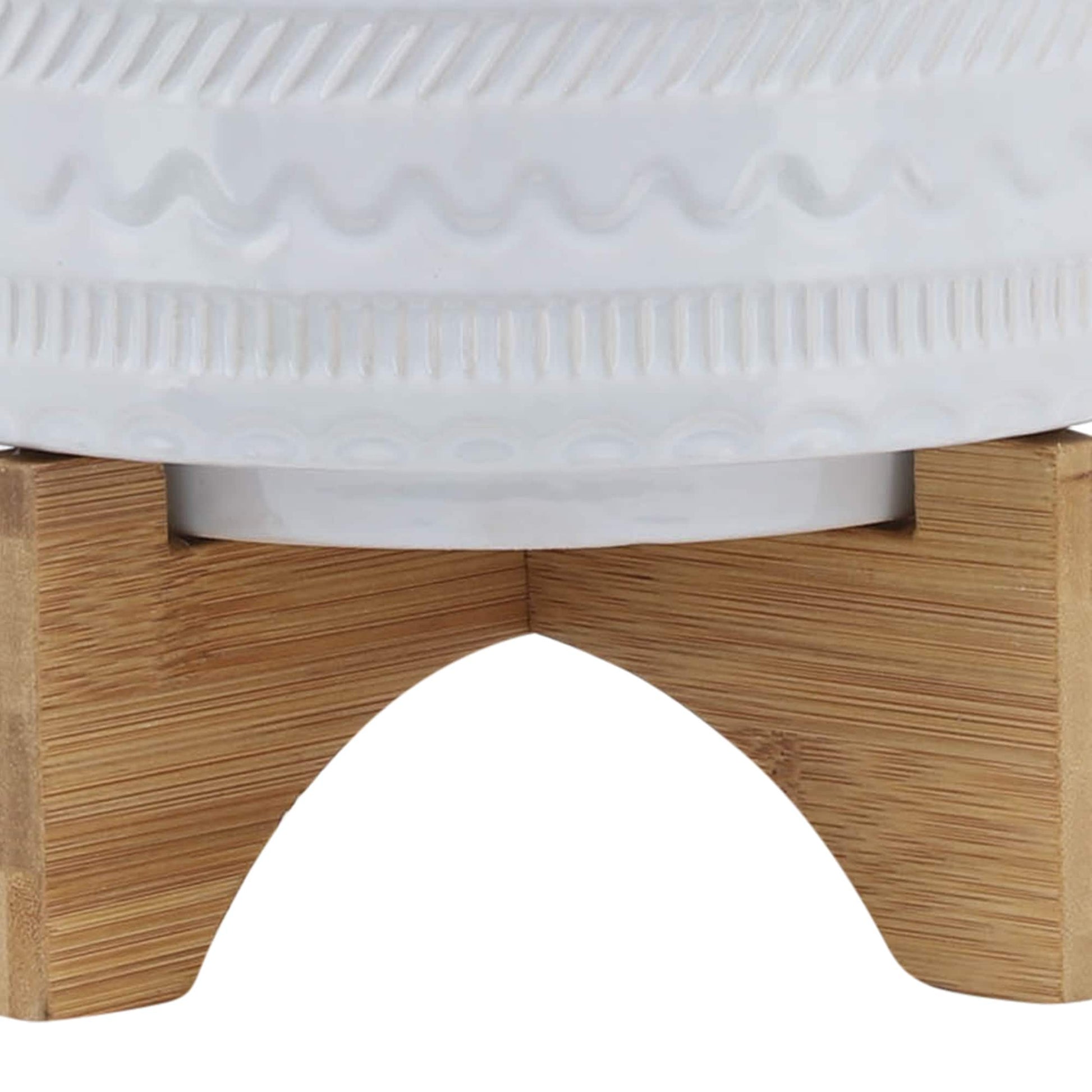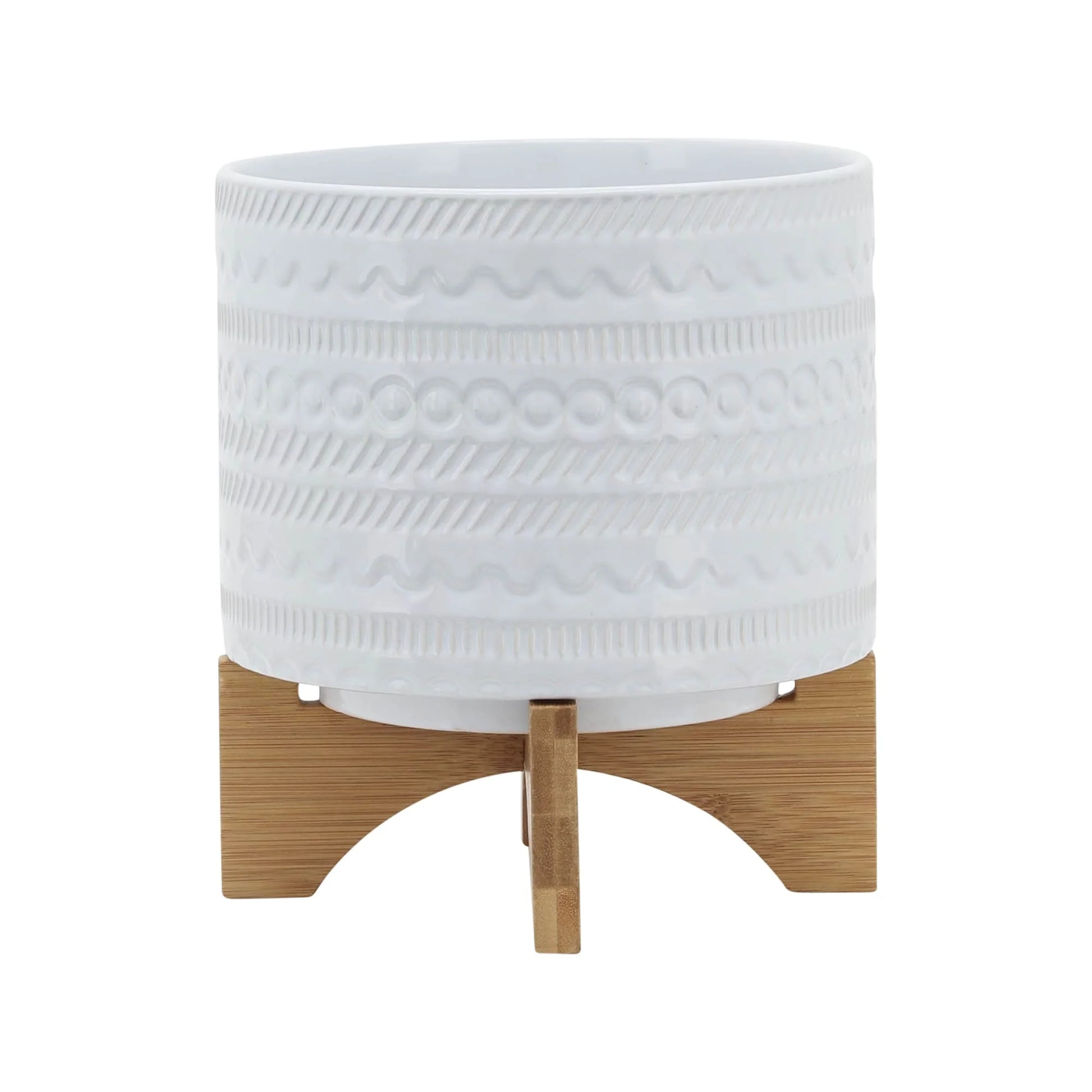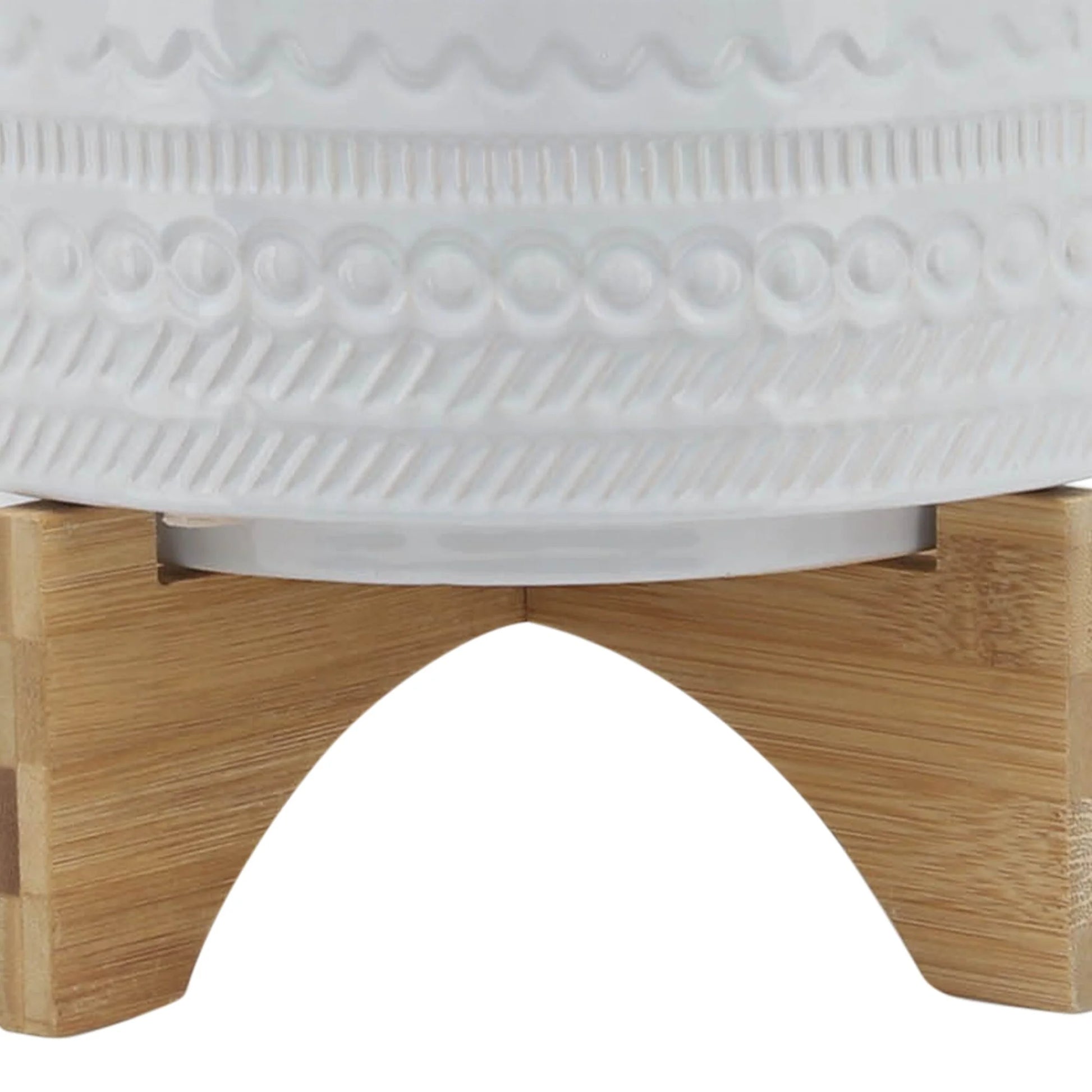 Sagebrook Home Tribal Ceramic Planter Pot with Natural Wood Stand
