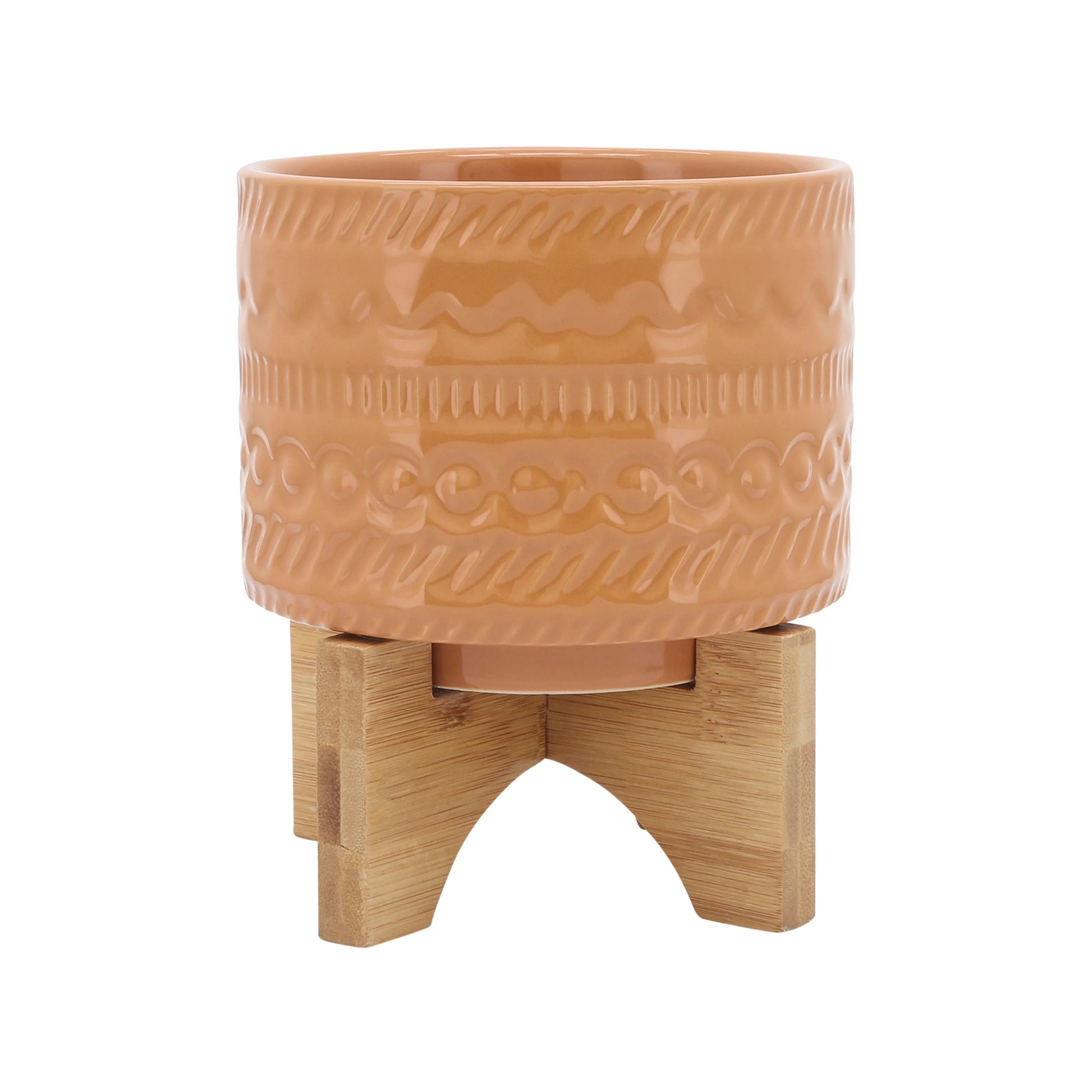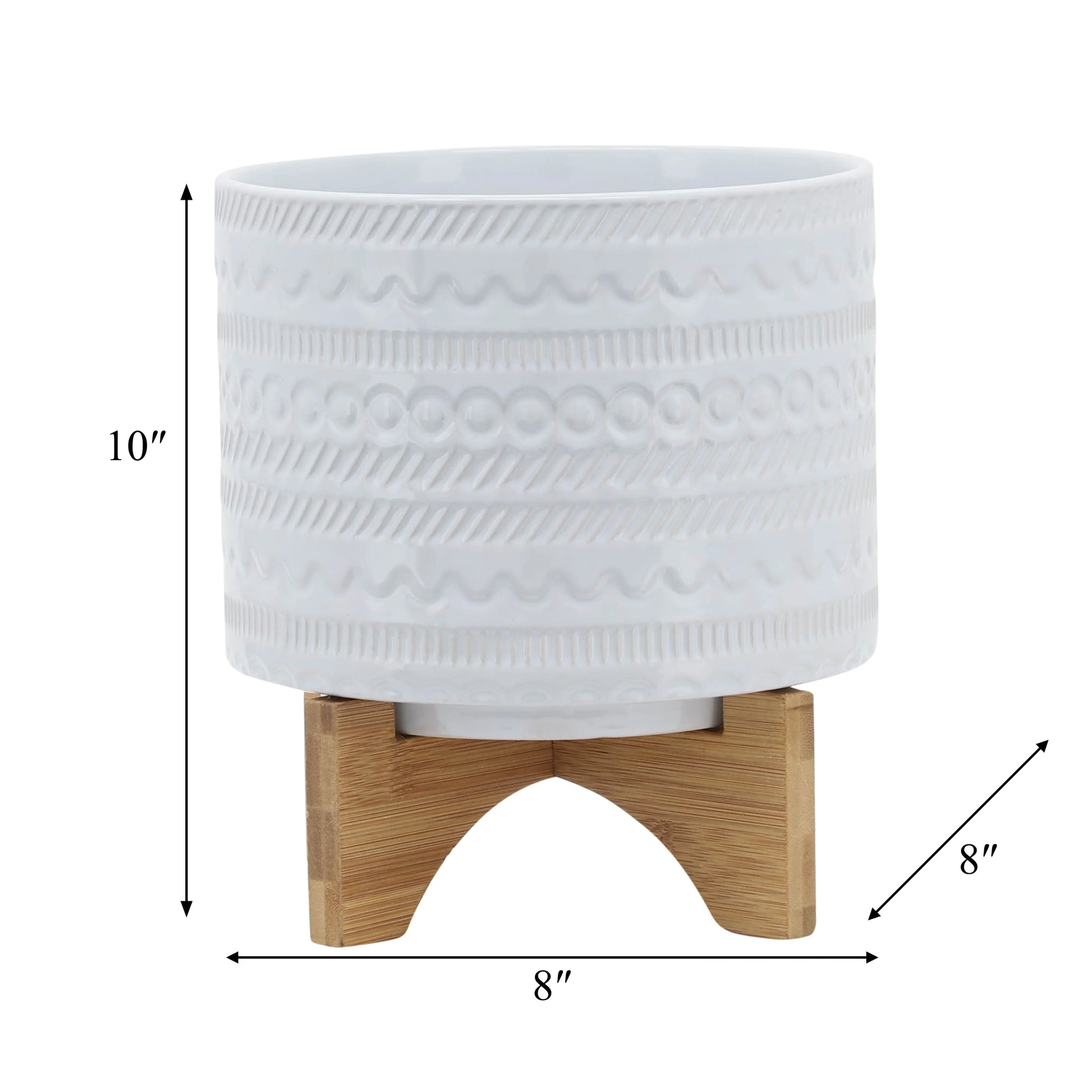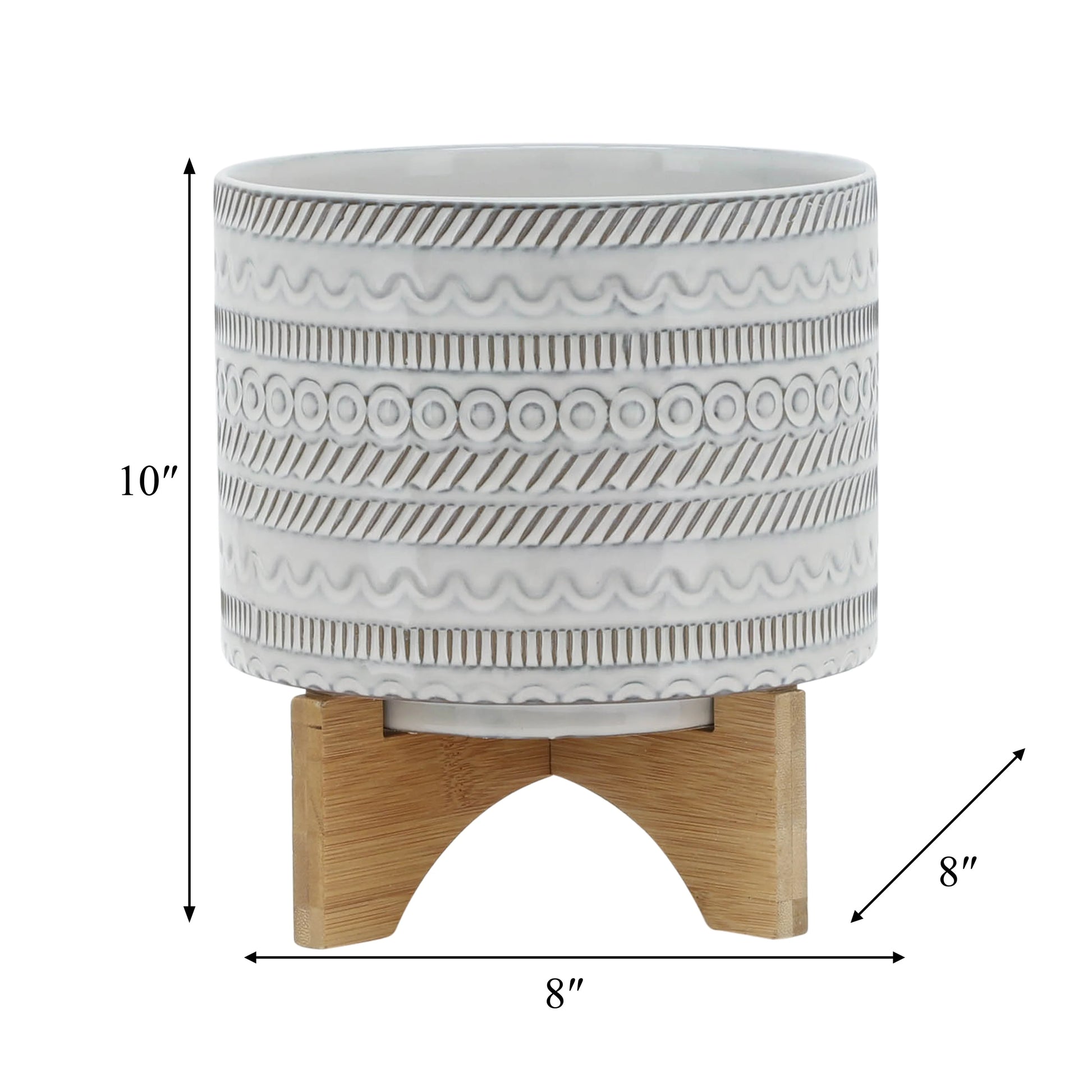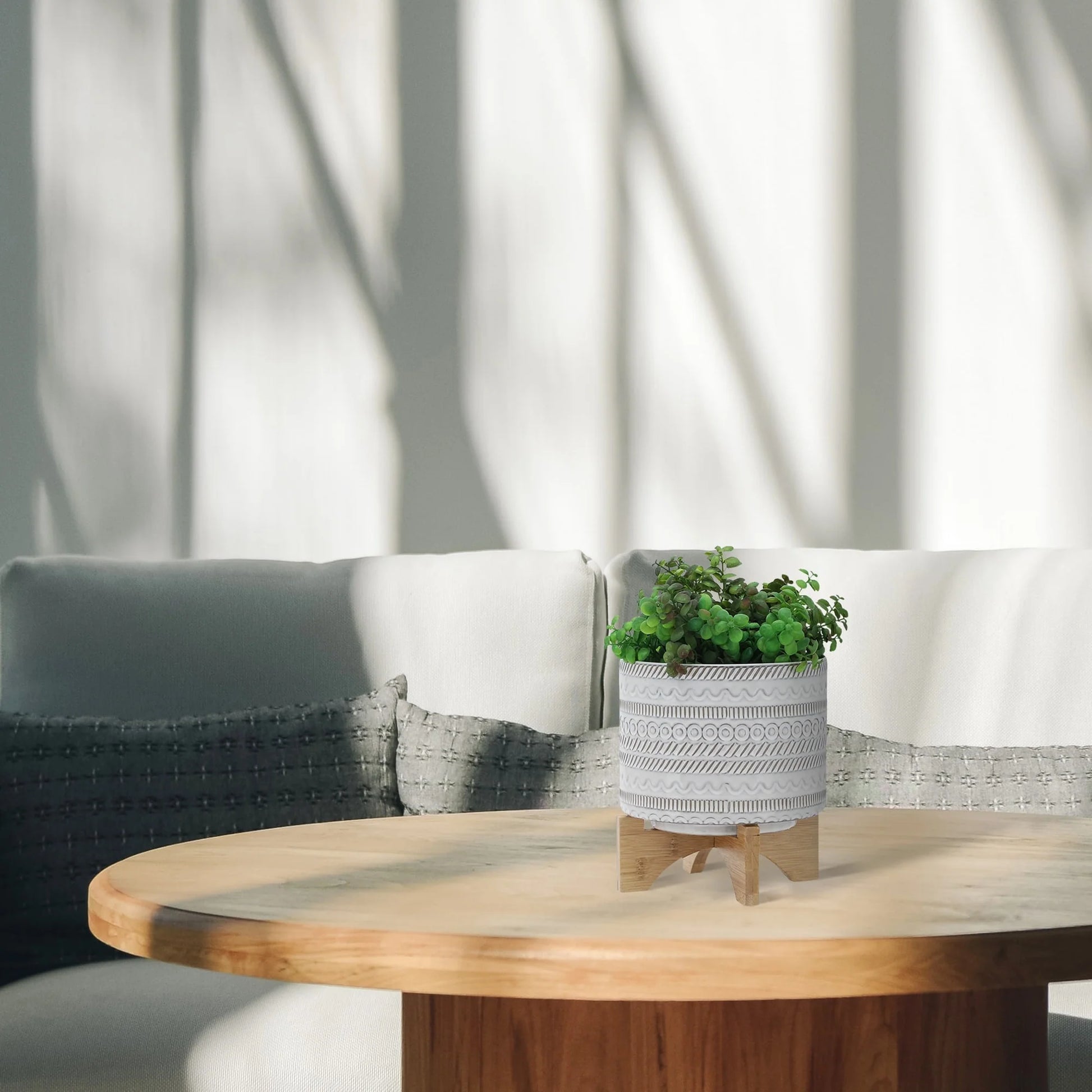 Sagebrook Home Tribal Ceramic Planter Pot with Natural Wood Stand