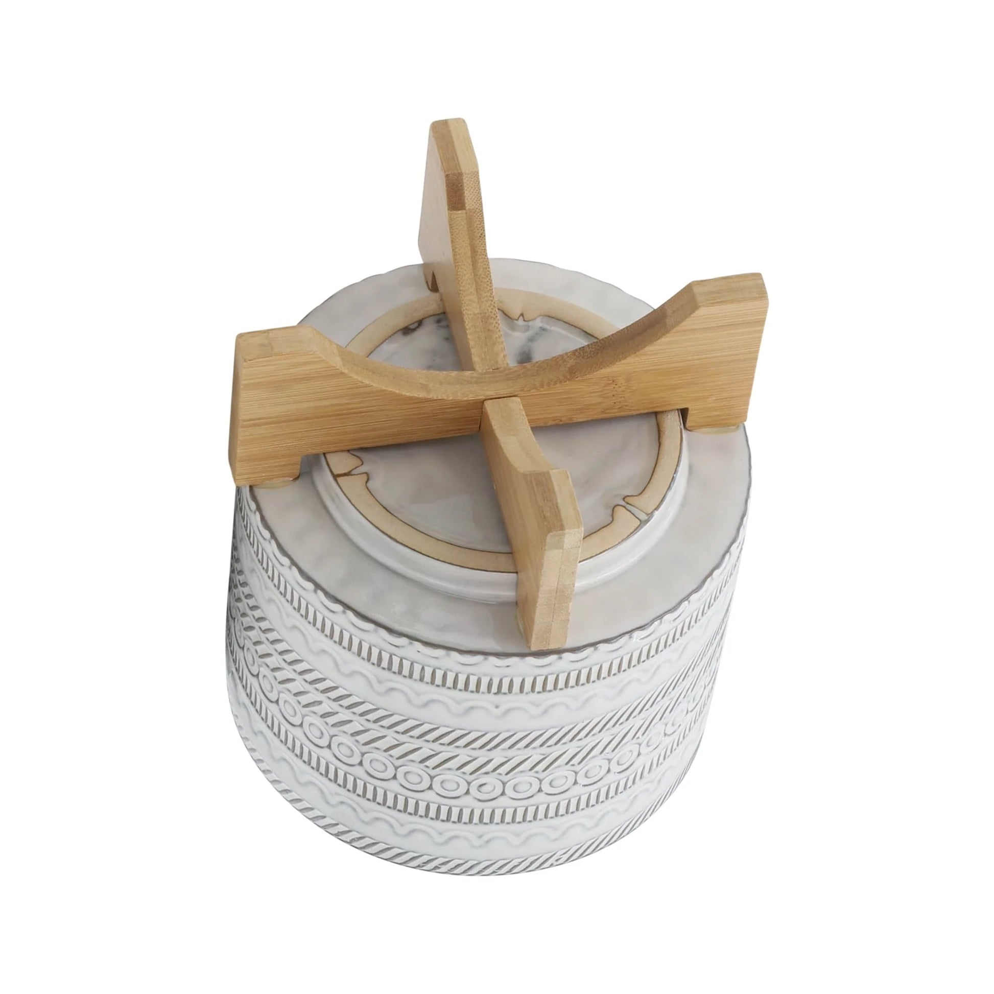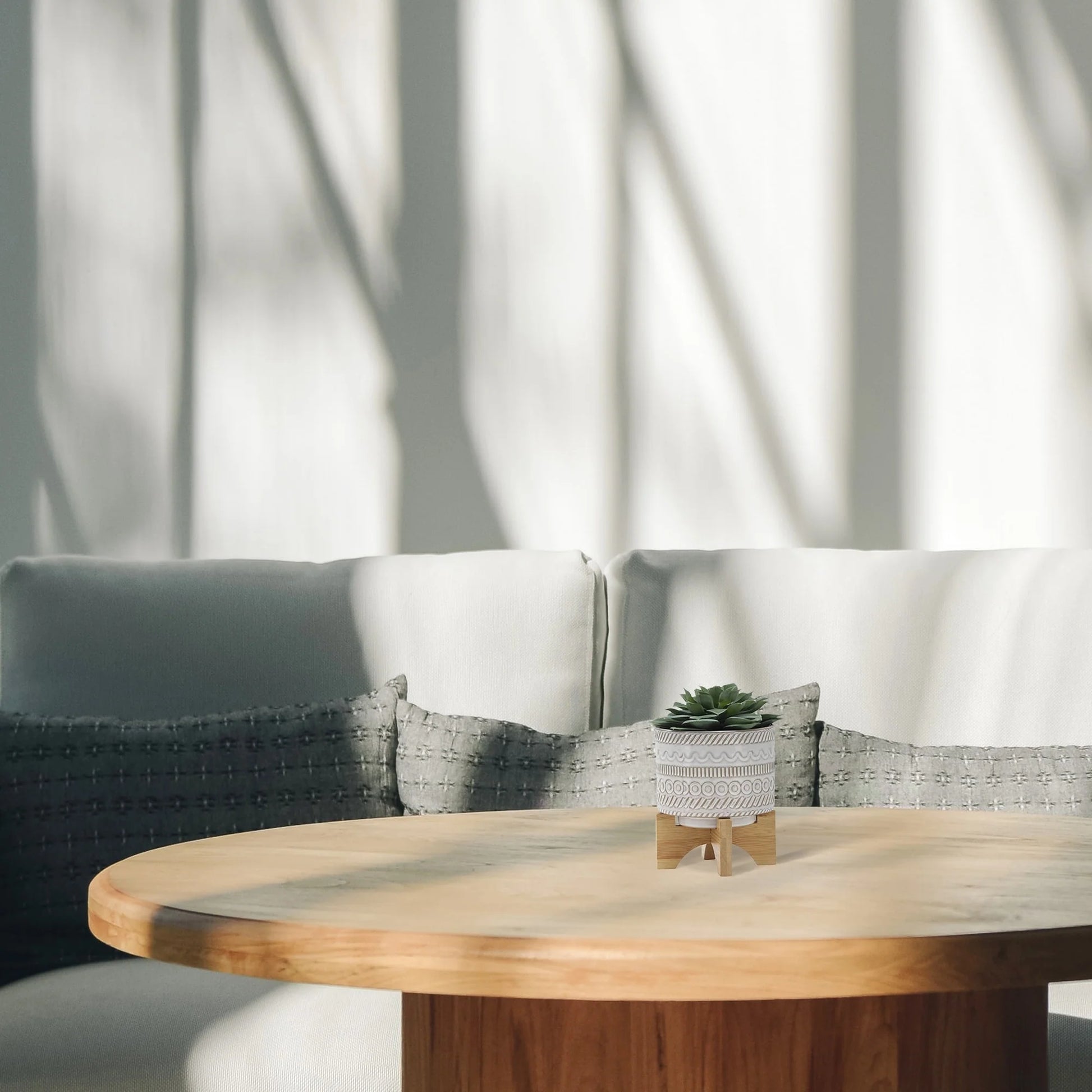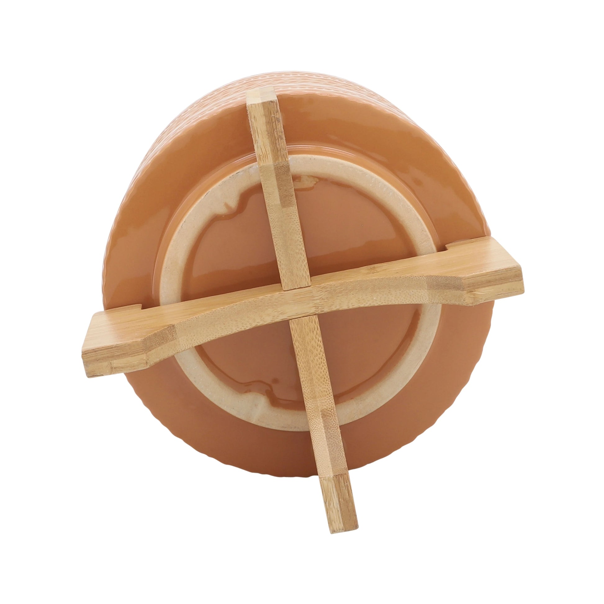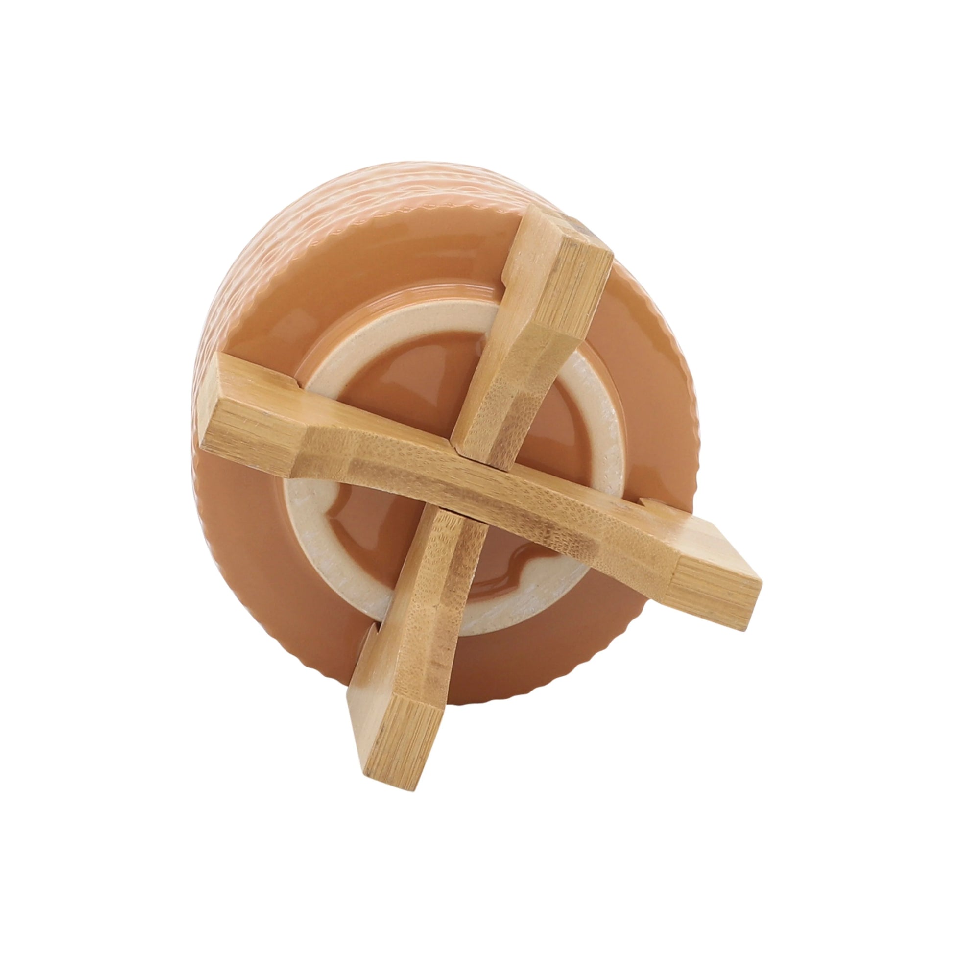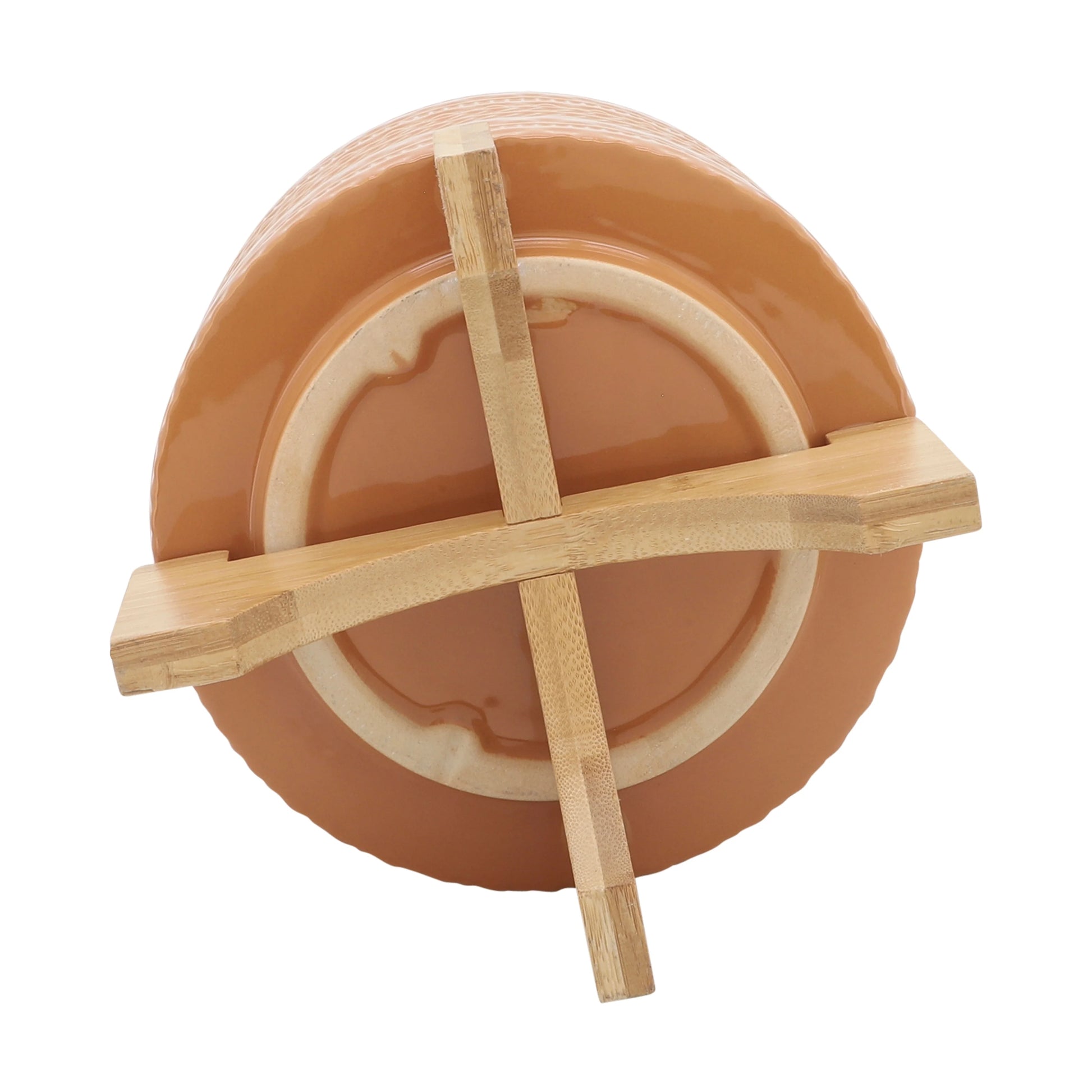 Sagebrook Home Tribal Ceramic Planter Pot with Natural Wood Stand
