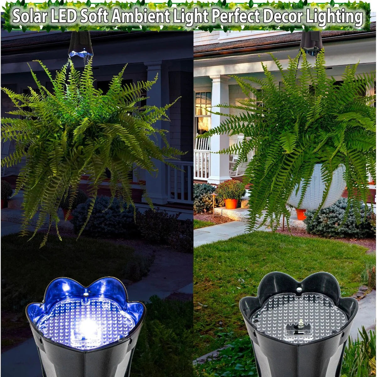 EASY INSTALLATION AND ADJUSTABLE DESIGN HANGING SOLAR LIGHT PLANTER : Our solar hanging baskets feature an easy-to-install and adjustable design, offering flexibility to modify the height and angle of the planter to suit your space or your plants' needs.