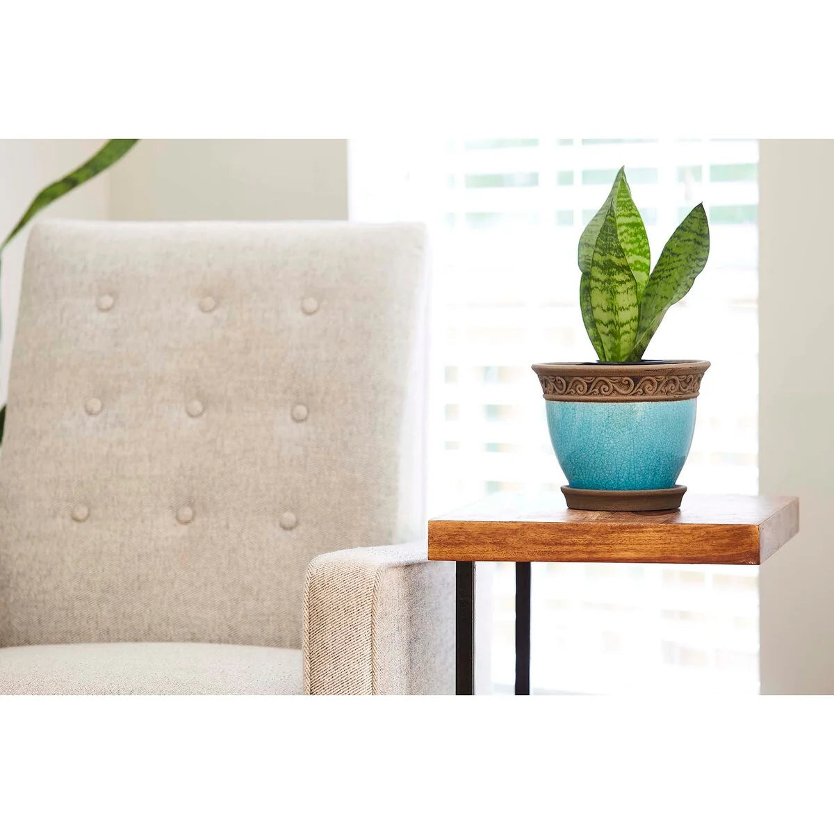 A subtle crackle effect and high-gloss finish accentuate the elegant dual tones and decorative embossing of Southern Patio's Cadiz planter. To truly make a statement, plant contrasting bright, blooming florals and hardy succulents in this one-of-a-kind ceramic pot.