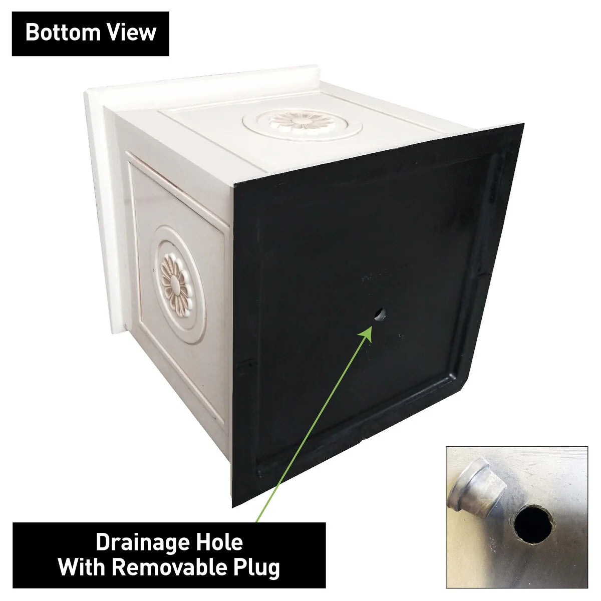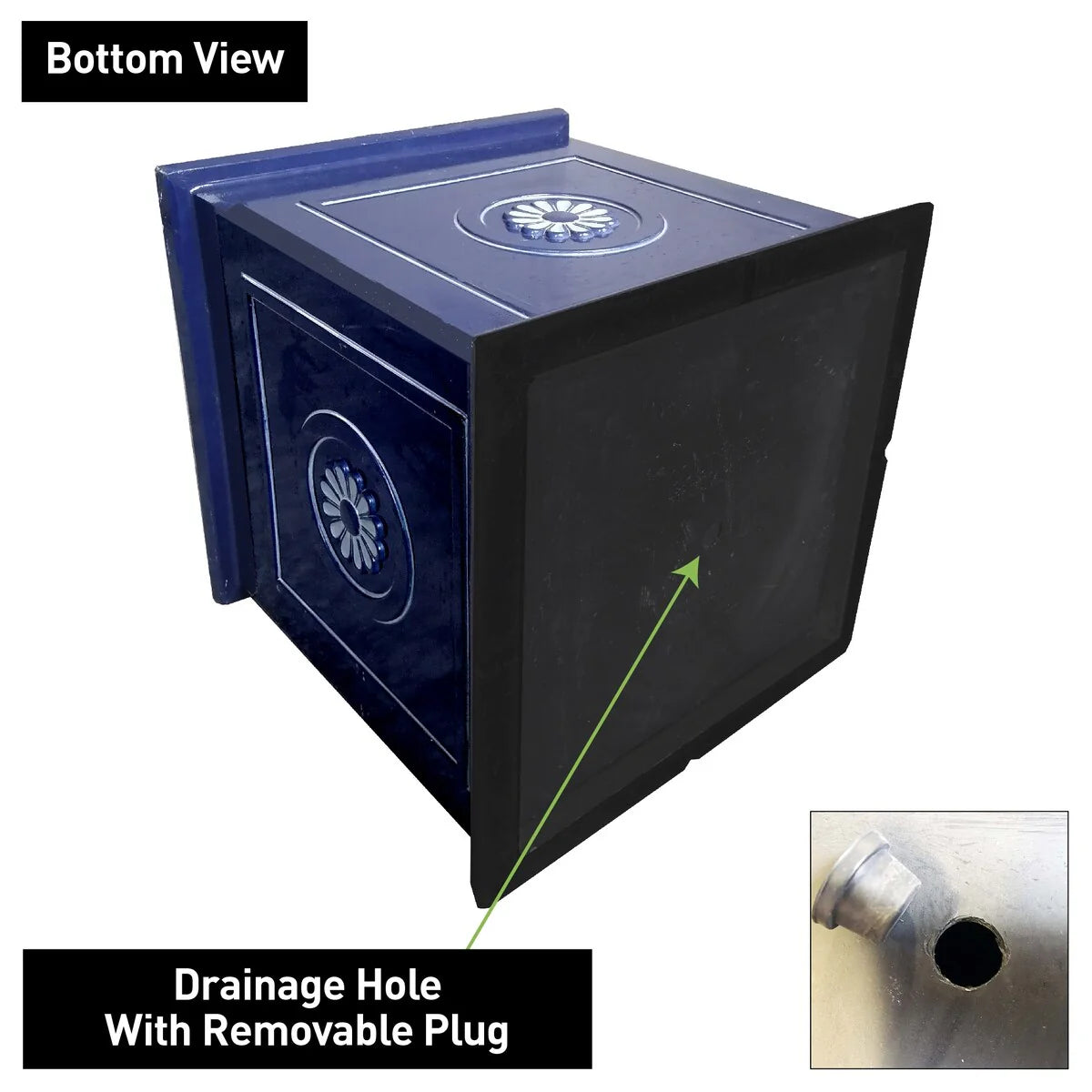 - Includes a drainage hole with a plug for healthy plants