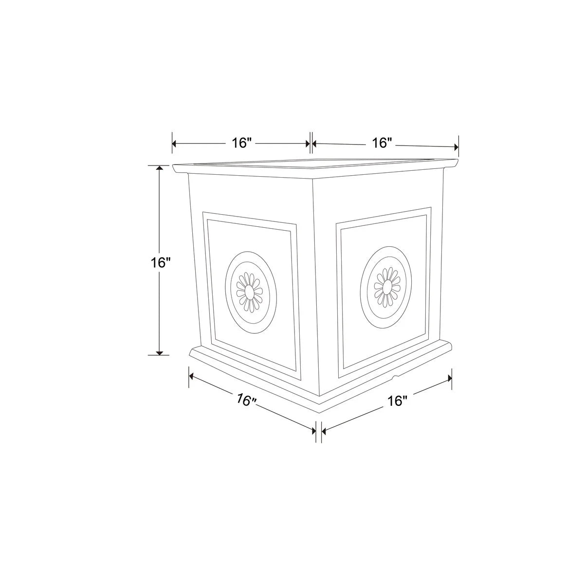 - Measures 16 inches wide x 16 inches deep x 16 inches high