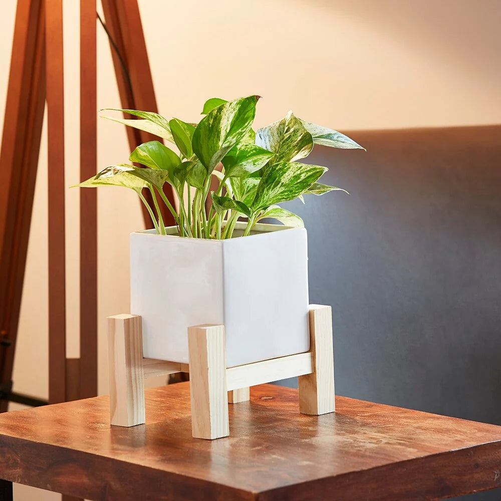 Southern Patio Hemingway Ceremic Square Indoor Planter with Wooden Stand