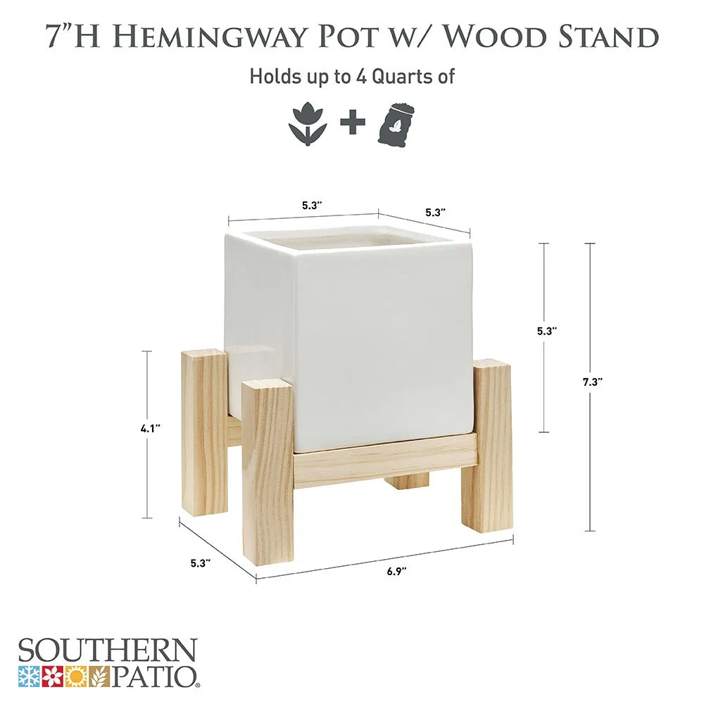 Bring symmetry to your home with an authentic ceramic planter by Southern Patio. Sitting in a wooden stand, this heavy-duty, one-of-a-kind square planter accents bright, dazzling florals. Small in size, the Hemingway planter is ideal for growing succulents and other small plants.