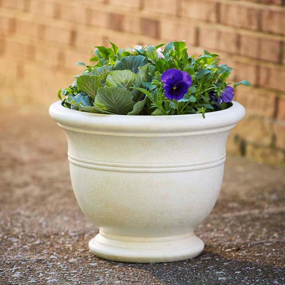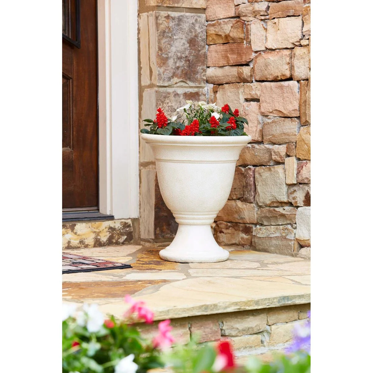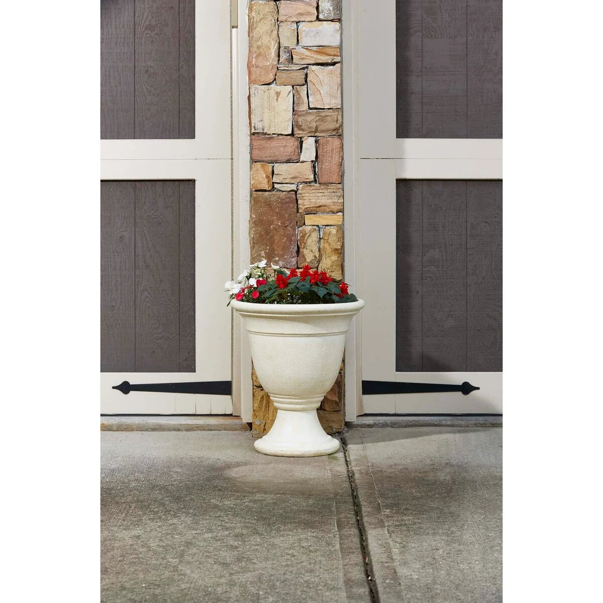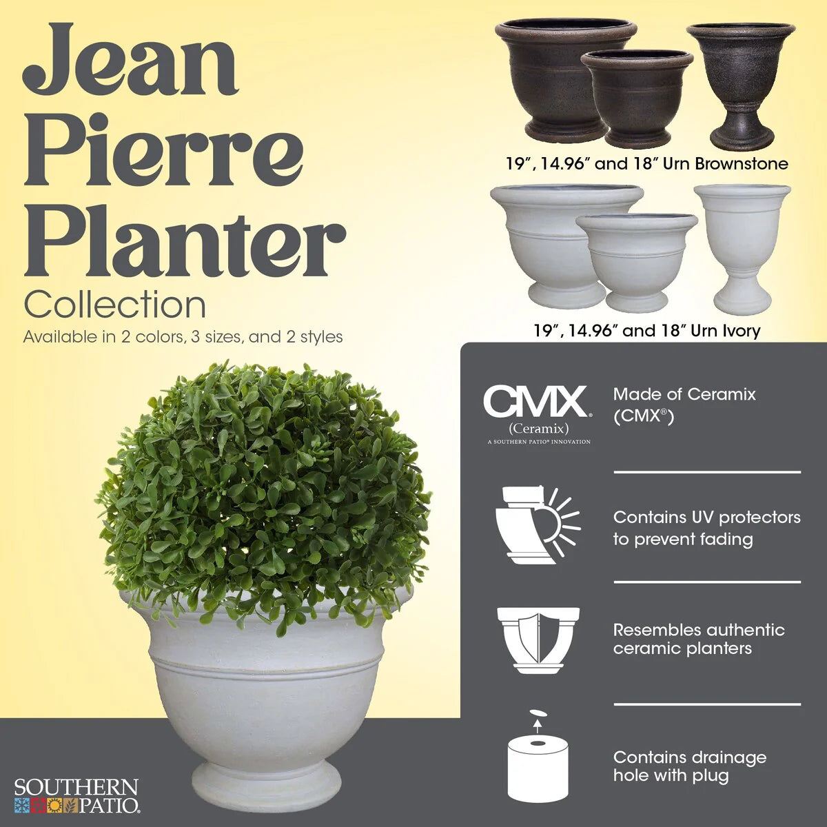 The Southern Patio Jean Pierre Urn Planter is a beautifully crafted and cost-efficient outdoor container option that adds elegance to any seasonal decor. With its hand-crafted details and beautiful finish, it's perfect for any draping flower arrangement. It comes in Ivory and Brownstone and features a hole with a plug for adequate drainage when used outdoors.