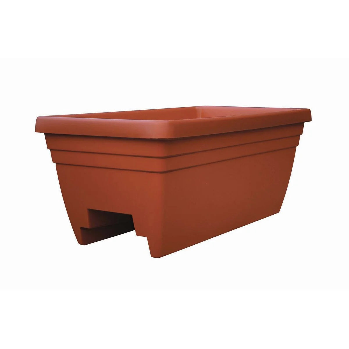 The Southern Patio Sonoma Railing Planter is an affordable and convenient choice for any gardener. Made of durable poly-resin, this lightweight planter is a breeze to move around while still being sturdy enough for everyday use. With a UV-coated finish that keeps its colors bright all year long, this plastic planter is available in a variety of colors to match any outdoor decor. Installing it on railings is a breeze, and your plants will thrive inside – just be sure to drill drainage holes in the bottom for optimal health.