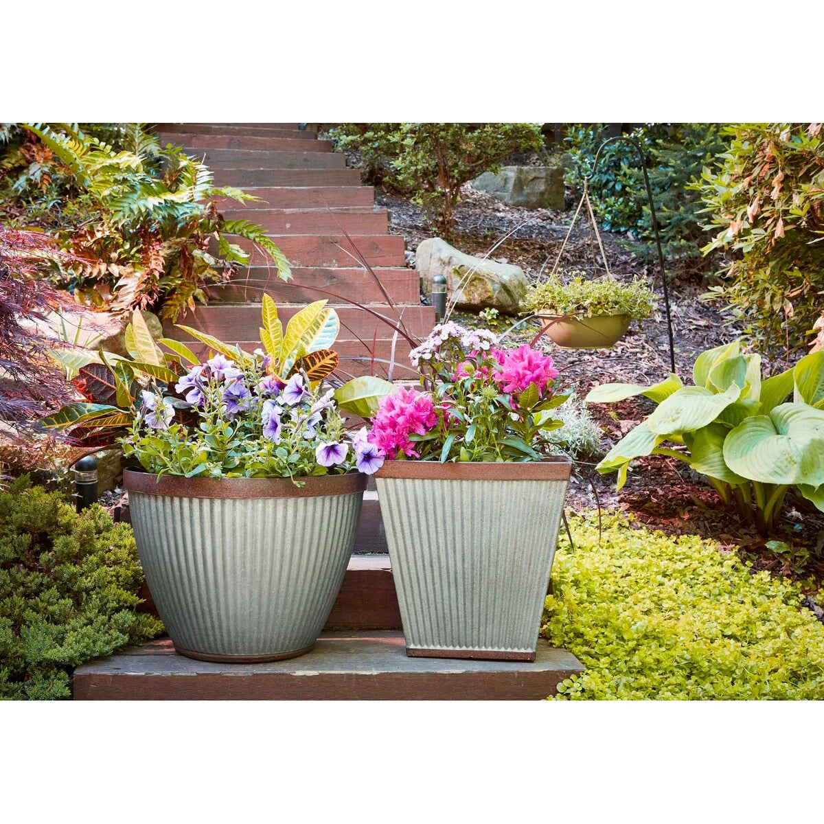 Add a timeless look to your outdoor space with Southern Patio's Westlake Planters. These lightweight and durable resin garden pots feature a weathered, rusted galvanized finish and grooved pattern, providing a traditional touch and texture. They're resistant to fading and the elements, giving your plants the perfect safe spot to flourish. Enjoy the versatility of mixing and matching the round and square planters with the hanging baskets for a stunning display.