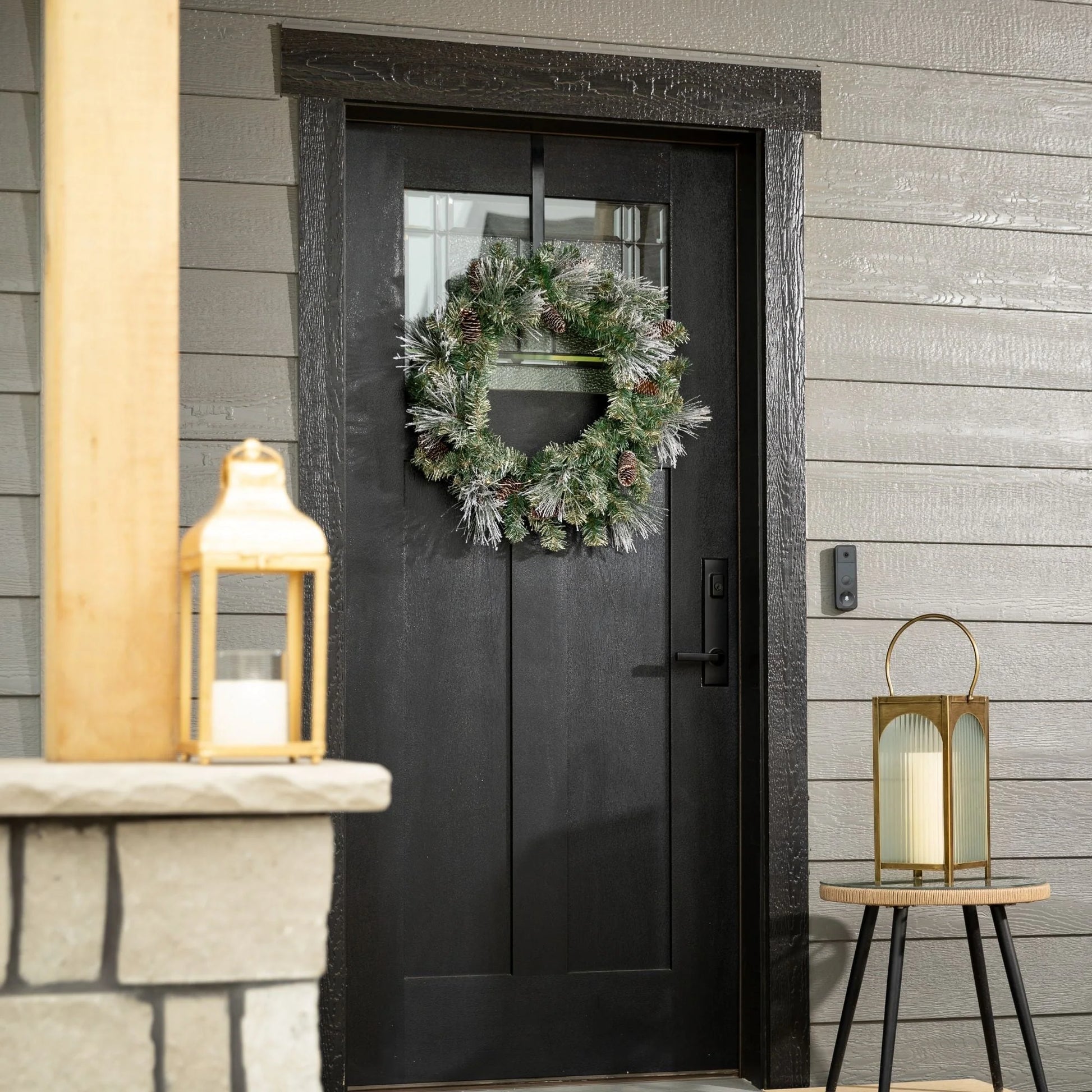 • Elegant Flocked Christmas Wreath: Elevate your holiday decor with the Sullivans 24" Lightly Flocked Pine Wreath. This beautiful Christmas wreath features lightly flocked pine needles, natural pinecones, gold glittered accents, and warm white twinkle lights adding a touch of snowy elegance to your Christmas decor.