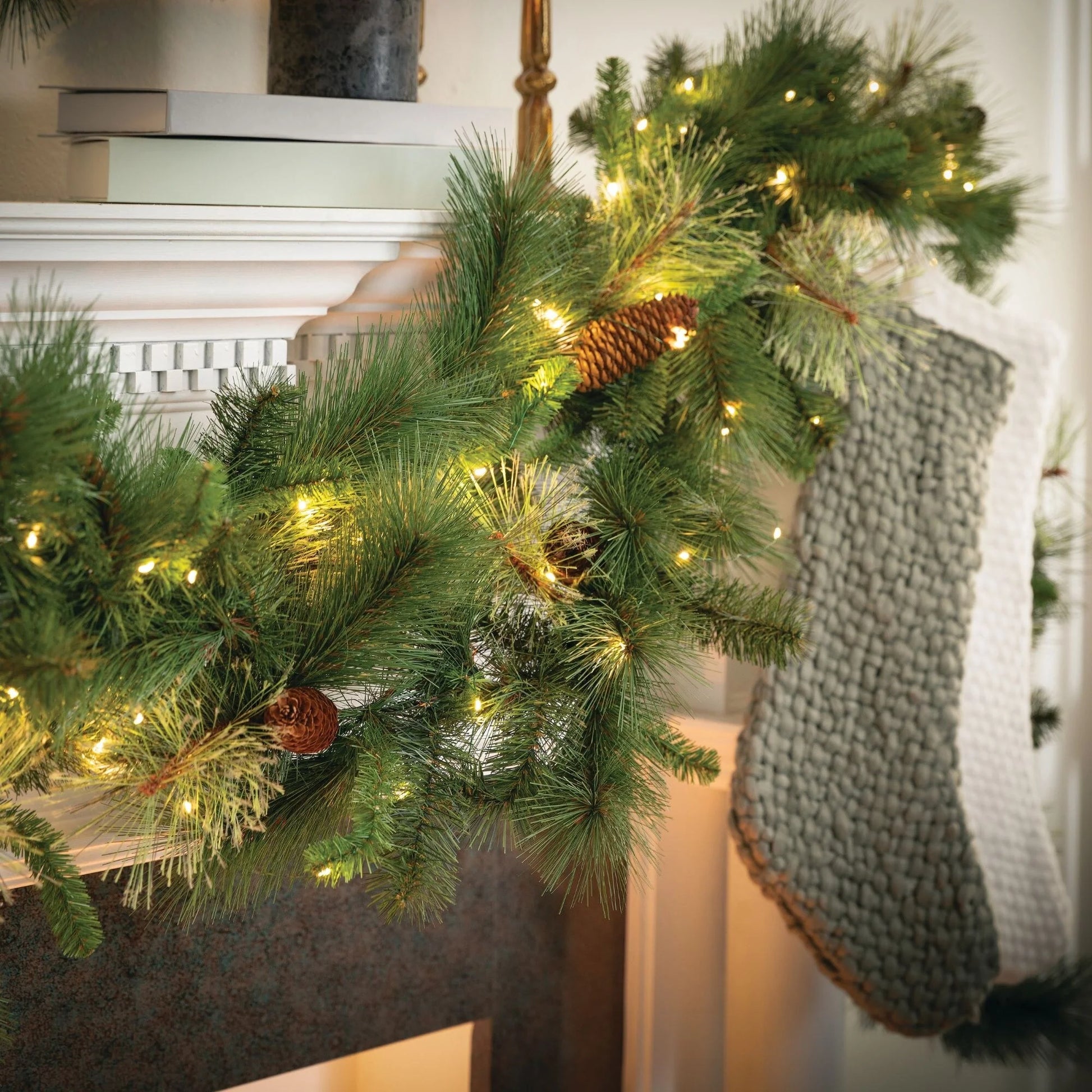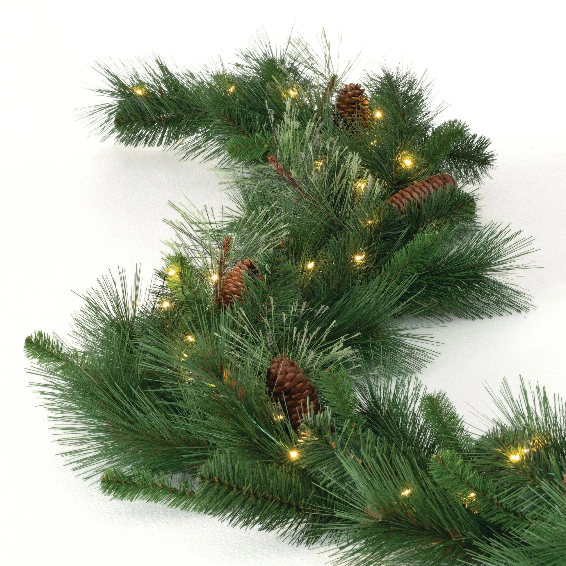 • Elegant Pine Garland With Pinecone Accents: Enhance your Christmas decor with our 9' Artificial Pine Garland. This stunning Christmas garland features lifelike pine needles, natural pinecones, and warm white twinkle lights creating a festive and wintry look perfect for any holiday setting.