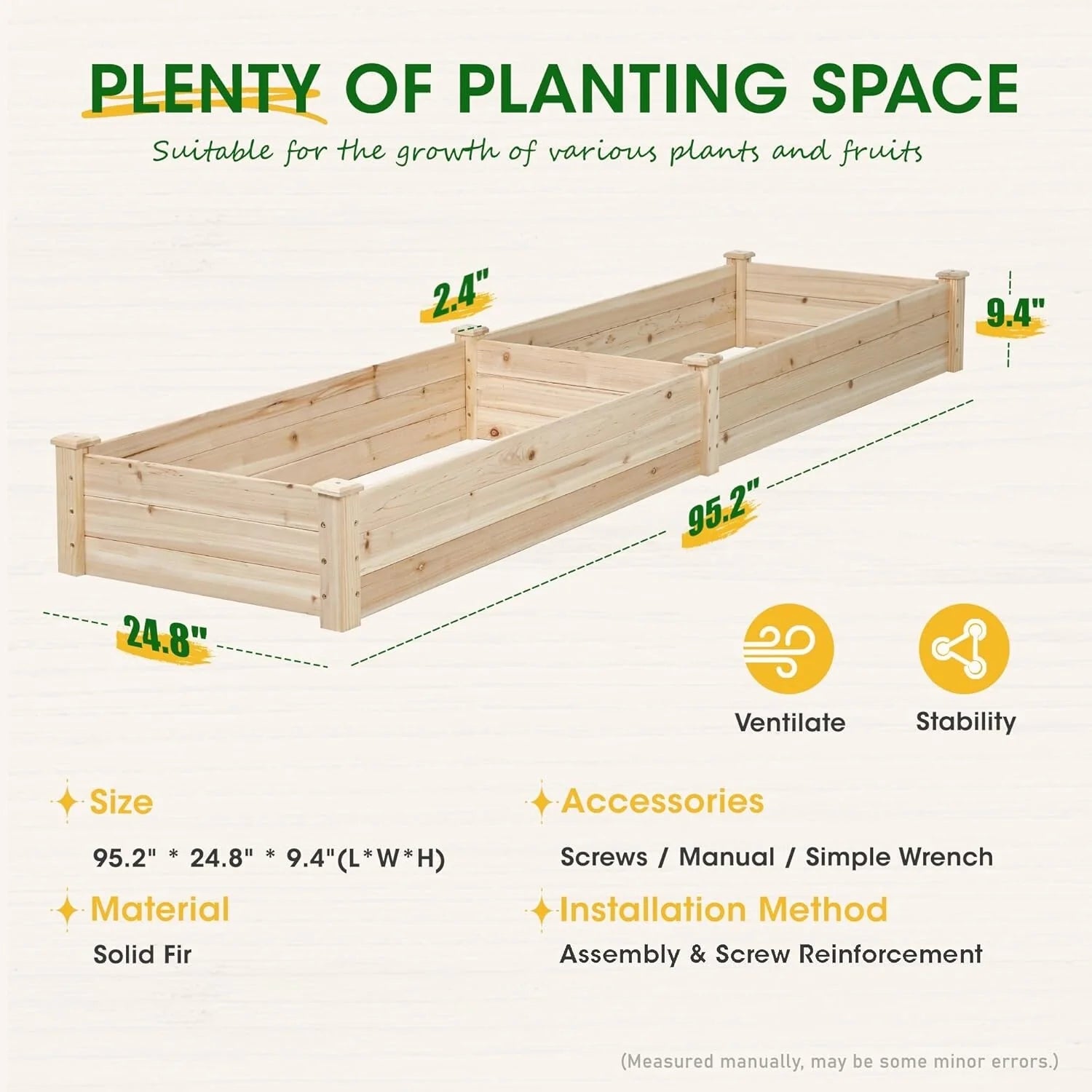 SUNCROWN 8 FT Wooden Raised Garden Bed Outdoor Elevated Flower Planter Box