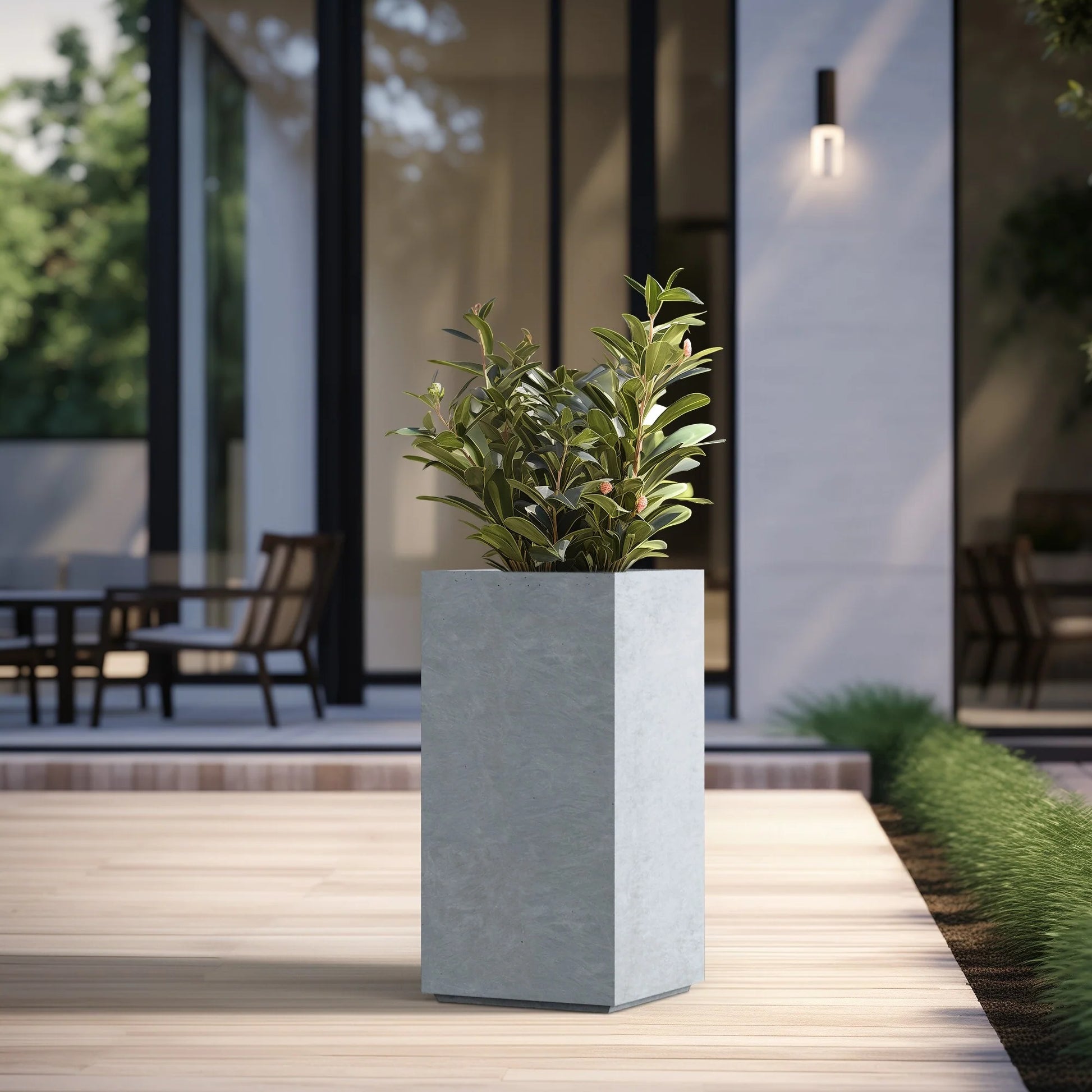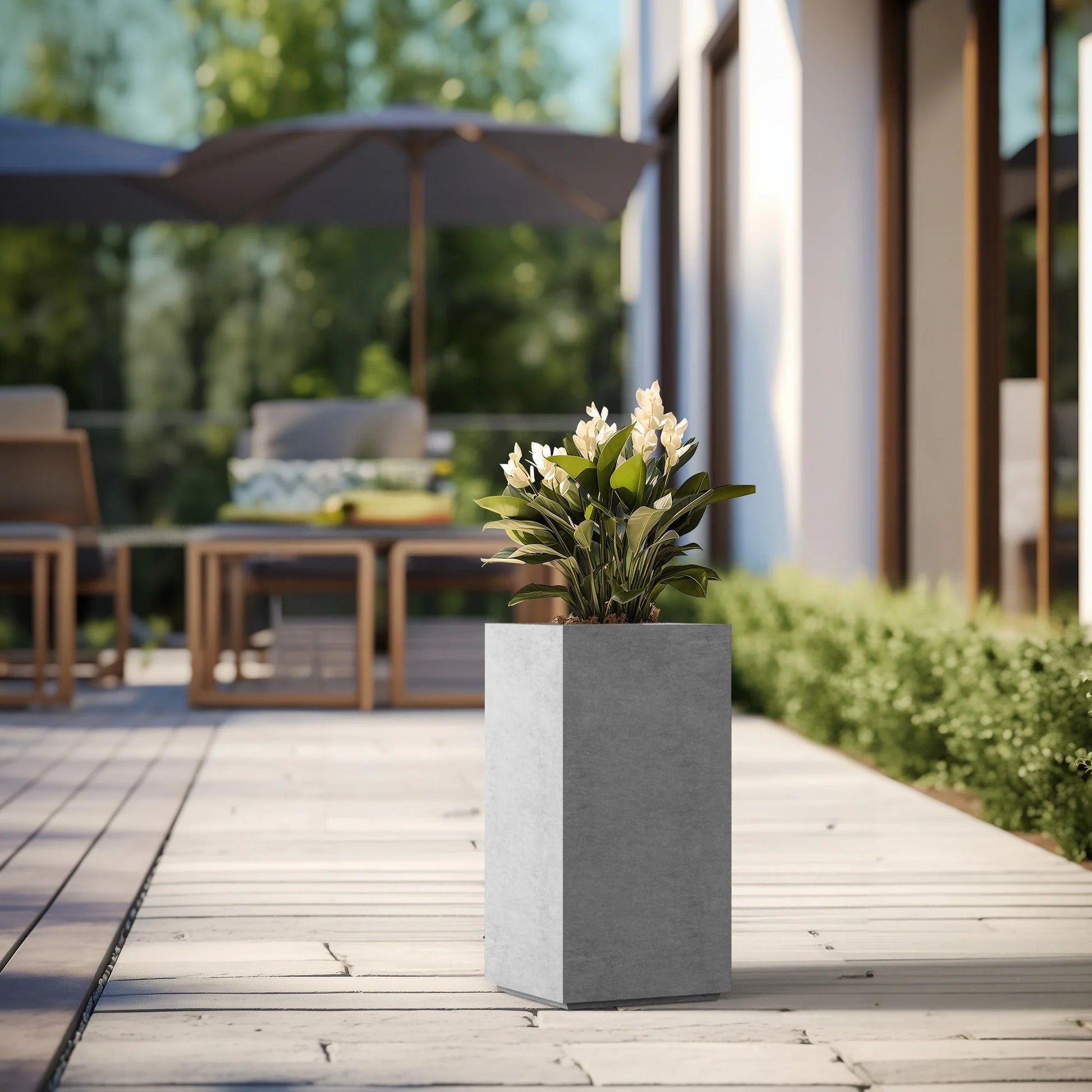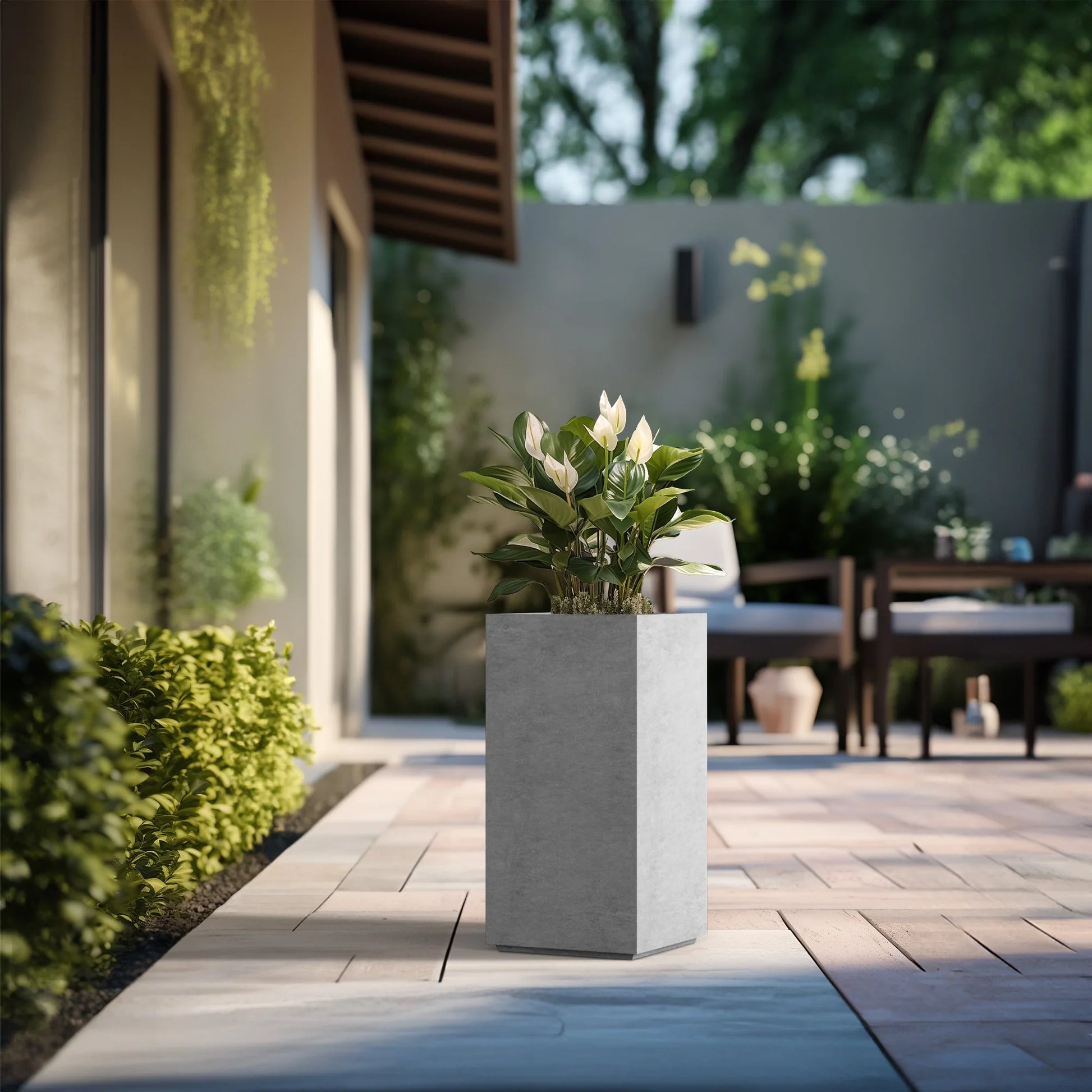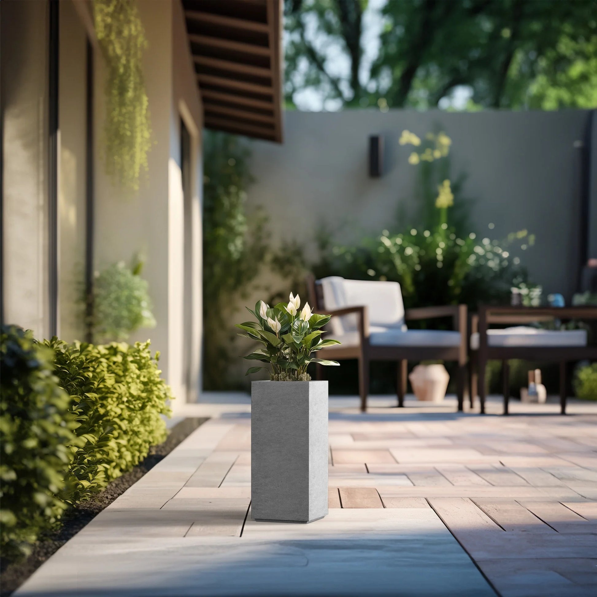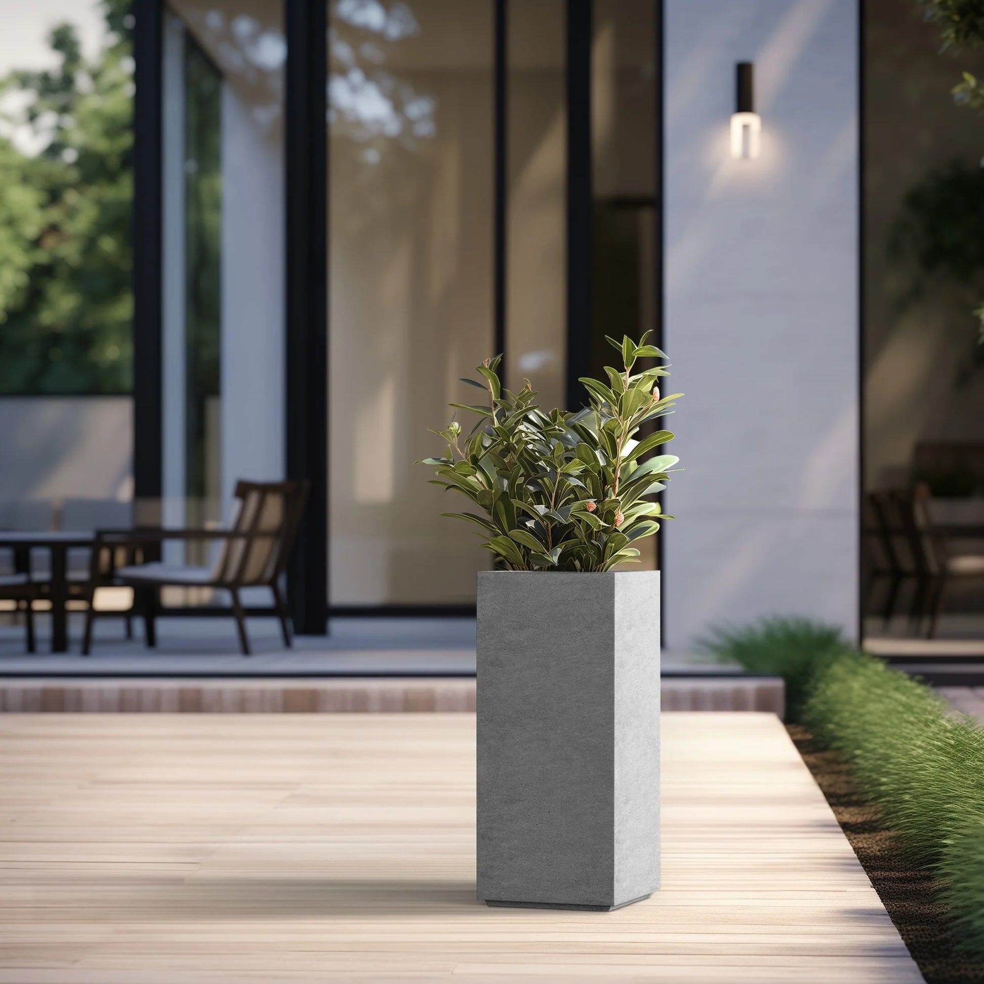 Reimagine your green space with the Durx-litecrete square cement planters, where robust functionality meets sleek, angular design. These contemporary planters feature a sophisticated concrete finish with fine pores that reveal their high-quality craftsmanship. Despite their solid square build, these planters remain surprisingly lightweight, a perfect choice for enhancing both indoor and outdoor environments. The smooth finish contrasts beautifully with the natural roughness of concrete. With ample room to support a range of plants, they make a statement on any city balcony or in a sprawling garden, adding a touch of elegance with their adaptable concrete finish.