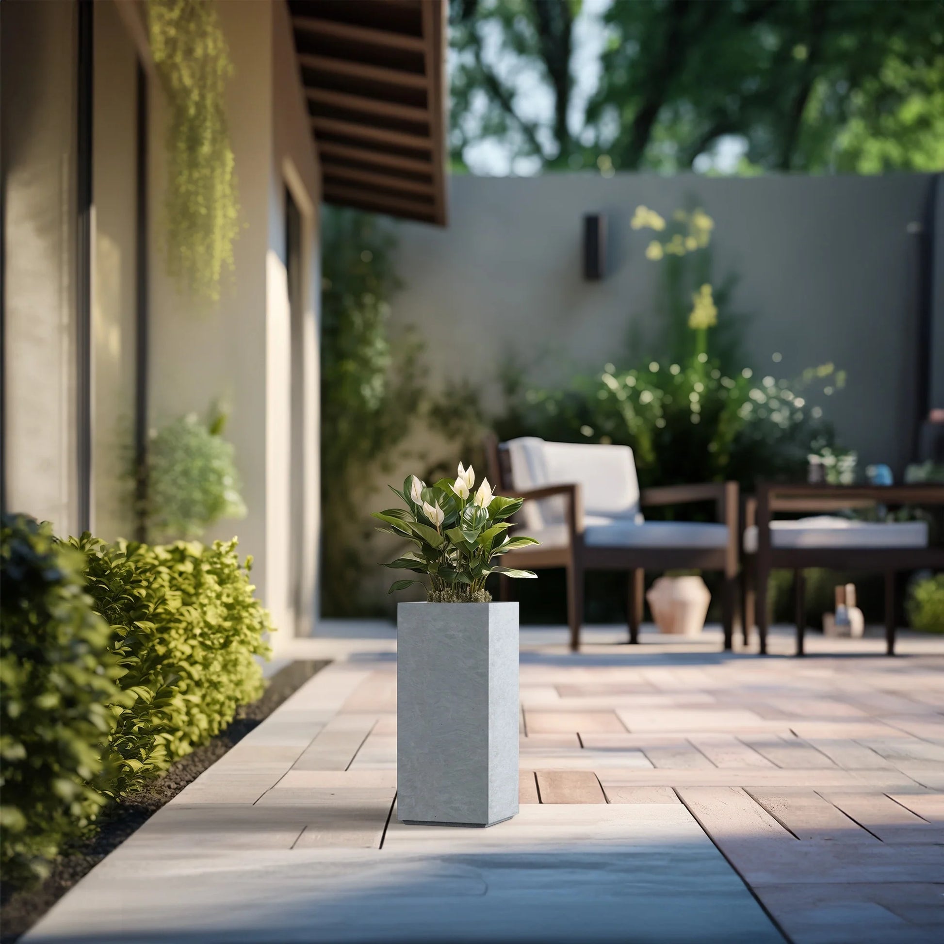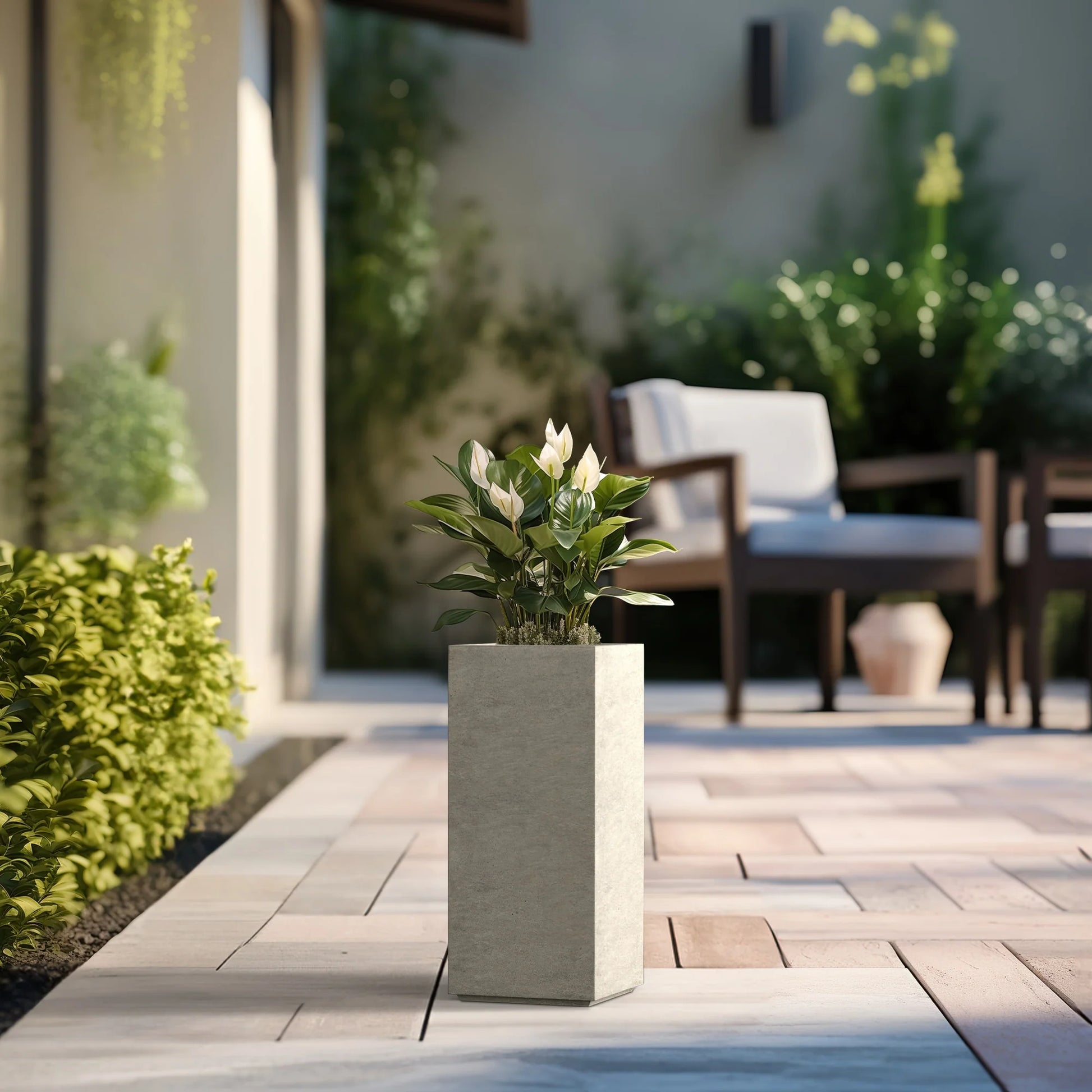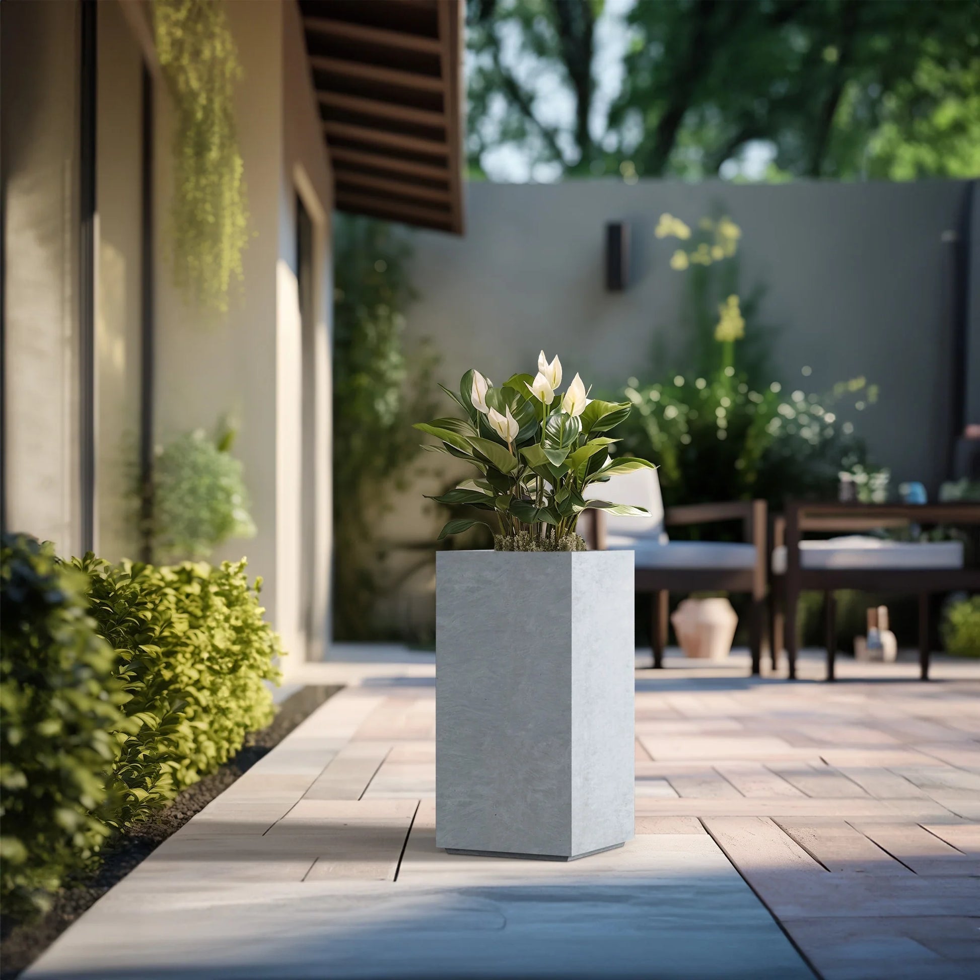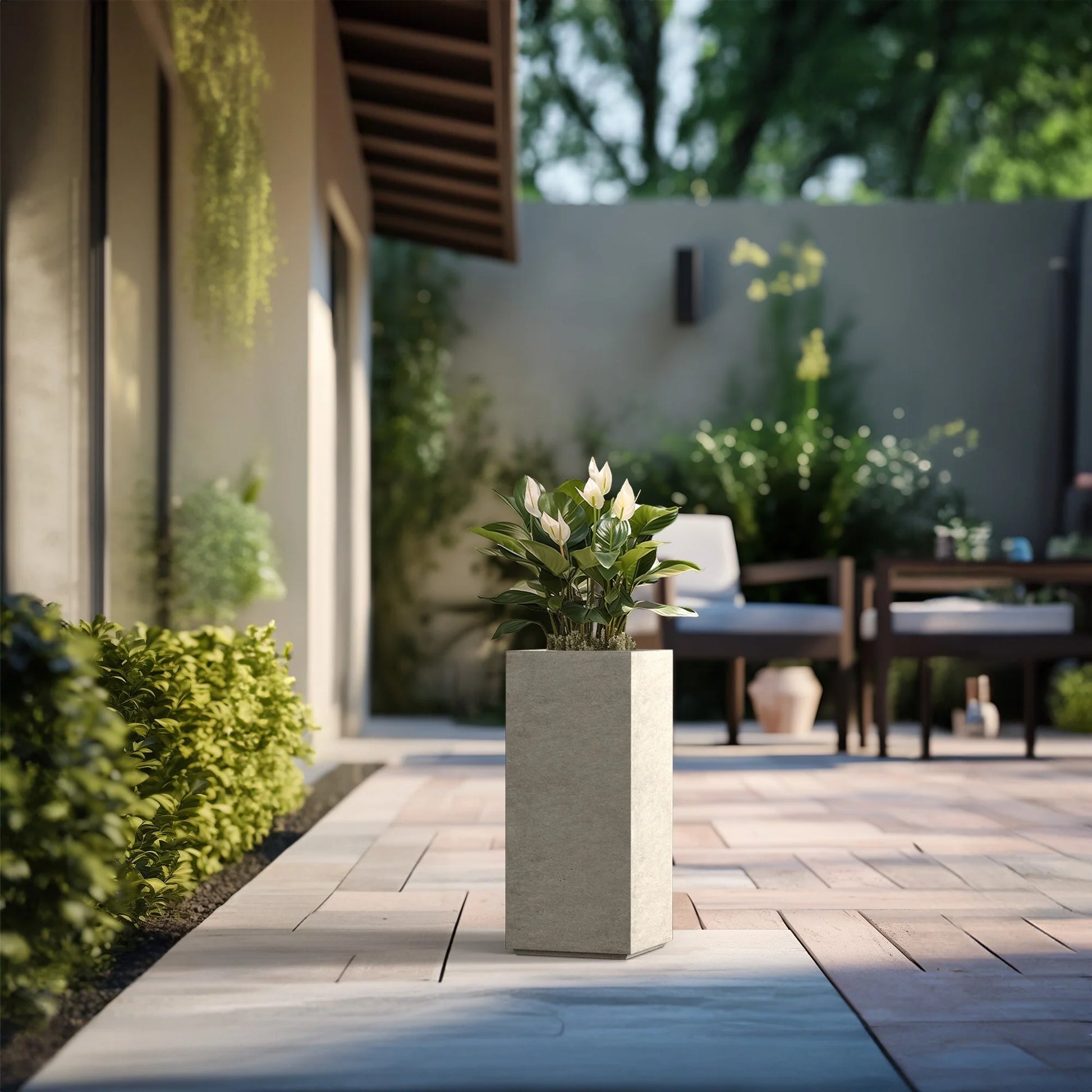 Reimagine your green space with the Durx-litecrete square cement planters, where robust functionality meets sleek, angular design. These contemporary planters feature a sophisticated concrete finish with fine pores that reveal their high-quality craftsmanship. Despite their solid square build, these planters remain surprisingly lightweight, a perfect choice for enhancing both indoor and outdoor environments. The smooth finish contrasts beautifully with the natural roughness of concrete. With ample room to support a range of plants, they make a statement on any city balcony or in a sprawling garden, adding a touch of elegance with their adaptable concrete finish.