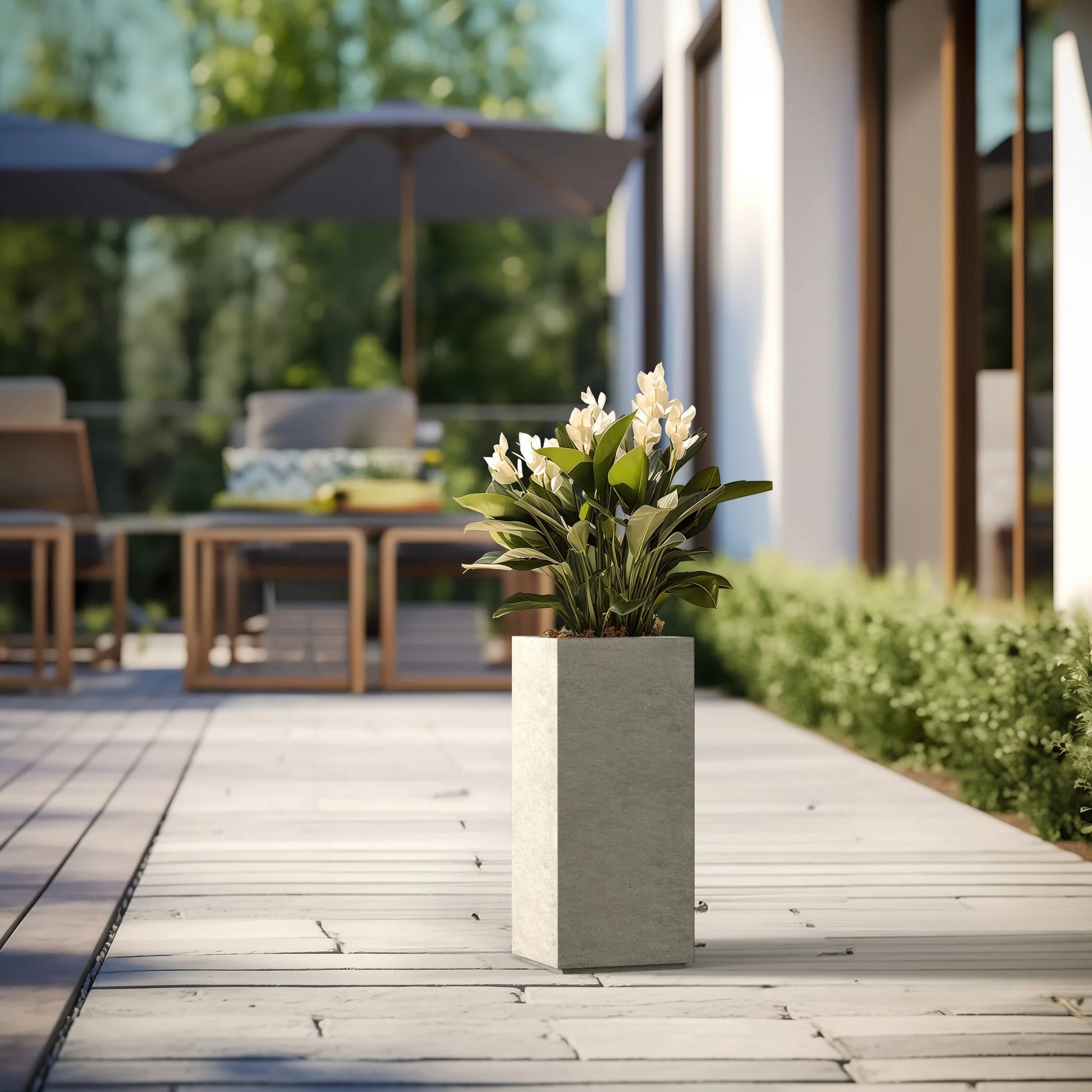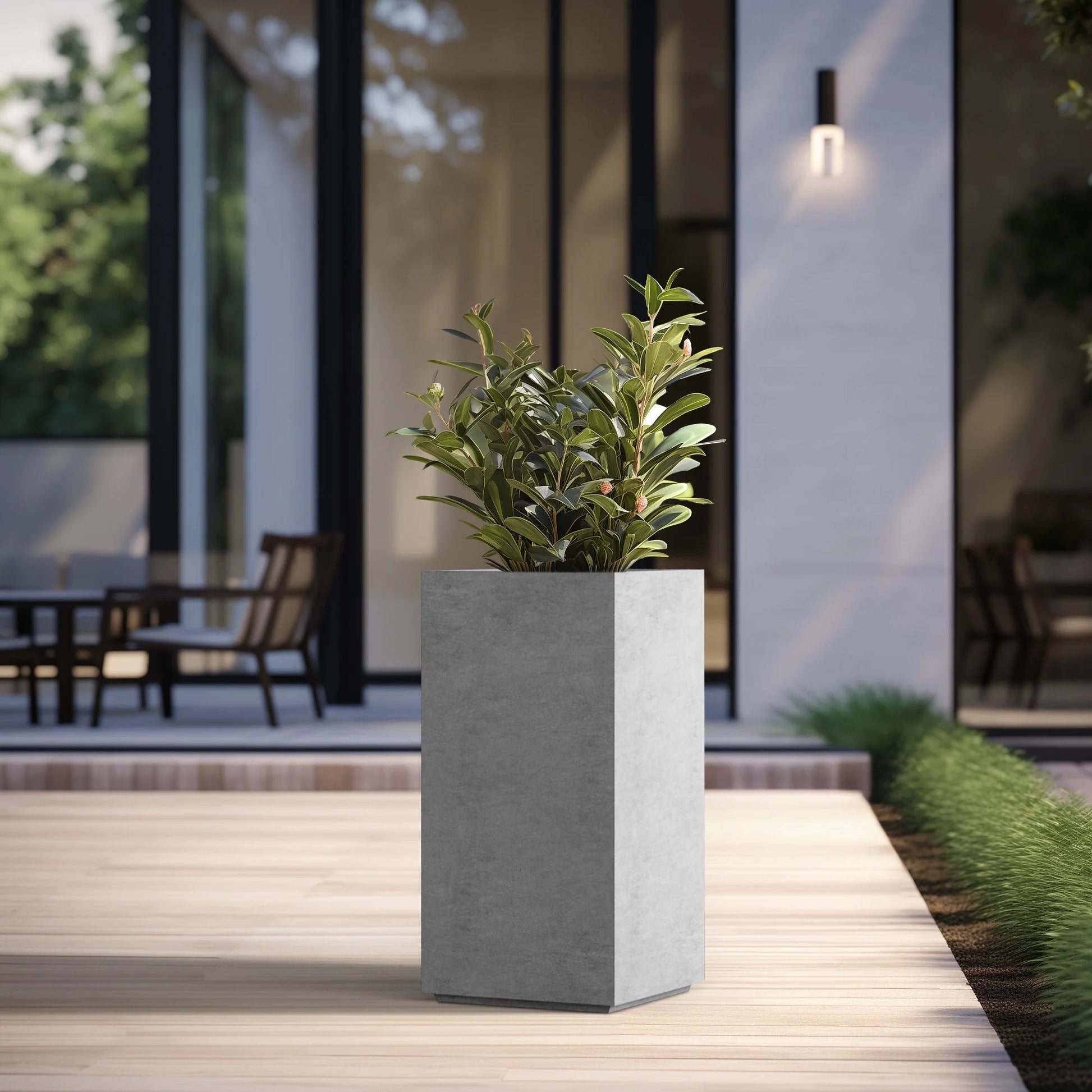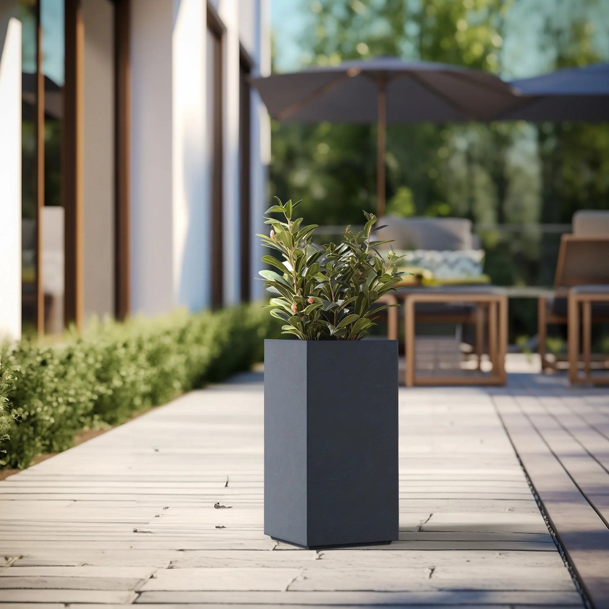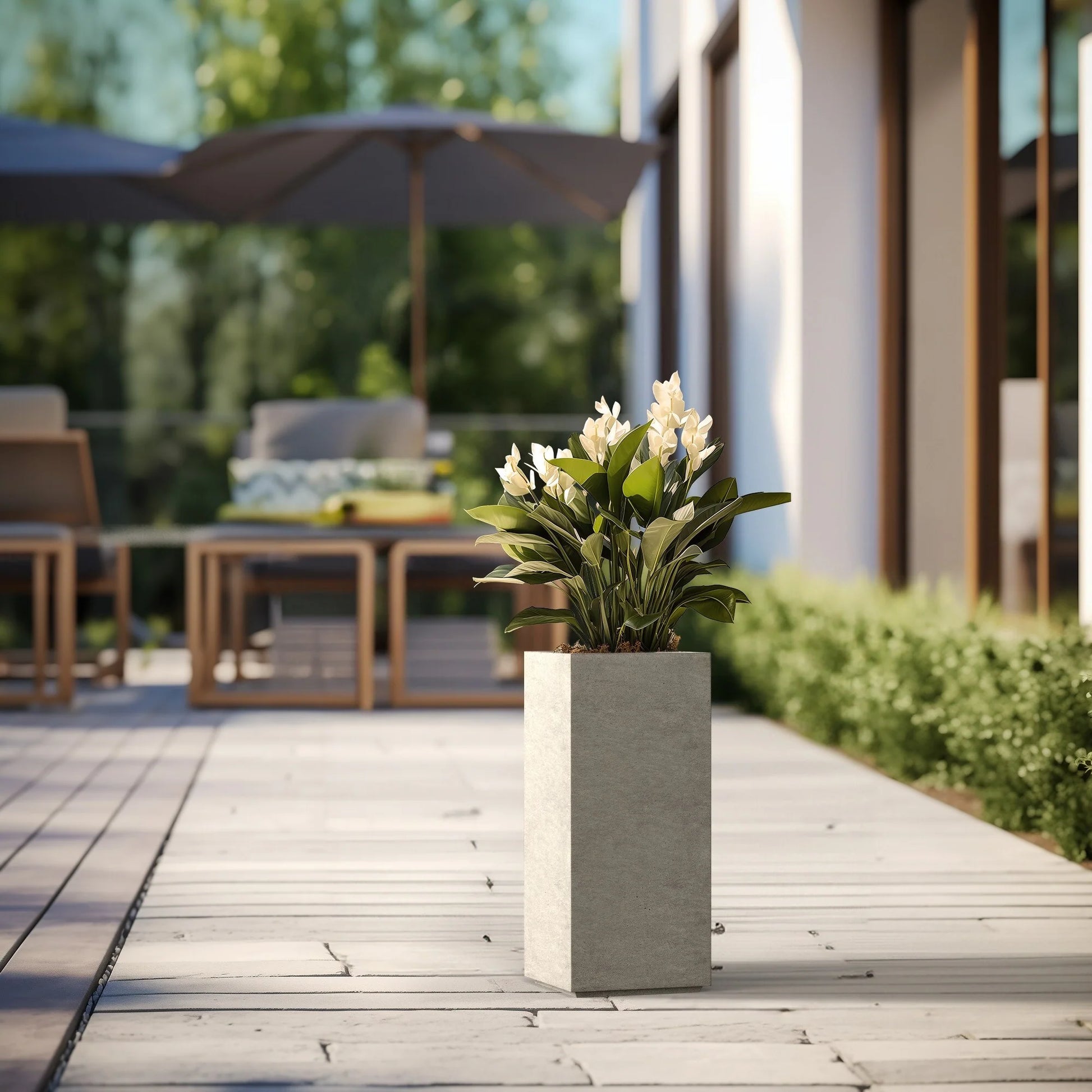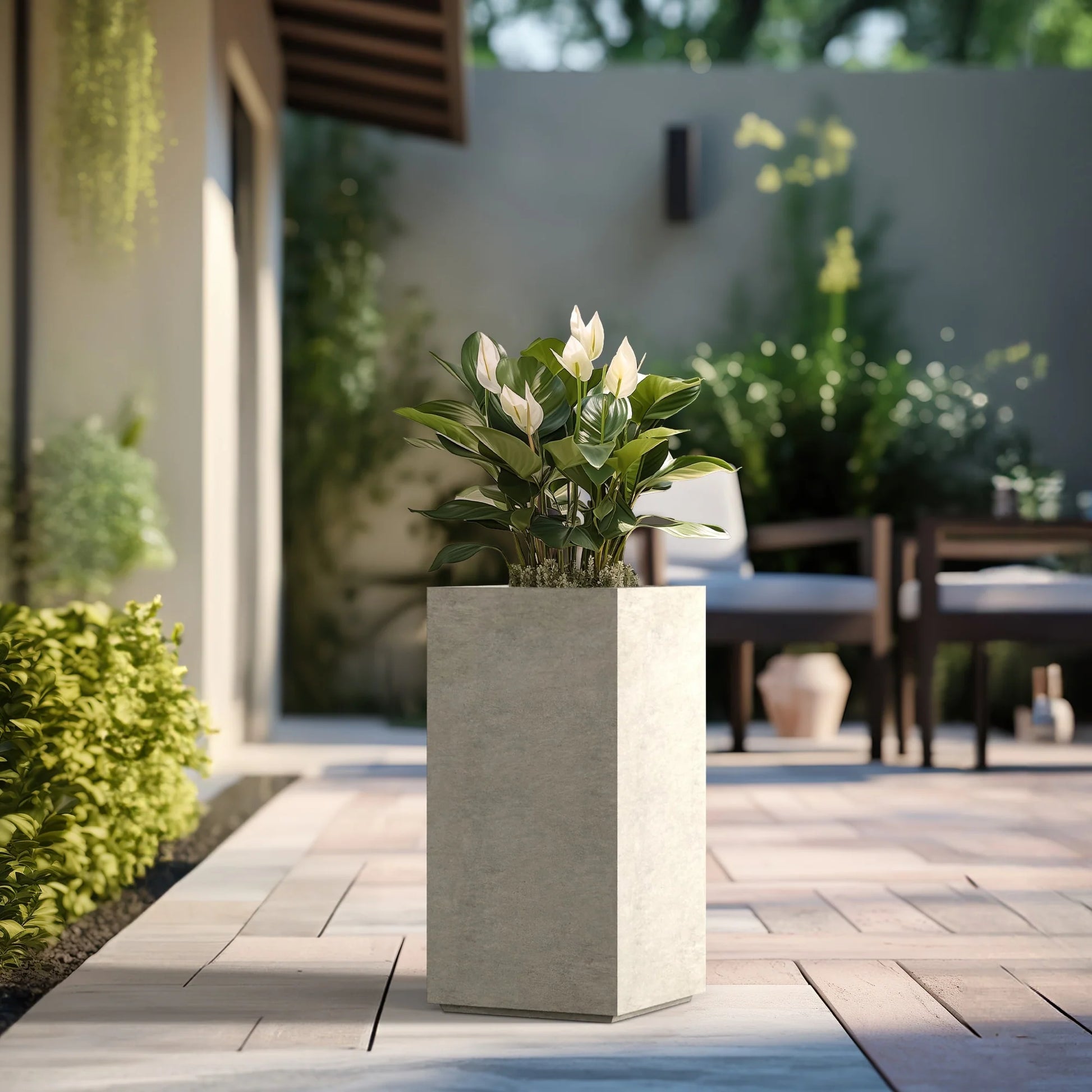 Reimagine your green space with the Durx-litecrete square cement planters, where robust functionality meets sleek, angular design. These contemporary planters feature a sophisticated concrete finish with fine pores that reveal their high-quality craftsmanship. Despite their solid square build, these planters remain surprisingly lightweight, a perfect choice for enhancing both indoor and outdoor environments. The smooth finish contrasts beautifully with the natural roughness of concrete. With ample room to support a range of plants, they make a statement on any city balcony or in a sprawling garden, adding a touch of elegance with their adaptable concrete finish.