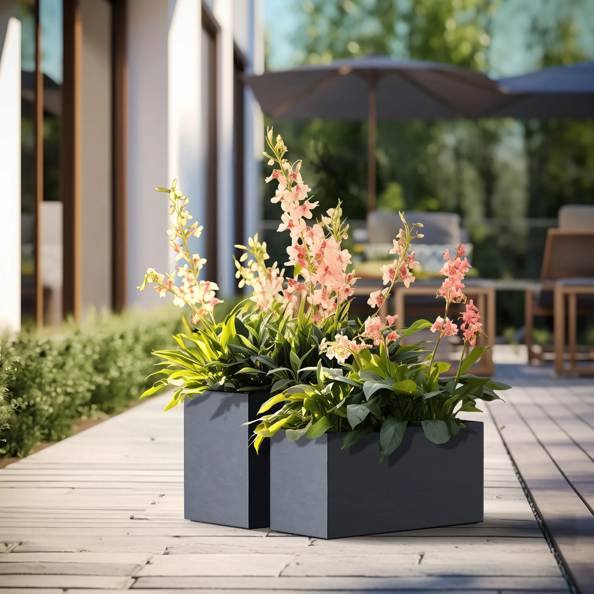 *Rust Resistant: With no metal parts to worry about, these square cement planters resist rusting, ensuring a pristine look through all weather conditions