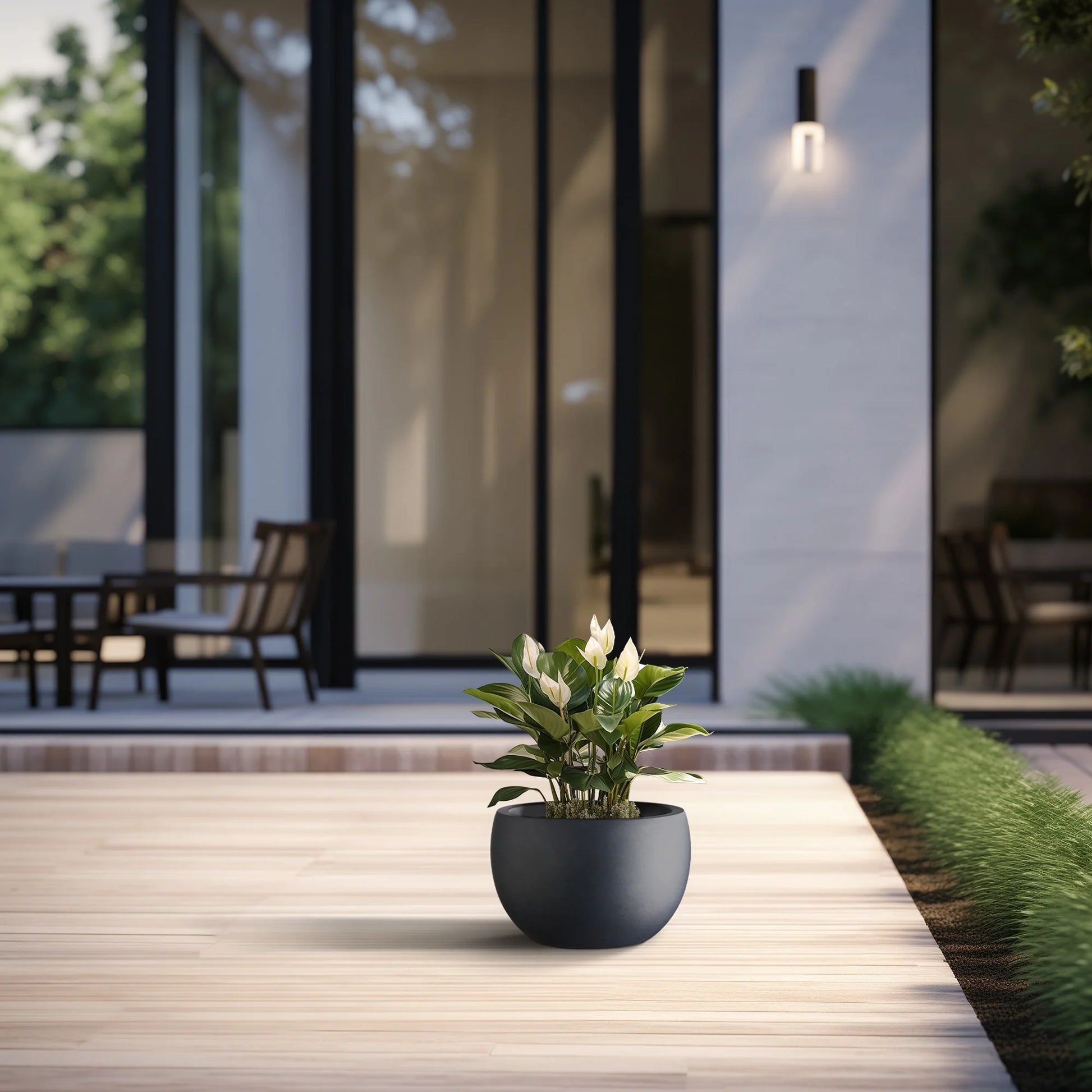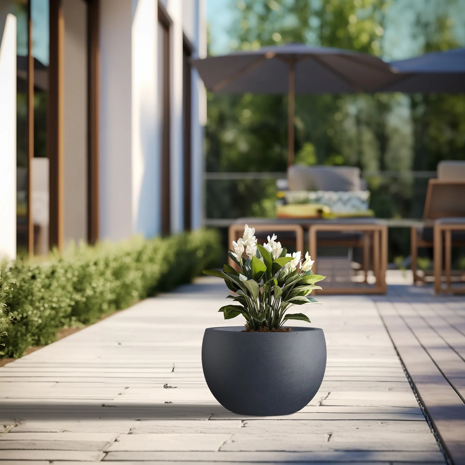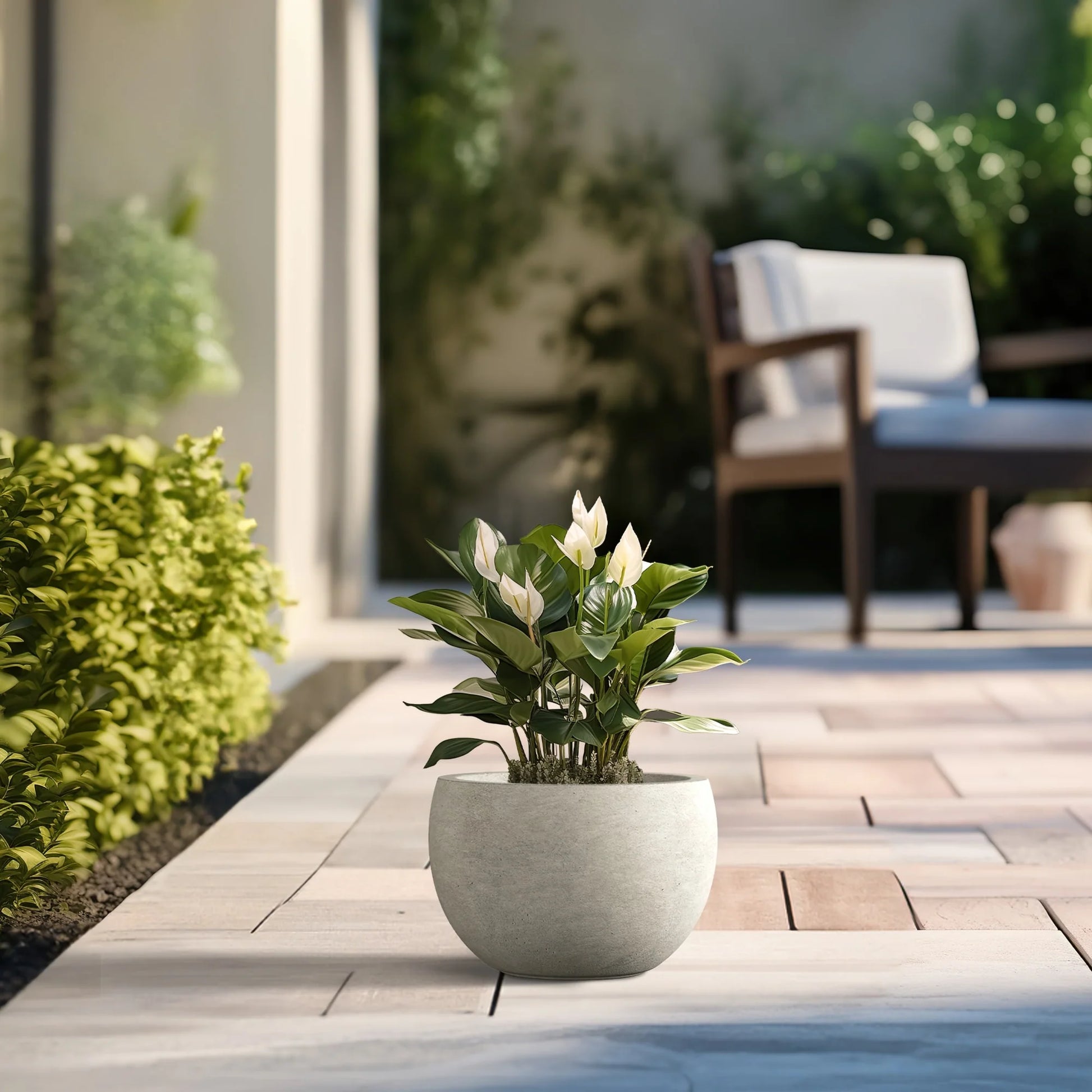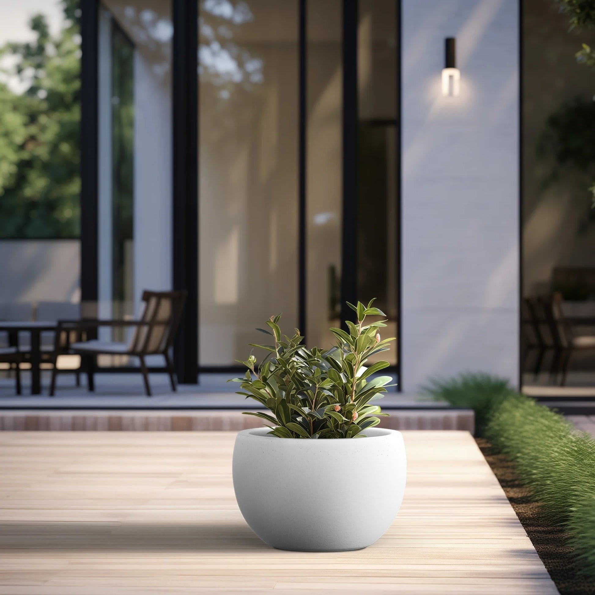 Unveil a sanctuary of green with our Durx-litecrete planters, where every piece is a blend of art and utility. These elegant planters boast a sophisticated concrete finish with visible pores, a testament to their authentic, contemporary design. Their weight is a pleasant surprise, substantial in appearance yet light enough to grace both indoor and outdoor settings. The smooth texture stands in stark contrast to the traditional rough concrete, making these planters a perfect match for the modern North American home. Spacious enough to house a diverse plant life, they sit beautifully on an apartment balcony or a vast backyard patio, infusing harmony and style with their versatile concrete finish.