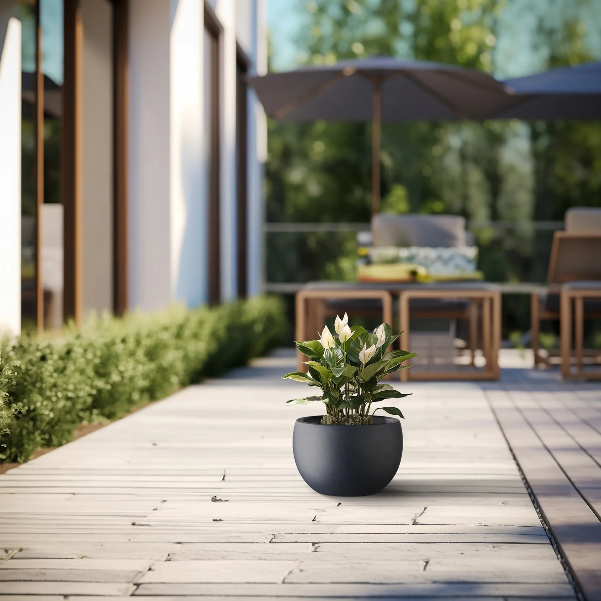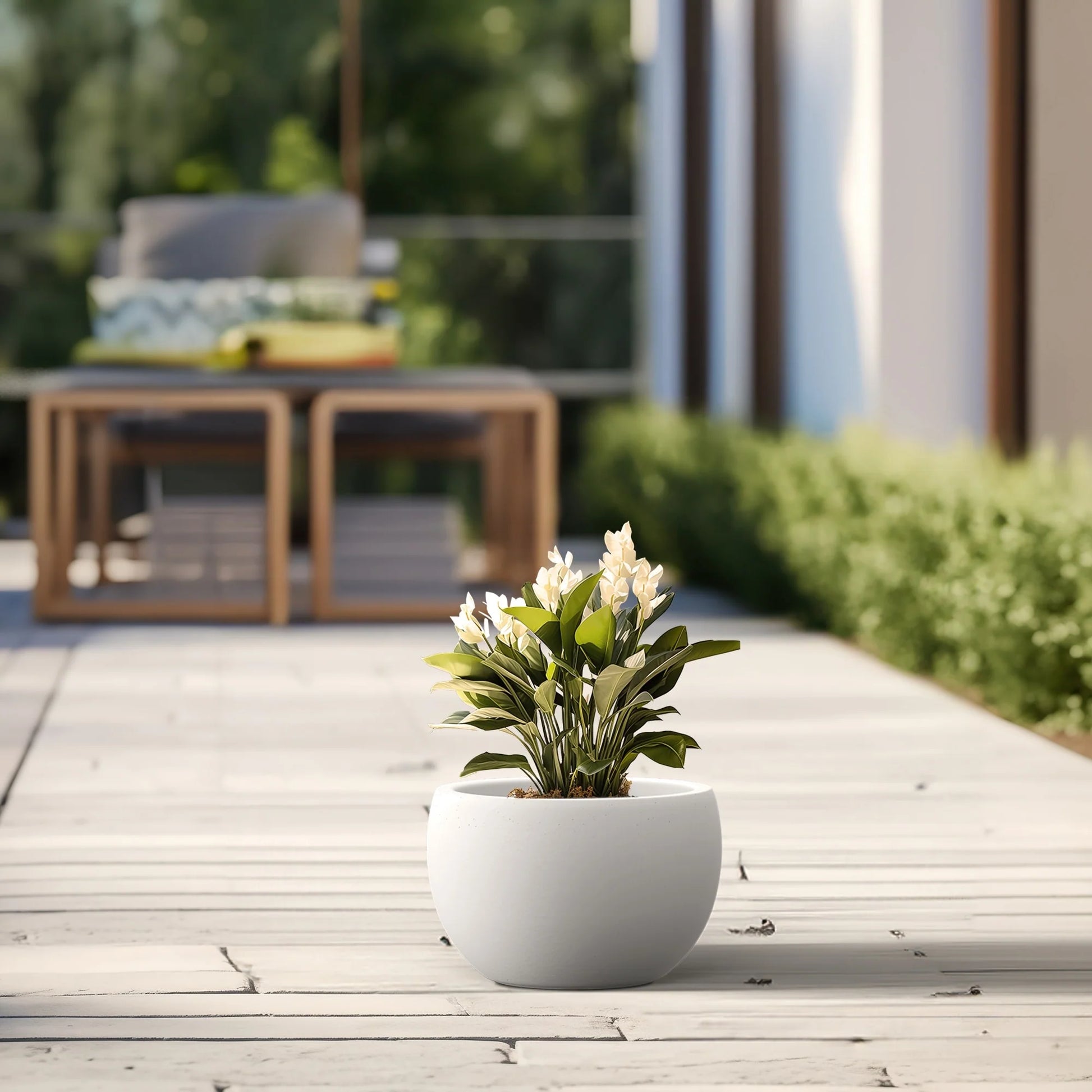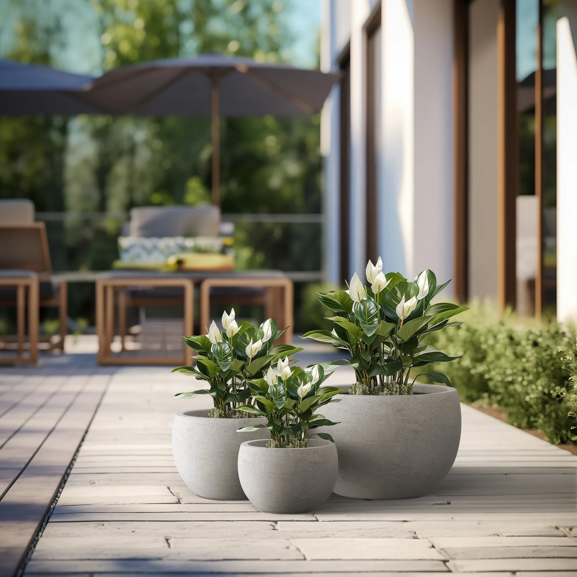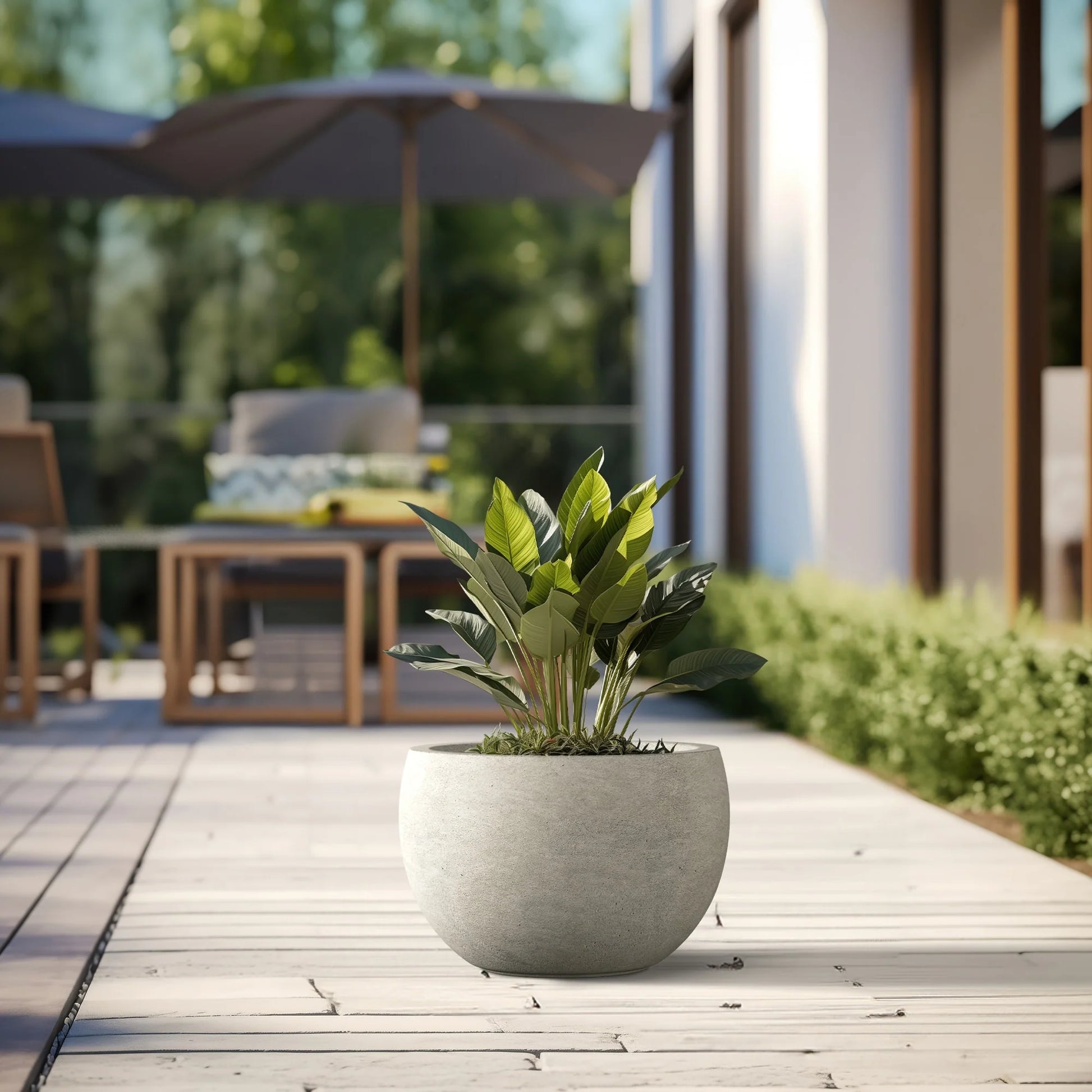 Unveil a sanctuary of green with our Durx-litecrete planters, where every piece is a blend of art and utility. These elegant planters boast a sophisticated concrete finish with visible pores, a testament to their authentic, contemporary design. Their weight is a pleasant surprise, substantial in appearance yet light enough to grace both indoor and outdoor settings. The smooth texture stands in stark contrast to the traditional rough concrete, making these planters a perfect match for the modern North American home. Spacious enough to house a diverse plant life, they sit beautifully on an apartment balcony or a vast backyard patio, infusing harmony and style with their versatile concrete finish.