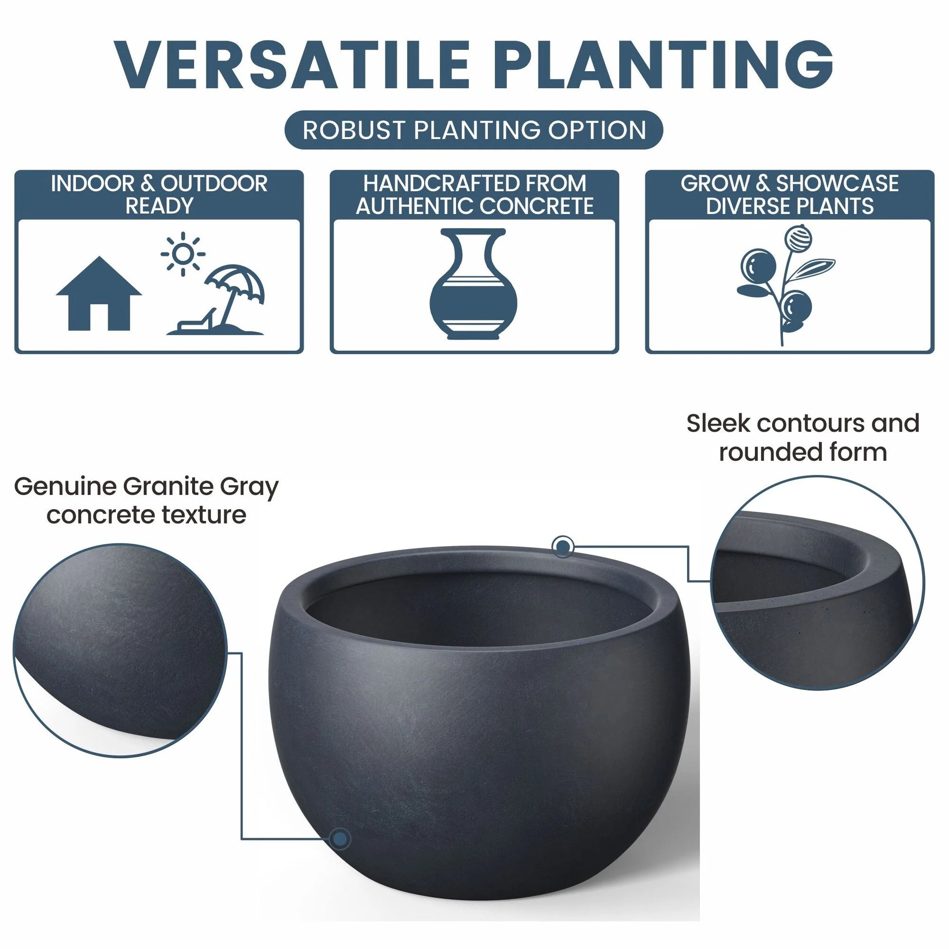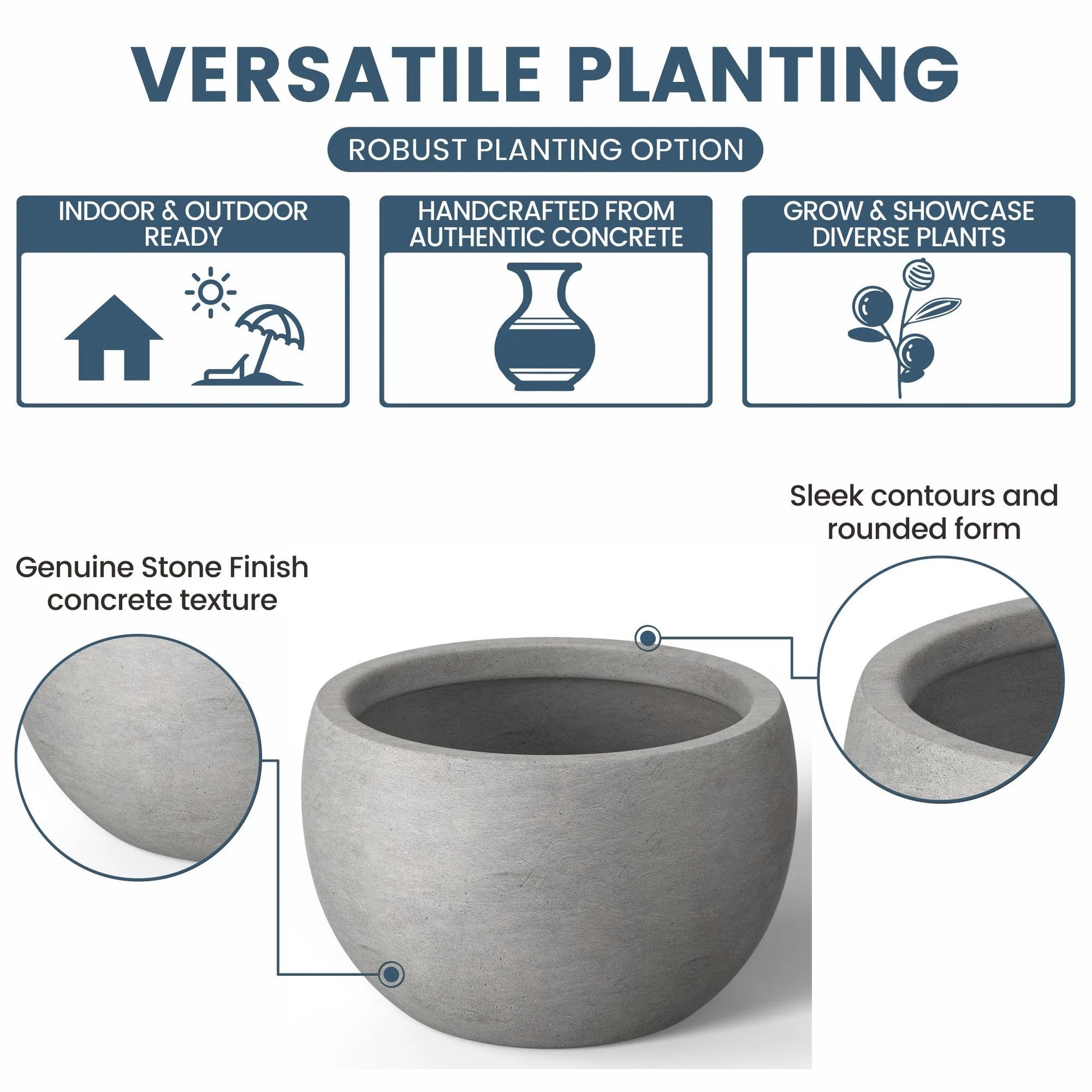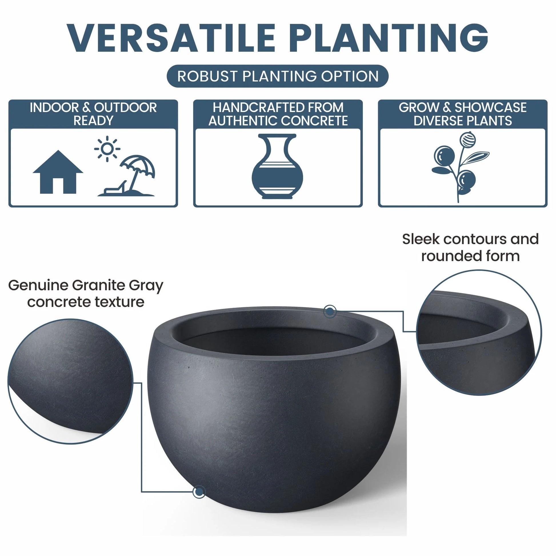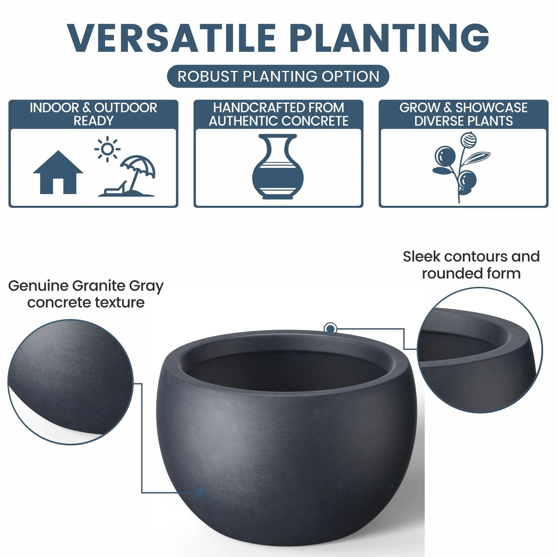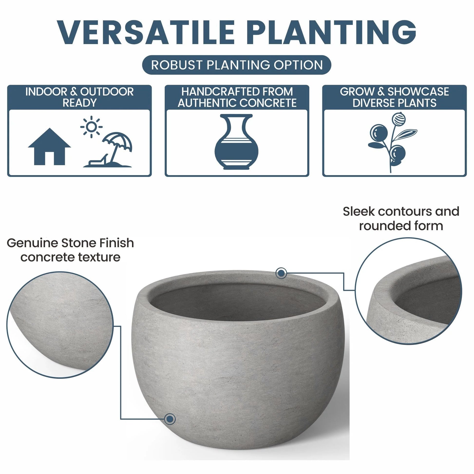 *Rust Resistant: With no metal parts to worry about, these round cement planters resist rusting, ensuring a pristine look through all weather conditions