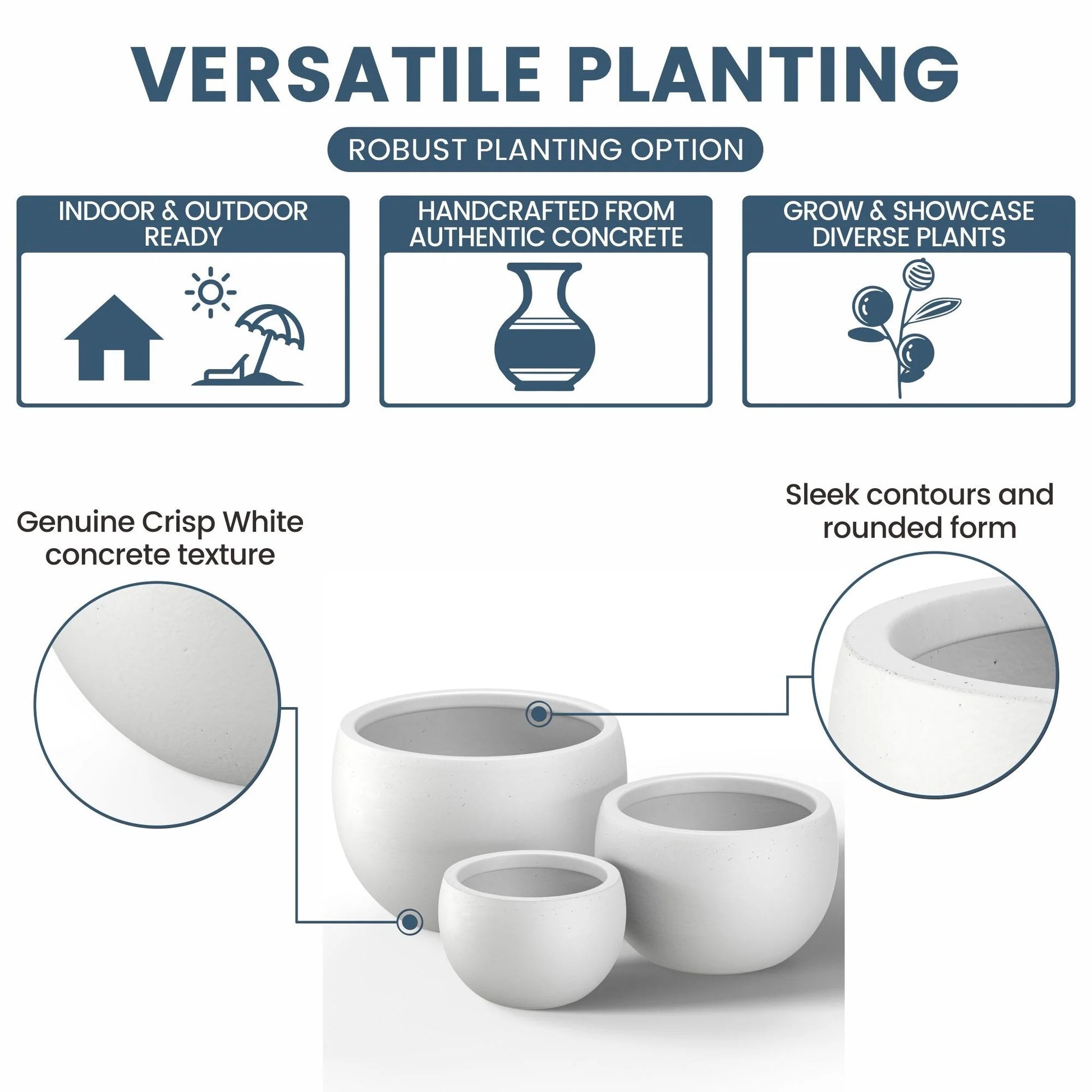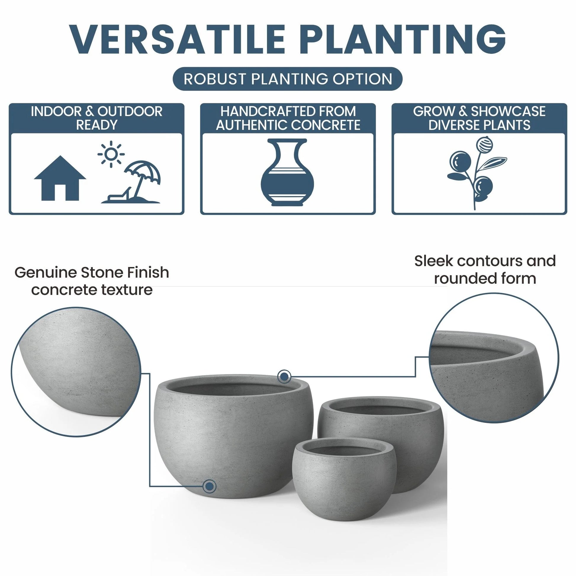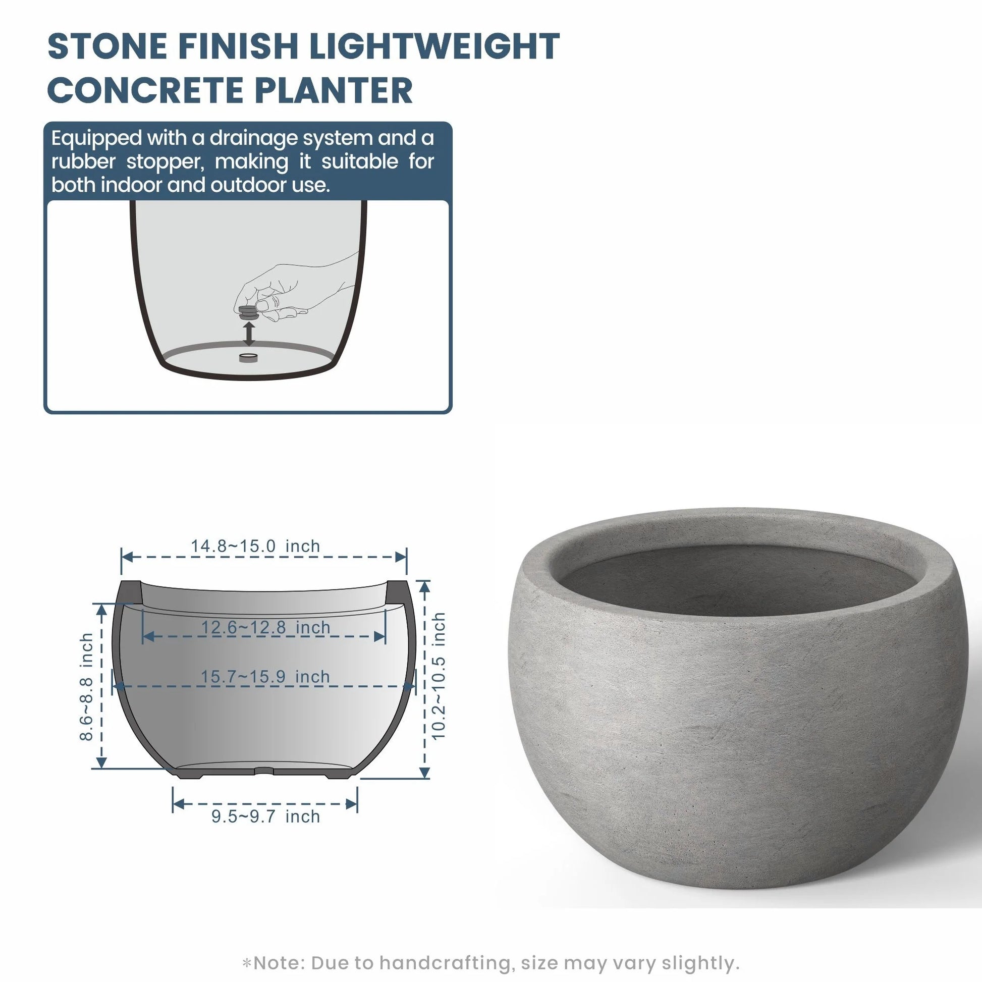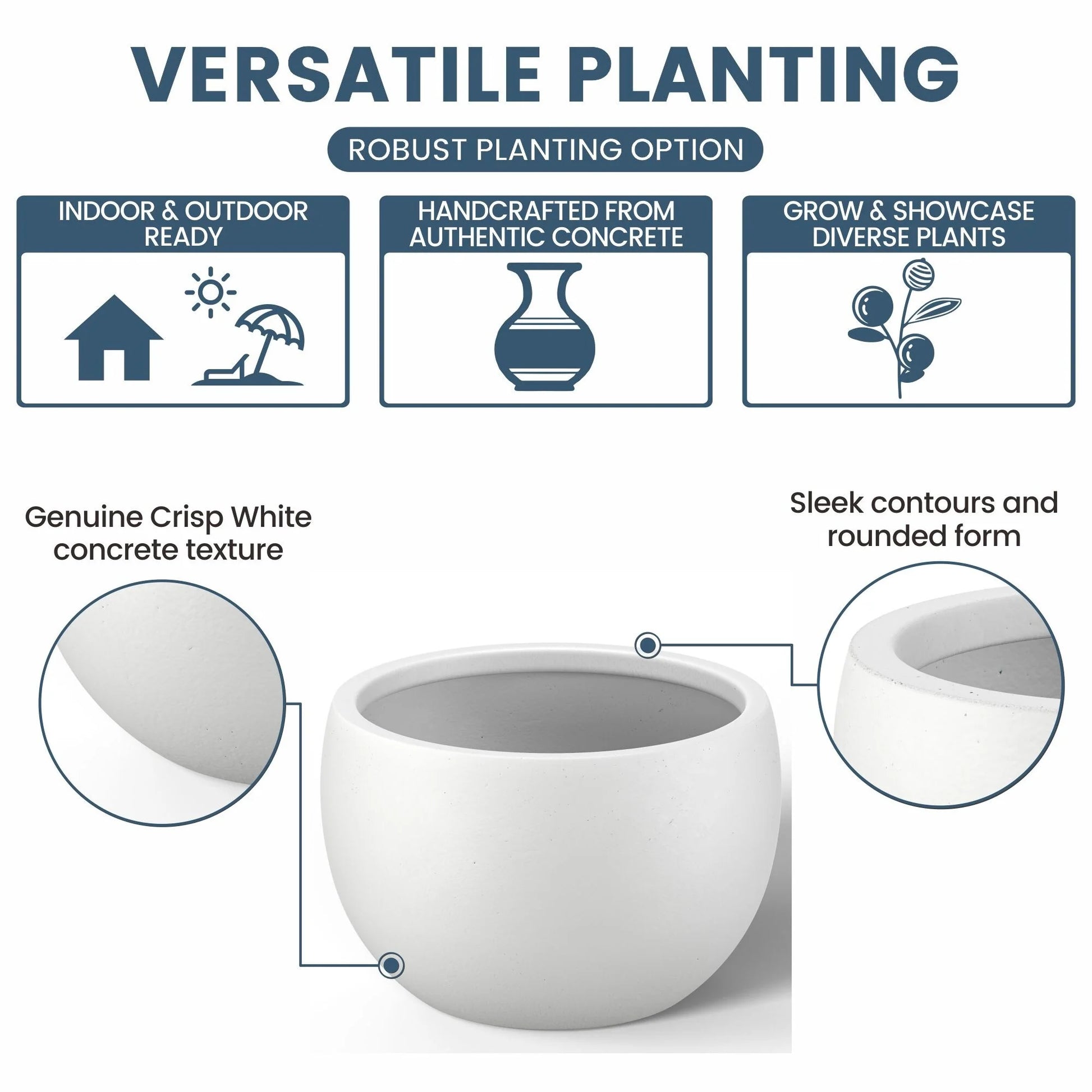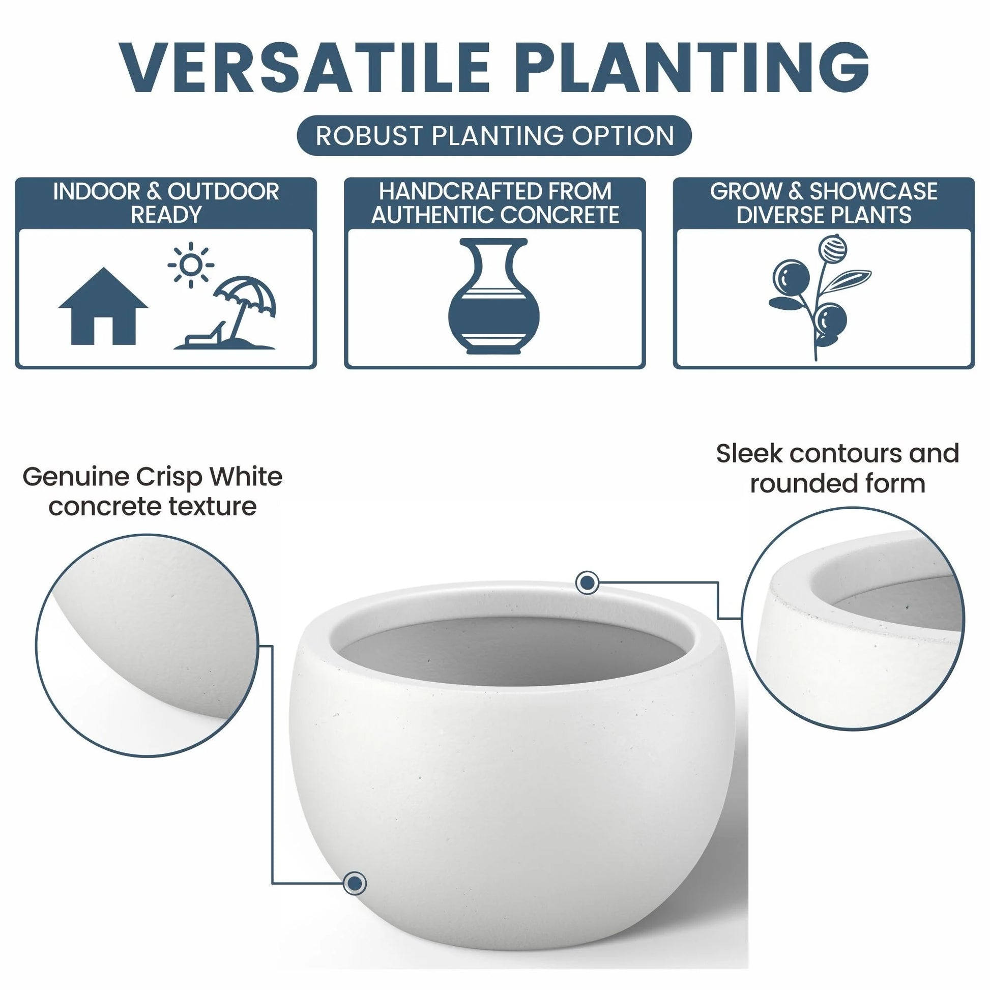 *Rust Resistant: With no metal parts to worry about, these round cement planters resist rusting, ensuring a pristine look through all weather conditions