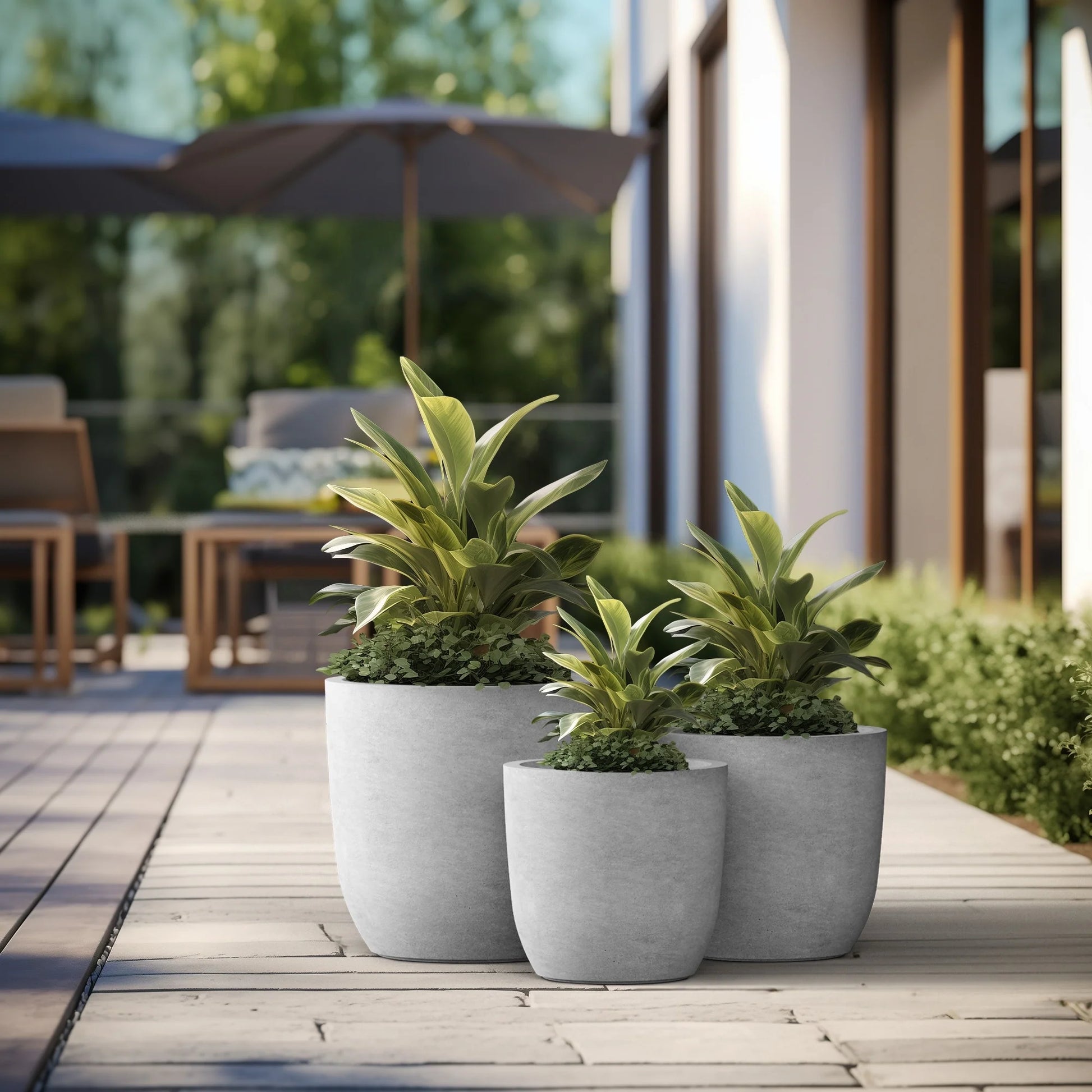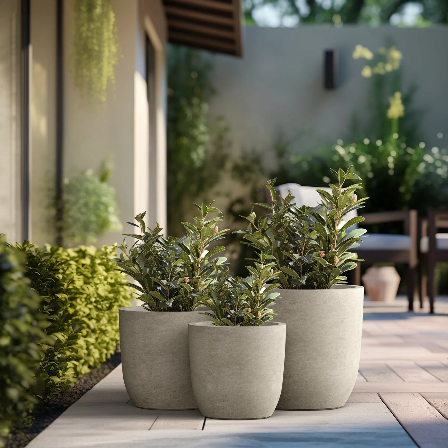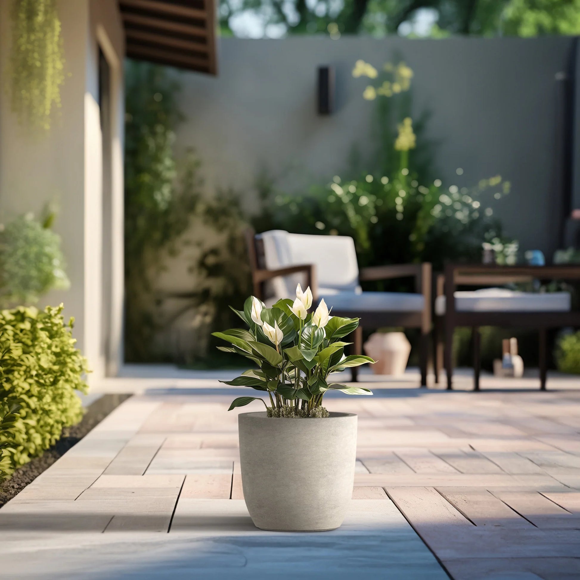 Unveil a sanctuary of green with our Durx-litecrete planters, where every piece is a blend of art and utility. These elegant planters boast a sophisticated concrete finish with visible pores, a testament to their authentic, contemporary design. Their weight is a pleasant surprise, substantial in appearance yet light enough to grace both indoor and outdoor settings. The smooth texture stands in stark contrast to the traditional rough concrete, making these planters a perfect match for the modern North American home. Spacious enough to house a diverse plant life, they sit beautifully on an apartment balcony or a vast backyard patio, infusing harmony and style with their versatile concrete finish.