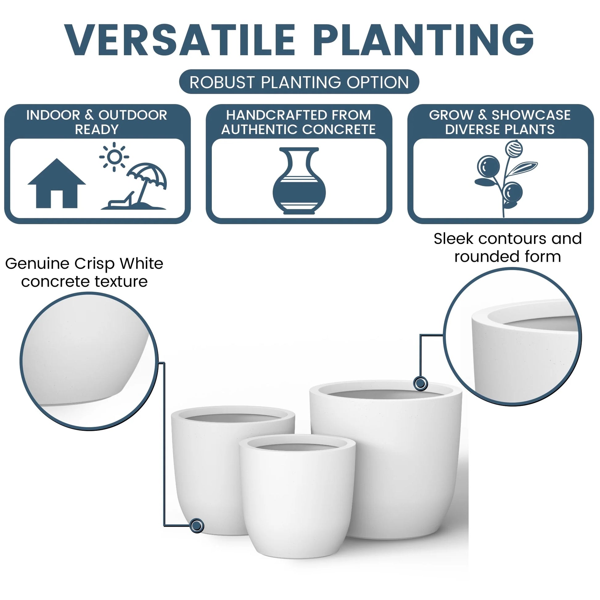*Rust Resistant: With no metal parts to worry about, these round cement planters resist rusting, ensuring a pristine look through all weather conditions