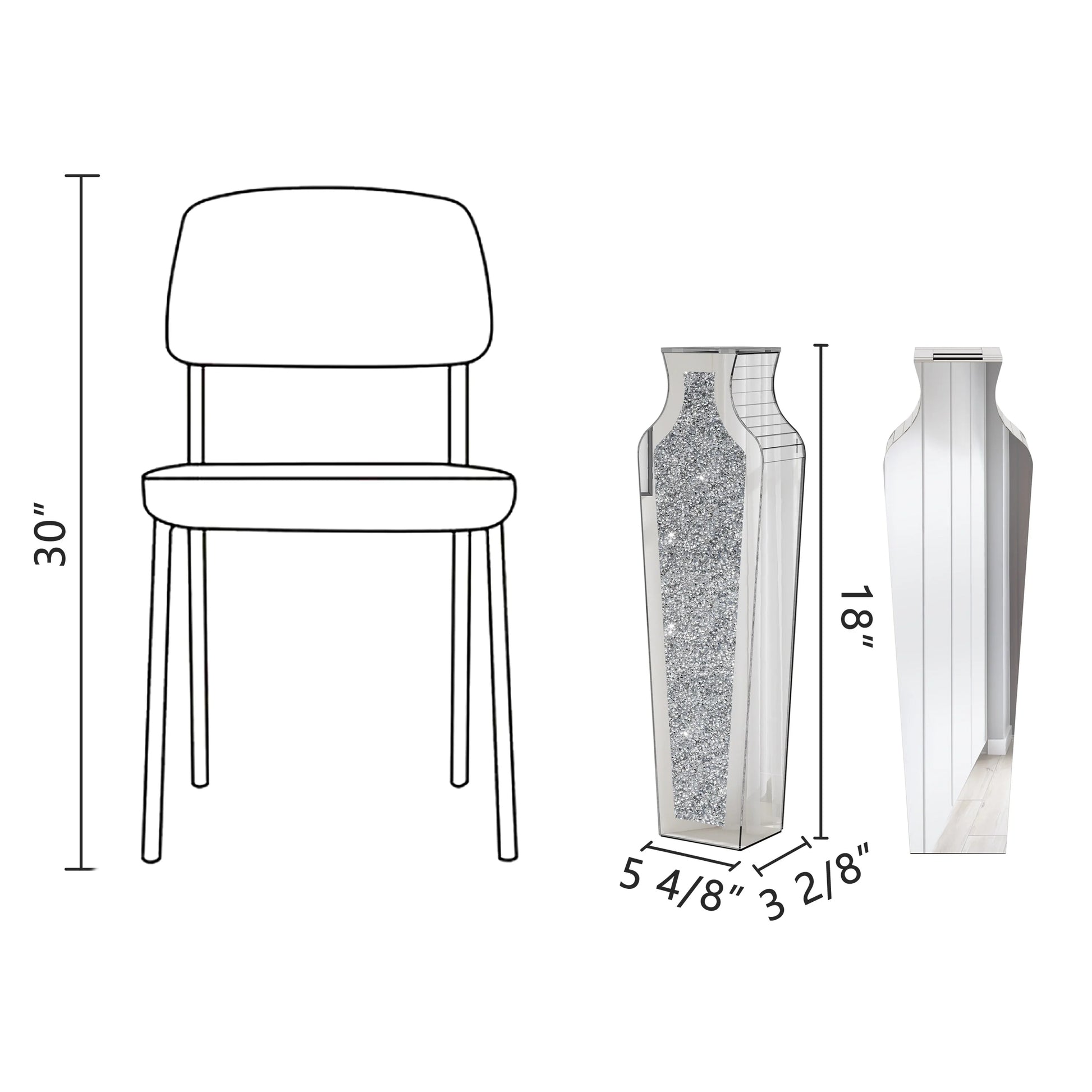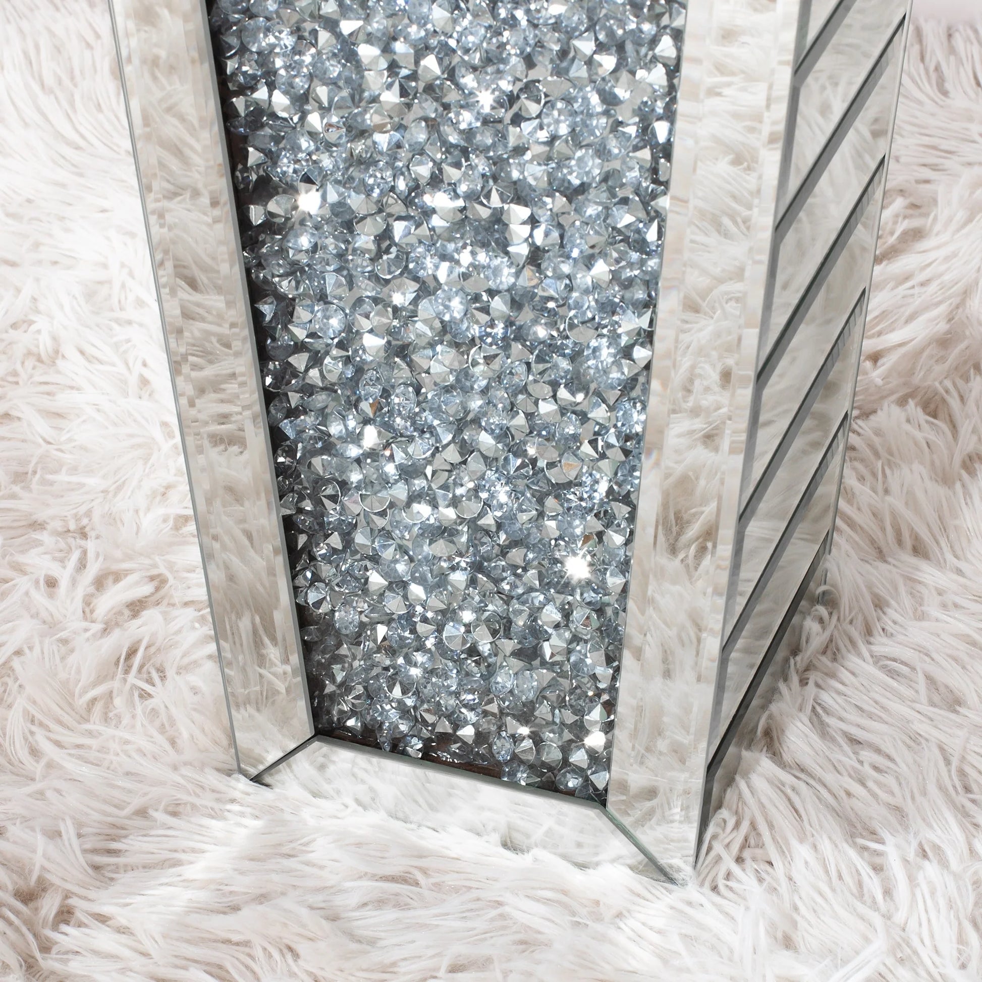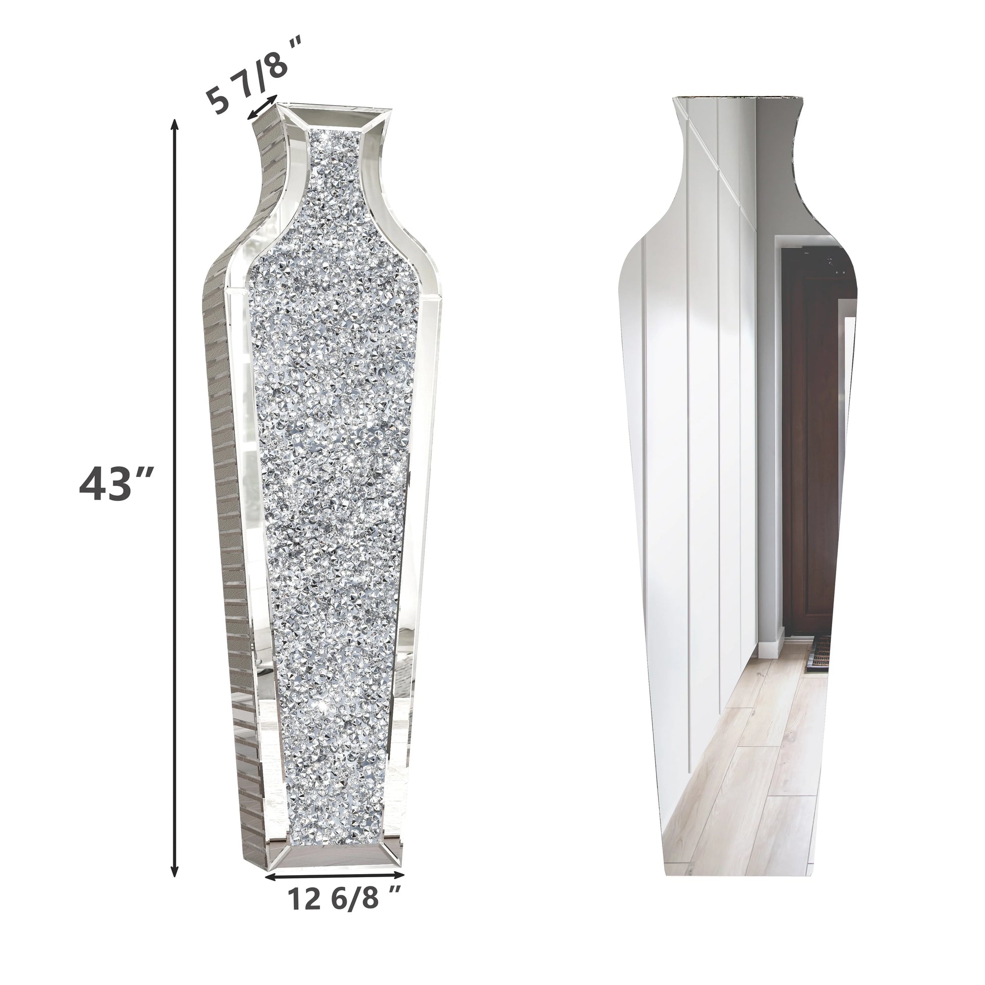 - Glam Design - One side of he mirror flower vase of is inlaid with shiny rhinestones. It is the sense of space in your home that appears brighter and more spacious.