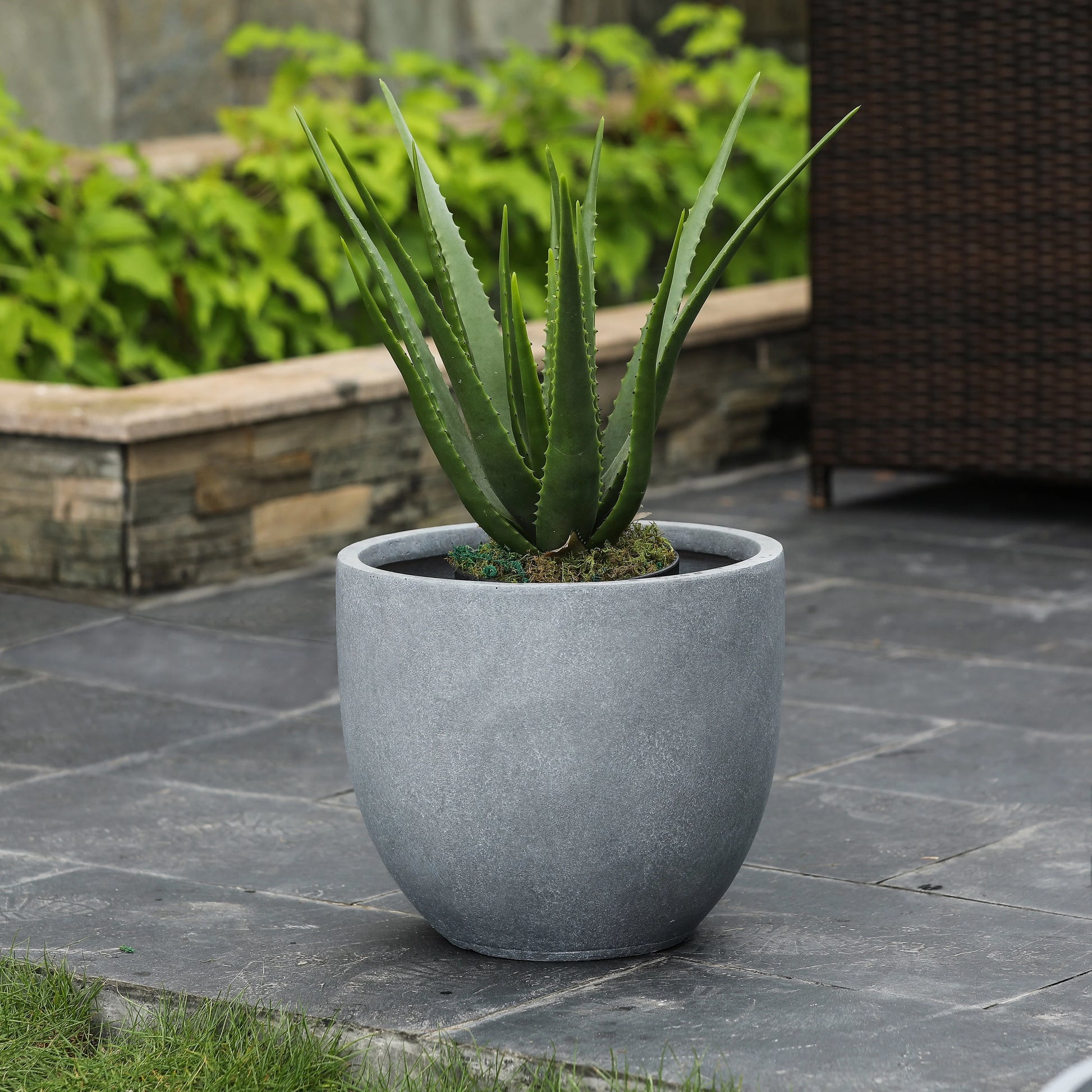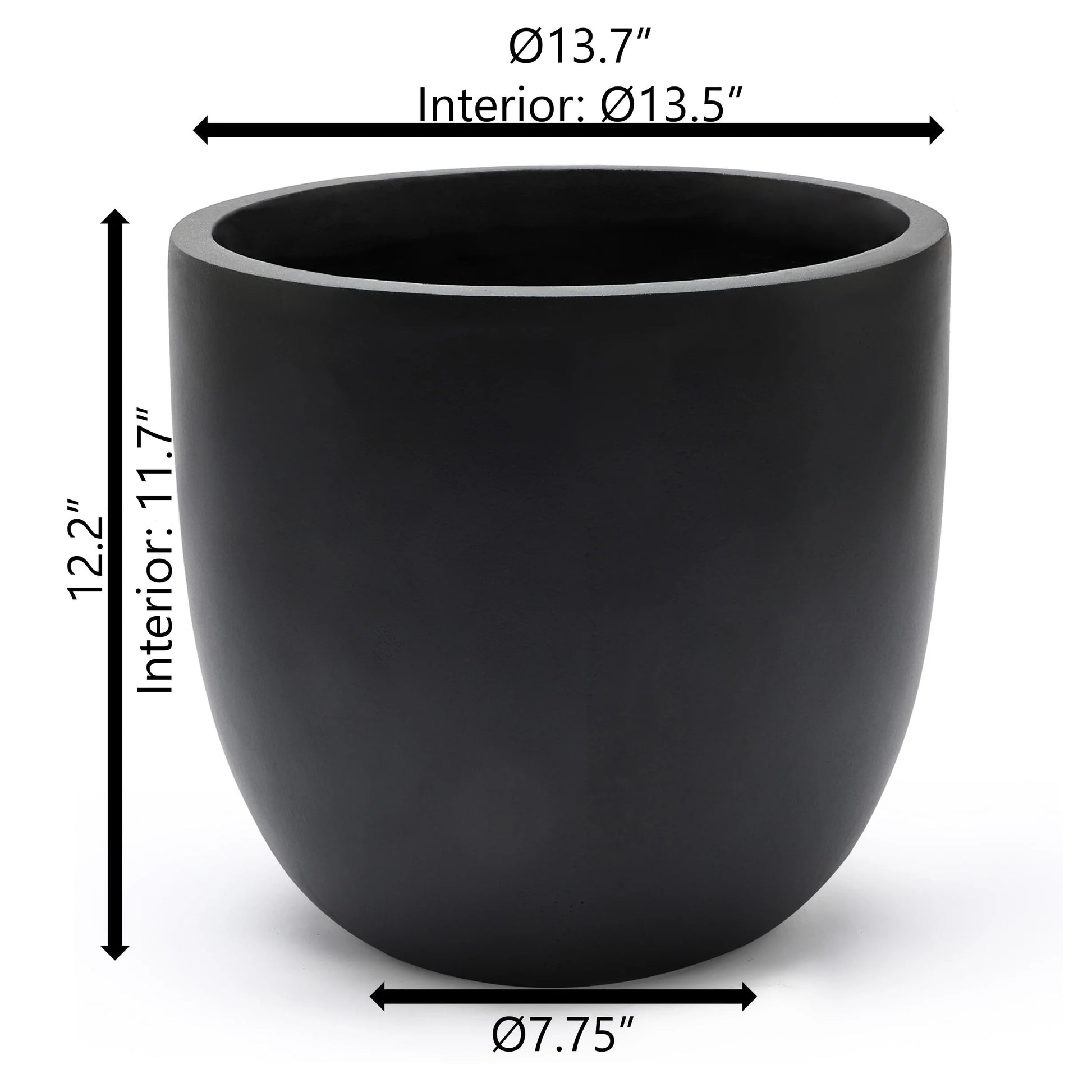 - Medium planter size: 12.2"H x 13.7"D; base size: 7.75"D; interior size: 11.7"H x 13.5"D; weight: 12.2 lbs; capacity: 332 oz; drainage hole: 0.8-1"D