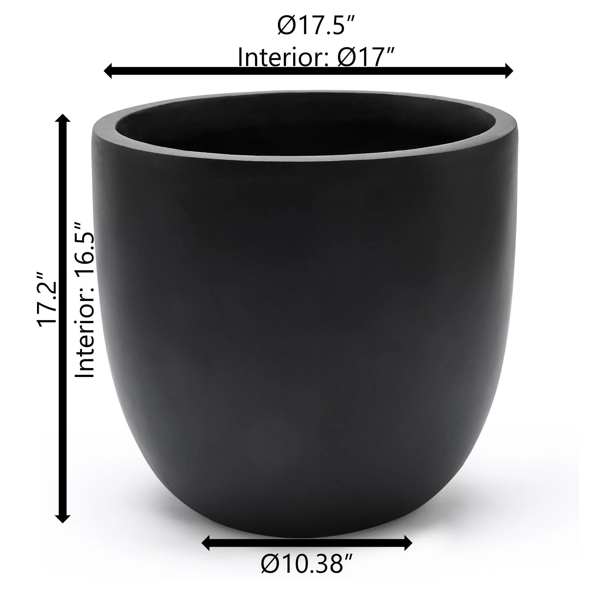 - Large planter size: 17.2"H x 17.5"D; base size: 10.38"D; interior size: 16.5"H x 17"D; weight: 17.25 lbs; capacity: 803 oz; drainage hole: 0.8-1"D