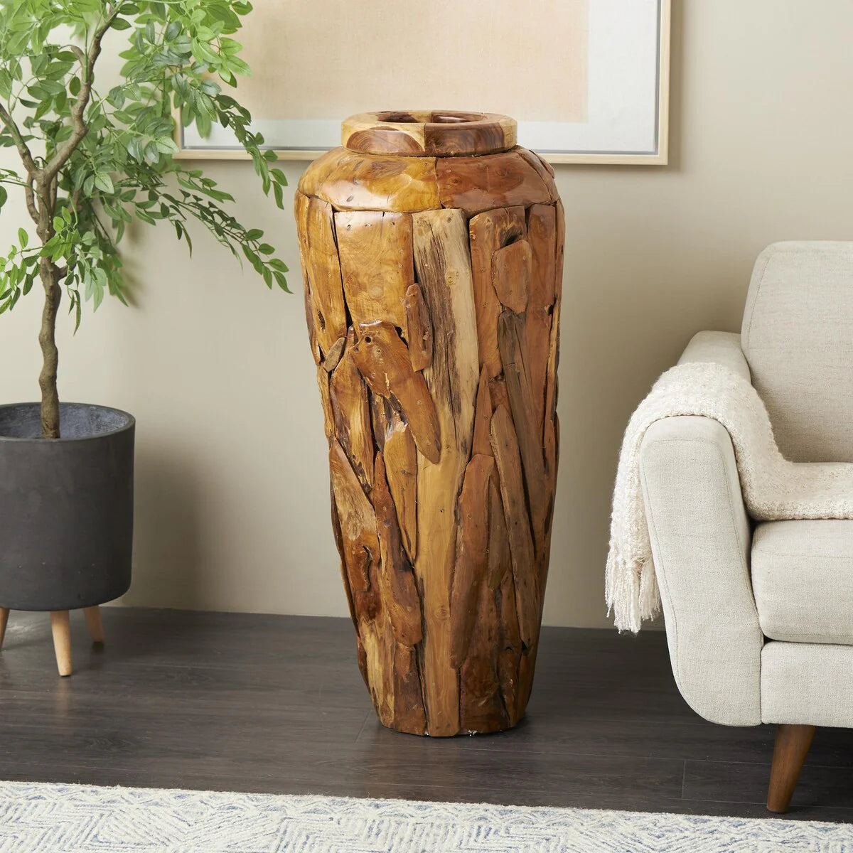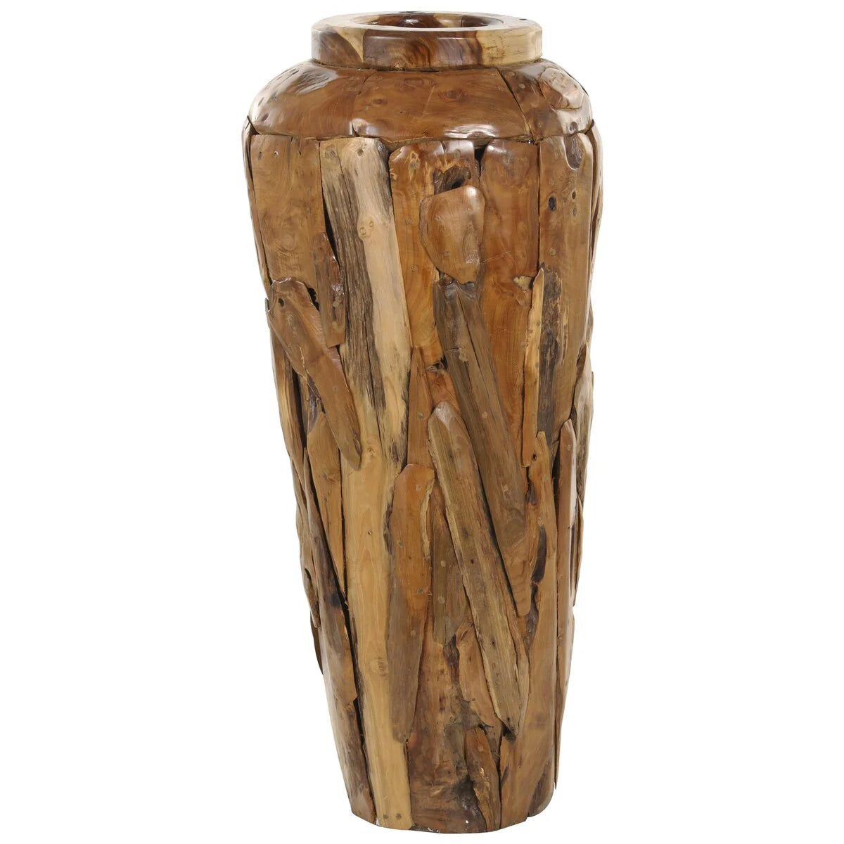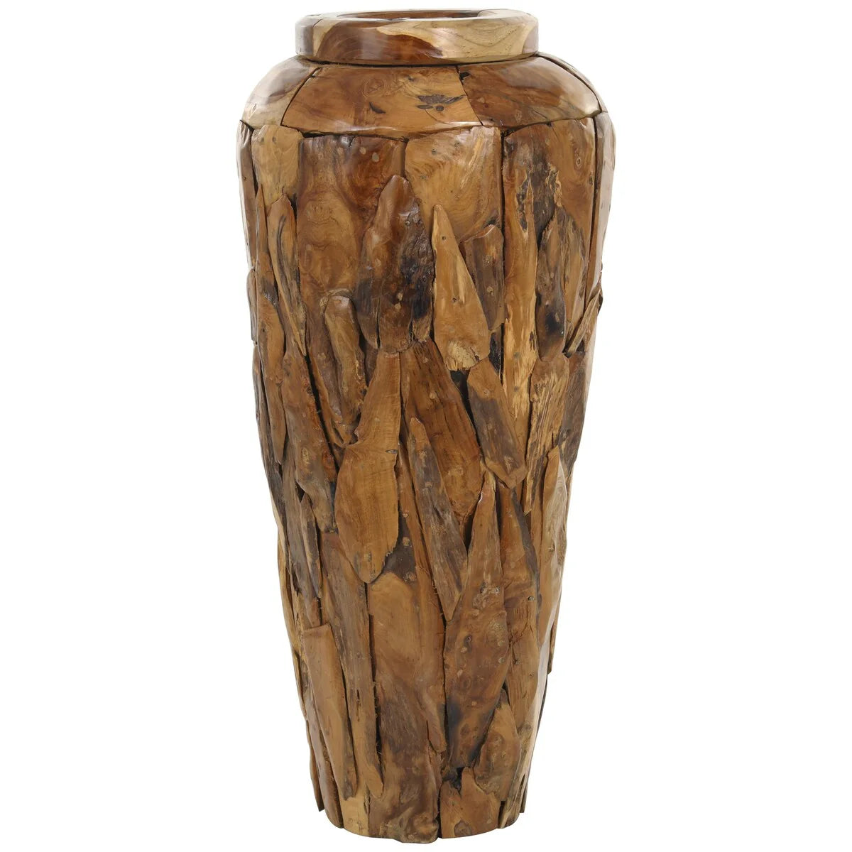 Teak Wood Handmade Floor Decorative Vase with Mosaic Live Edge Pieces - Brown - Roche River Decor