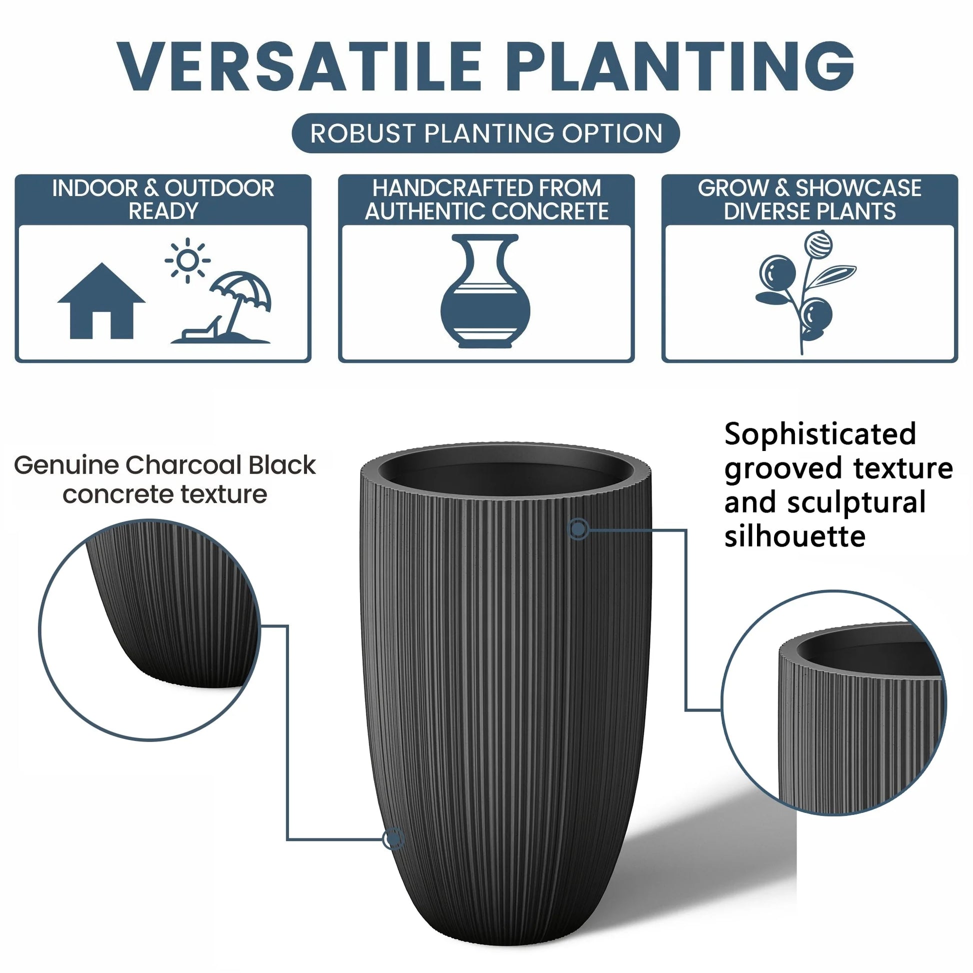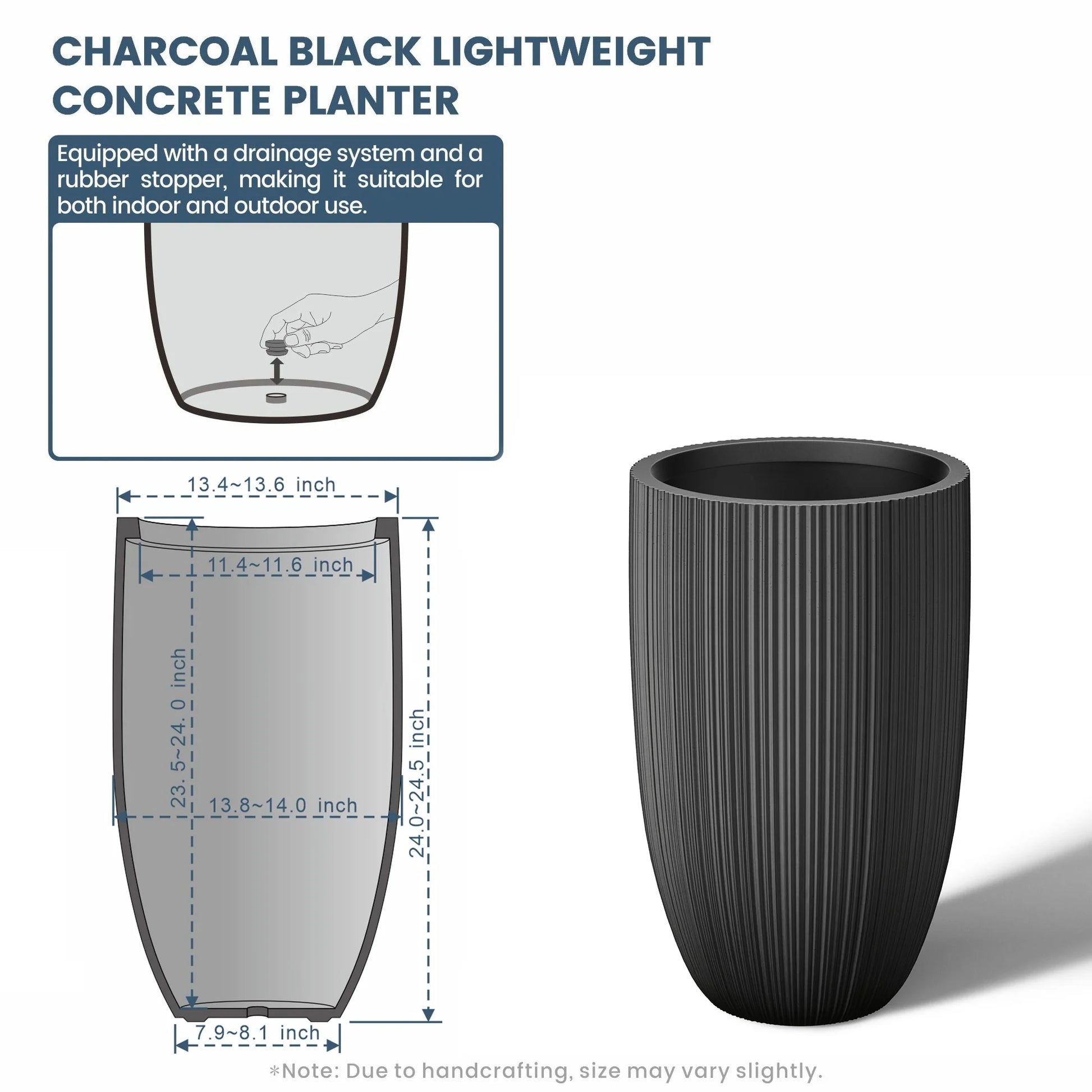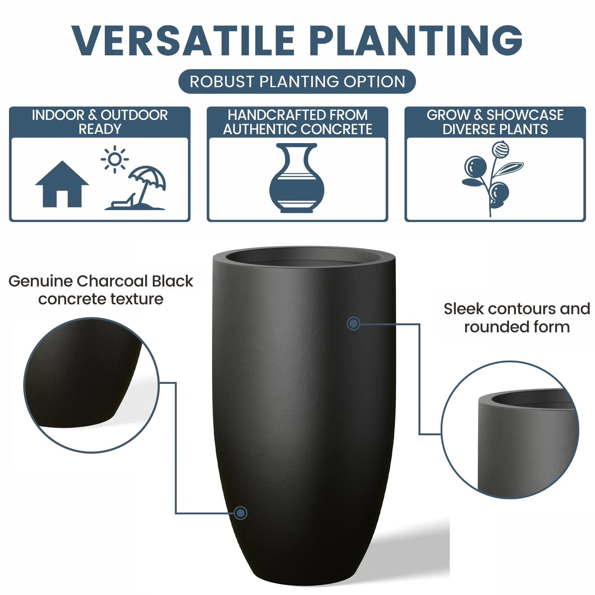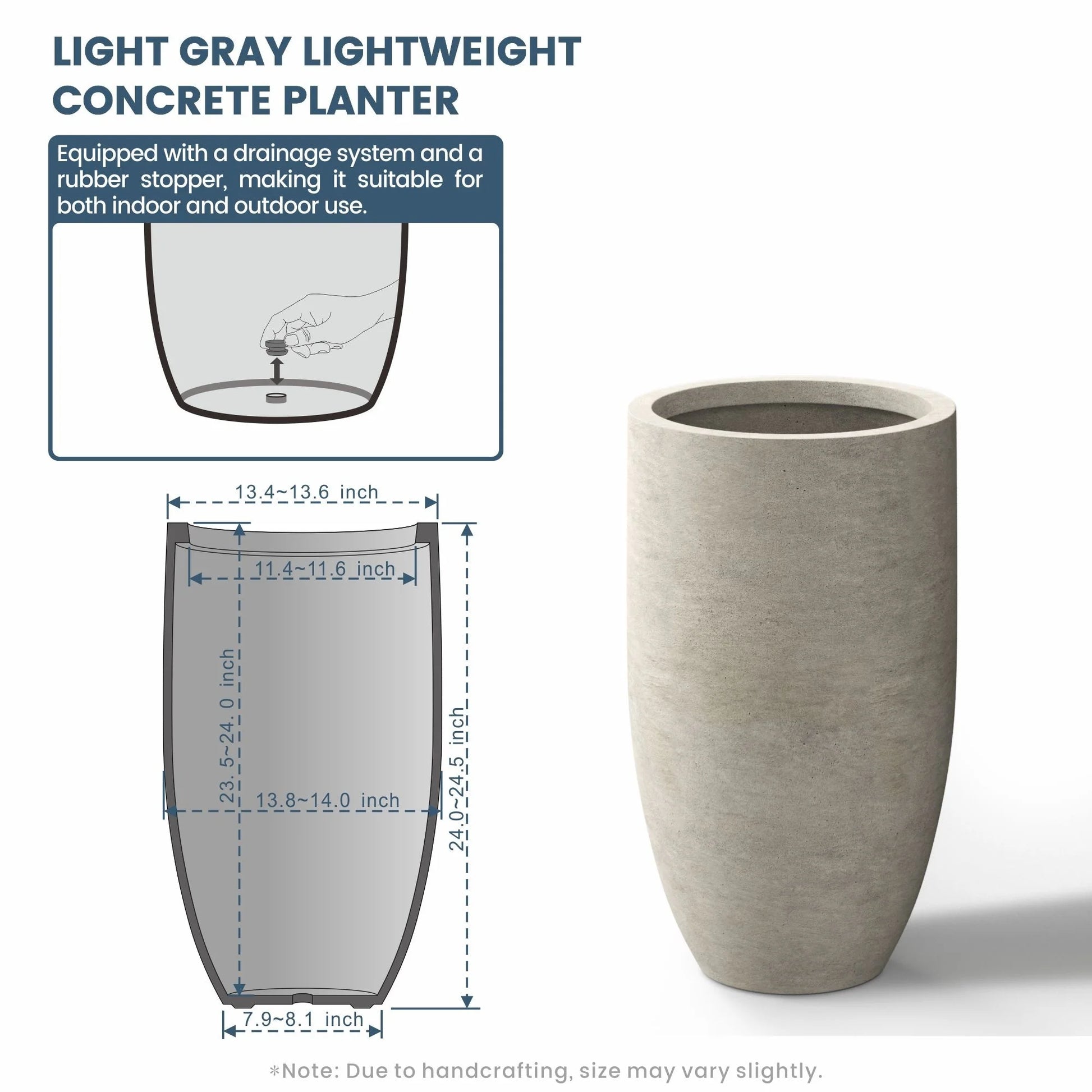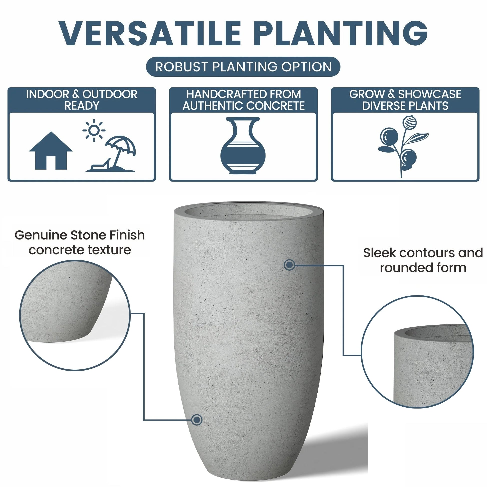 Textured Granite Gray Tall Concrete Round Plant Pots / Large Indoor and Outdoor flower Planters (13.5 Inch x 24.5 Inch)