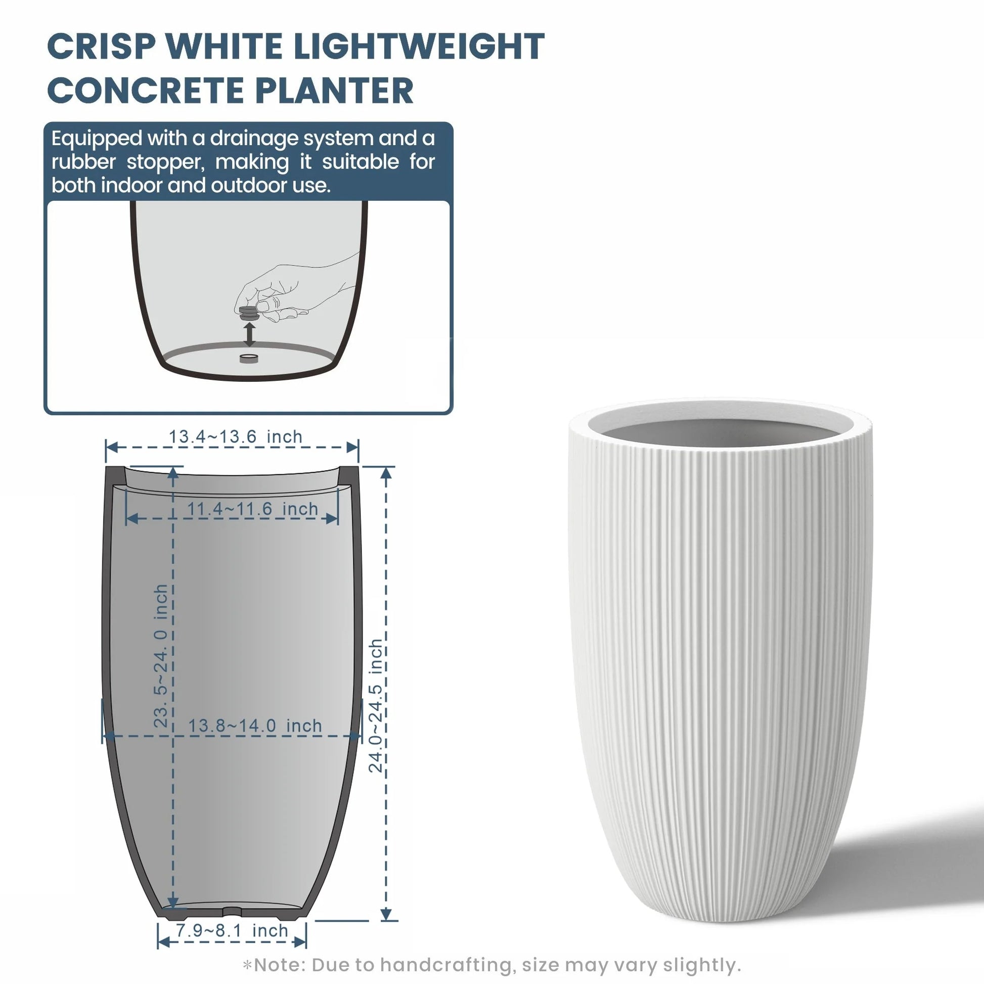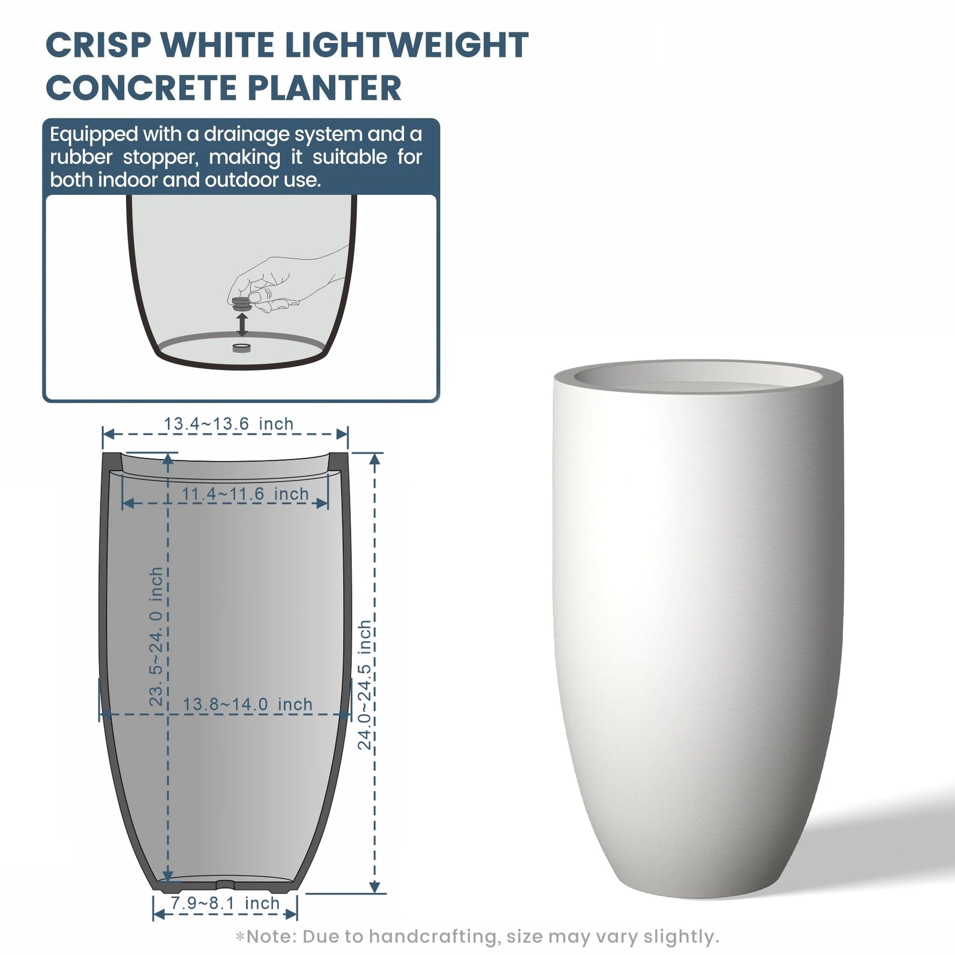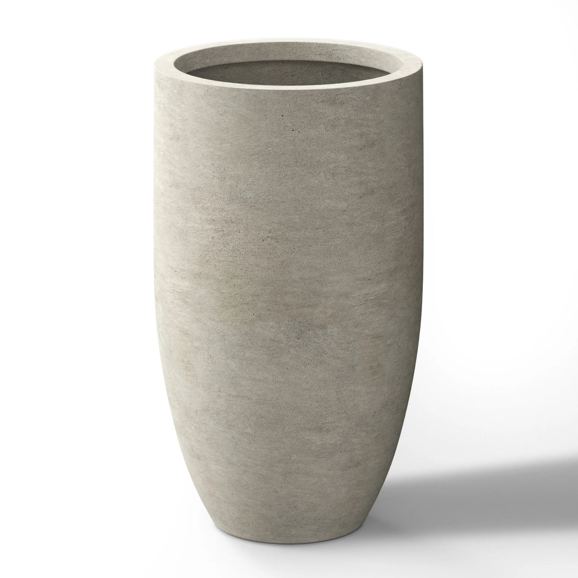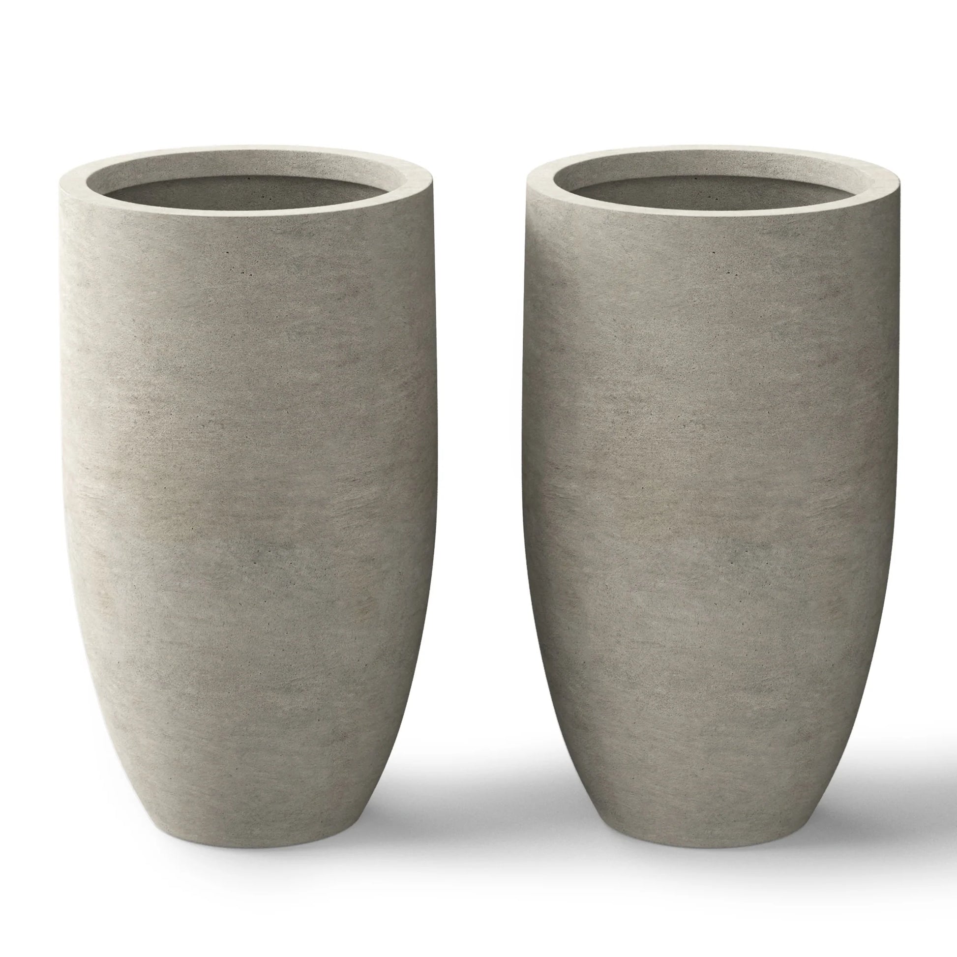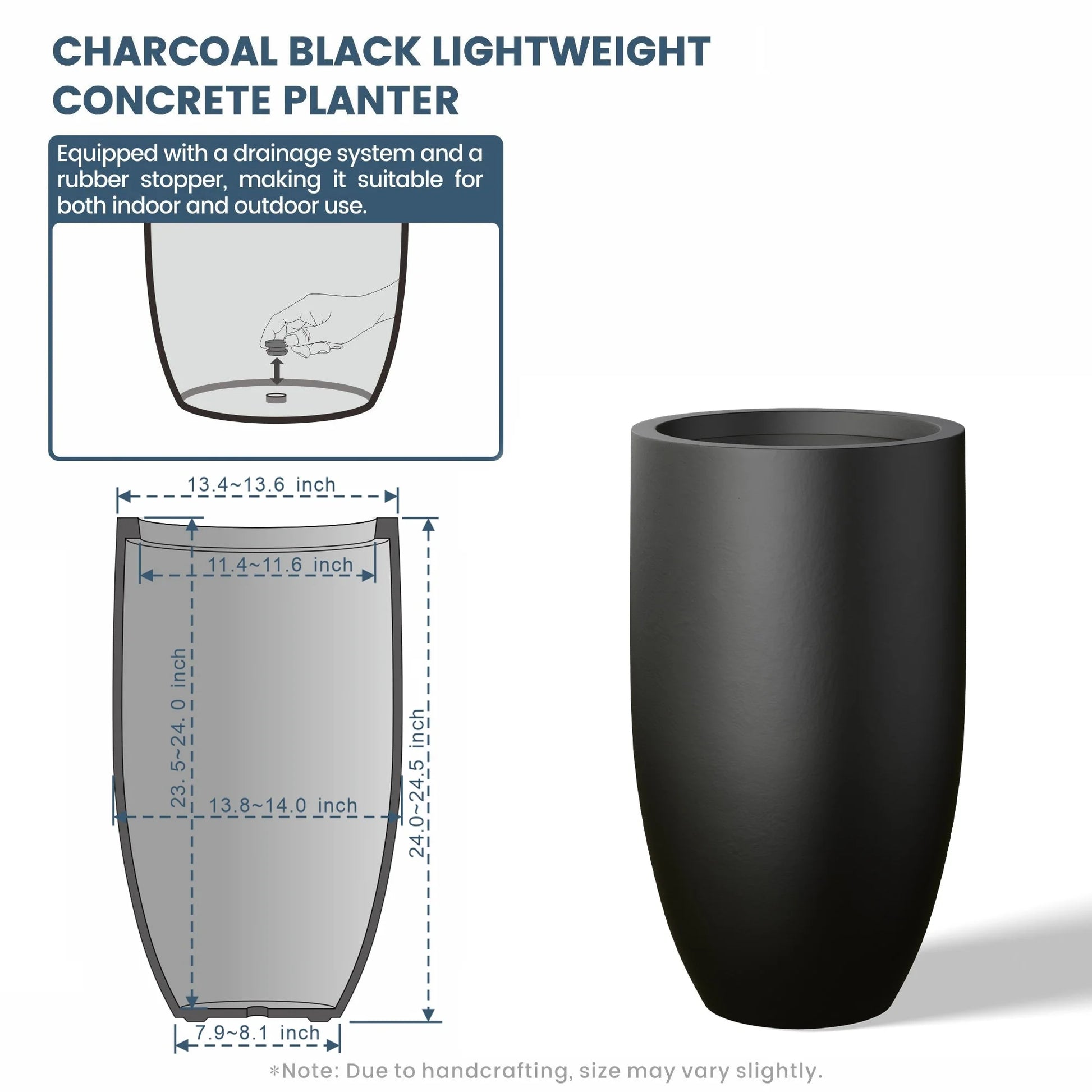Textured Granite Gray Tall Concrete Round Plant Pots / Large Indoor and Outdoor flower Planters (13.5 Inch x 24.5 Inch)