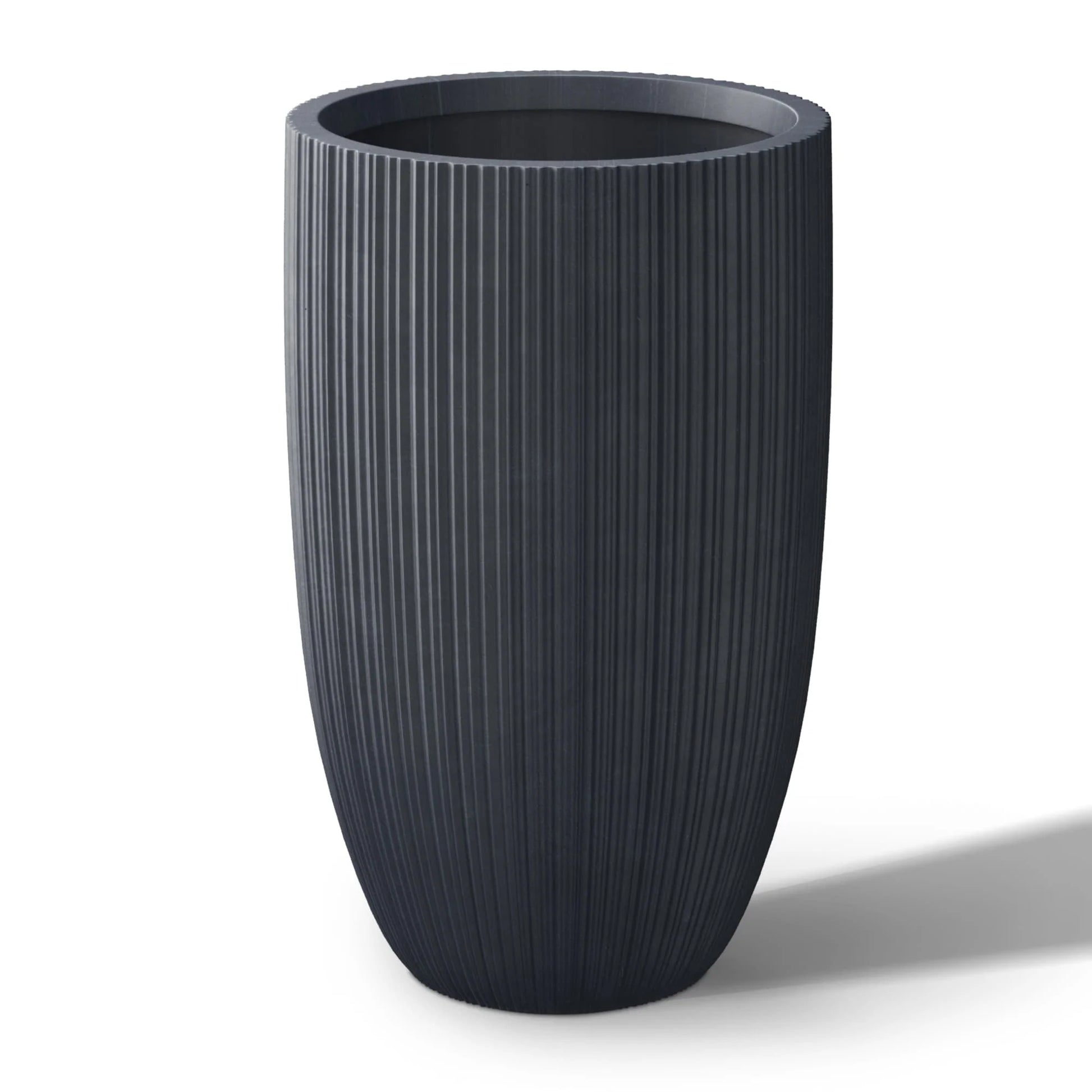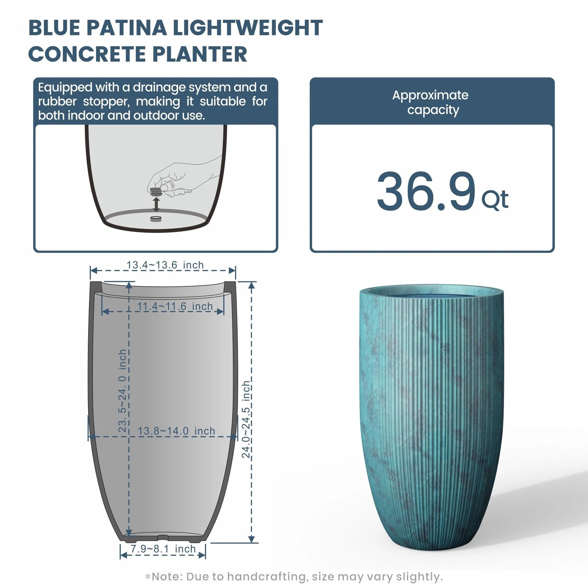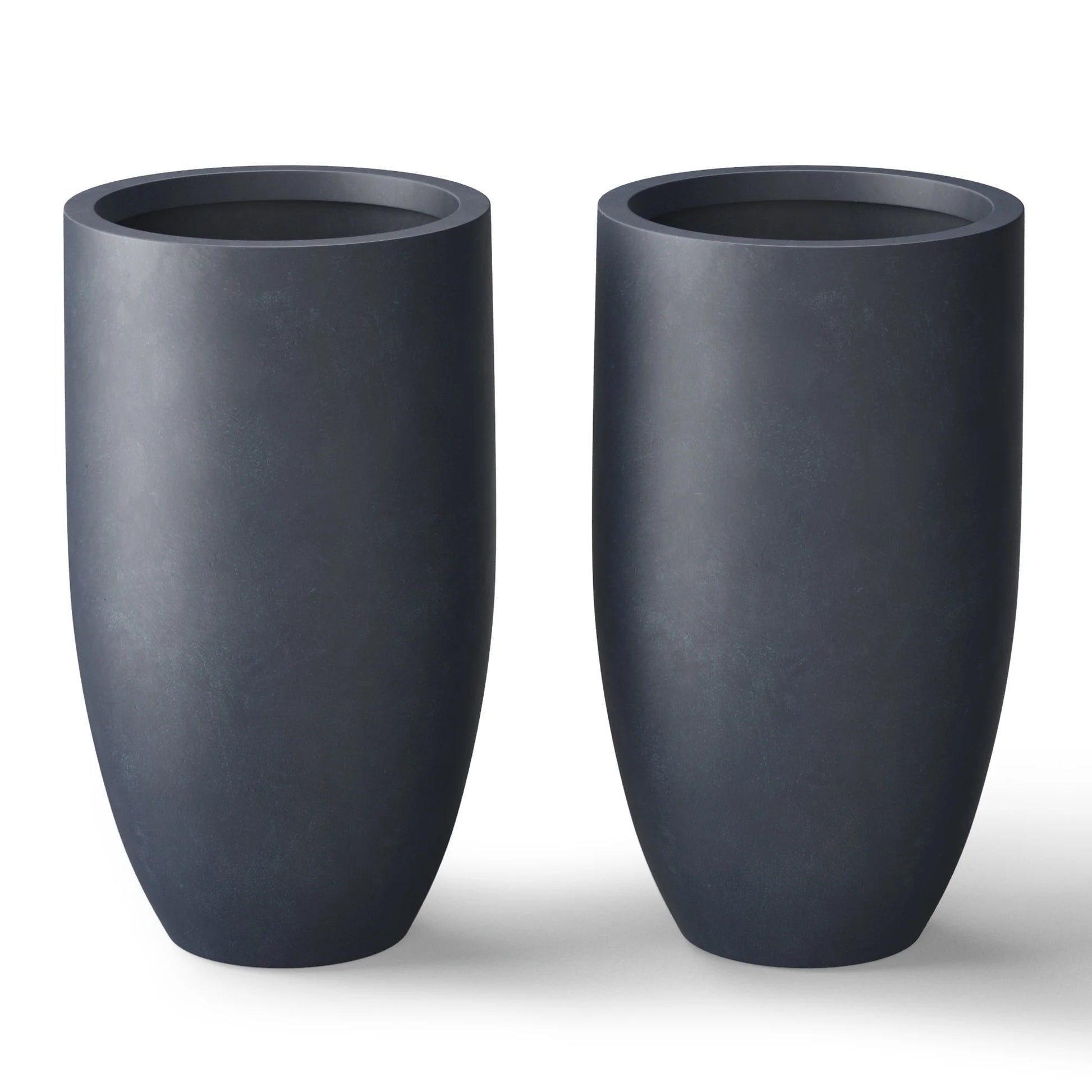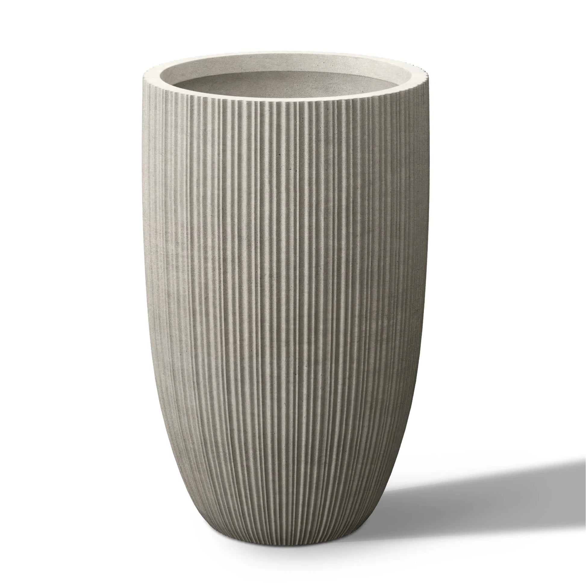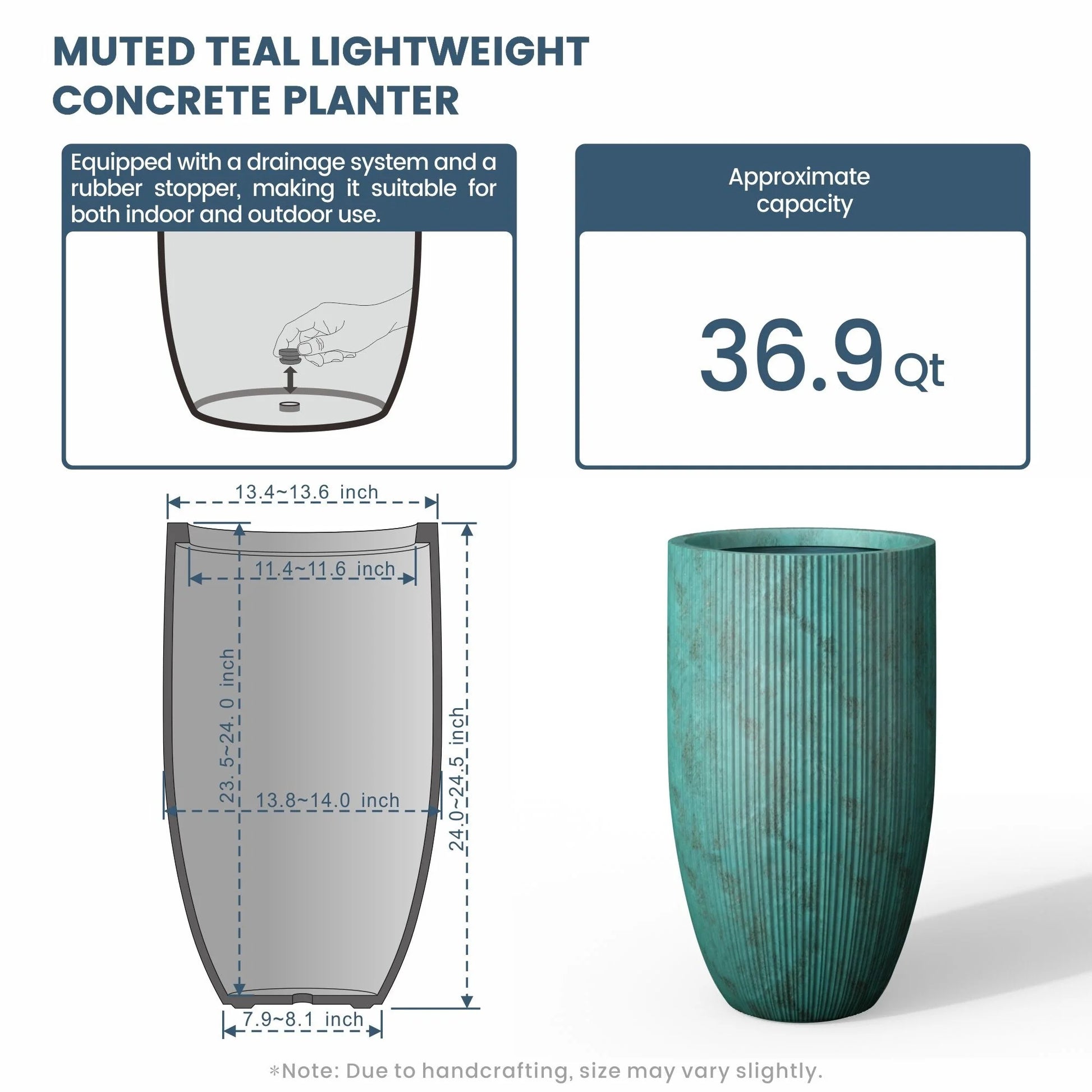 Textured Granite Gray Tall Concrete Round Plant Pots / Large Indoor and Outdoor flower Planters (13.5 Inch x 24.5 Inch)