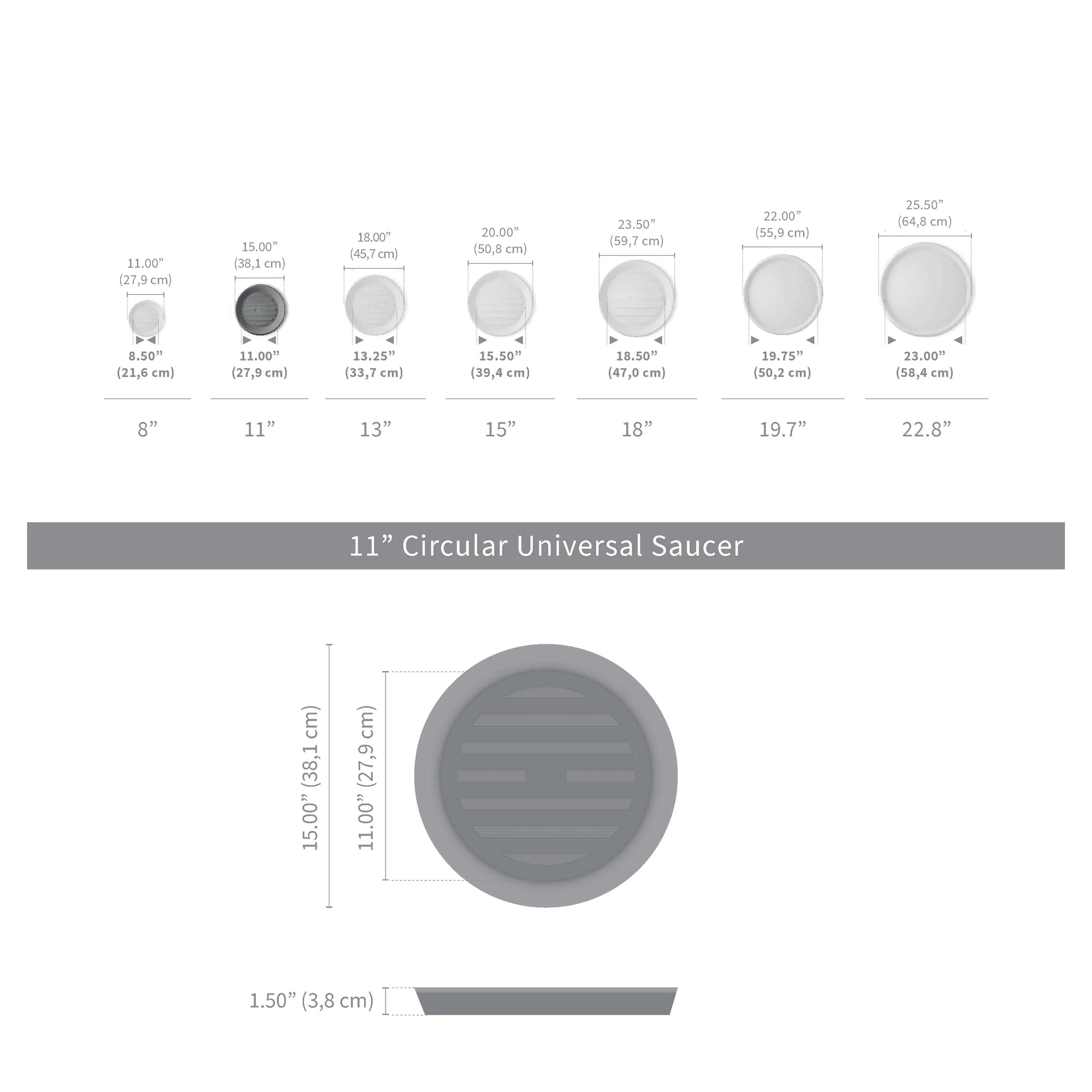 Coordinate your round planter with the right color and sized planter tray. Especially when using indoors, you will want to protect surfaces with the Universal round plant saucer. These heavy-duty plant trays are designed to withstand the heavier pots and are UV stabilized to ensure a fade-free and long-lasting use. Use them with any existing flowerpots or containers at home.