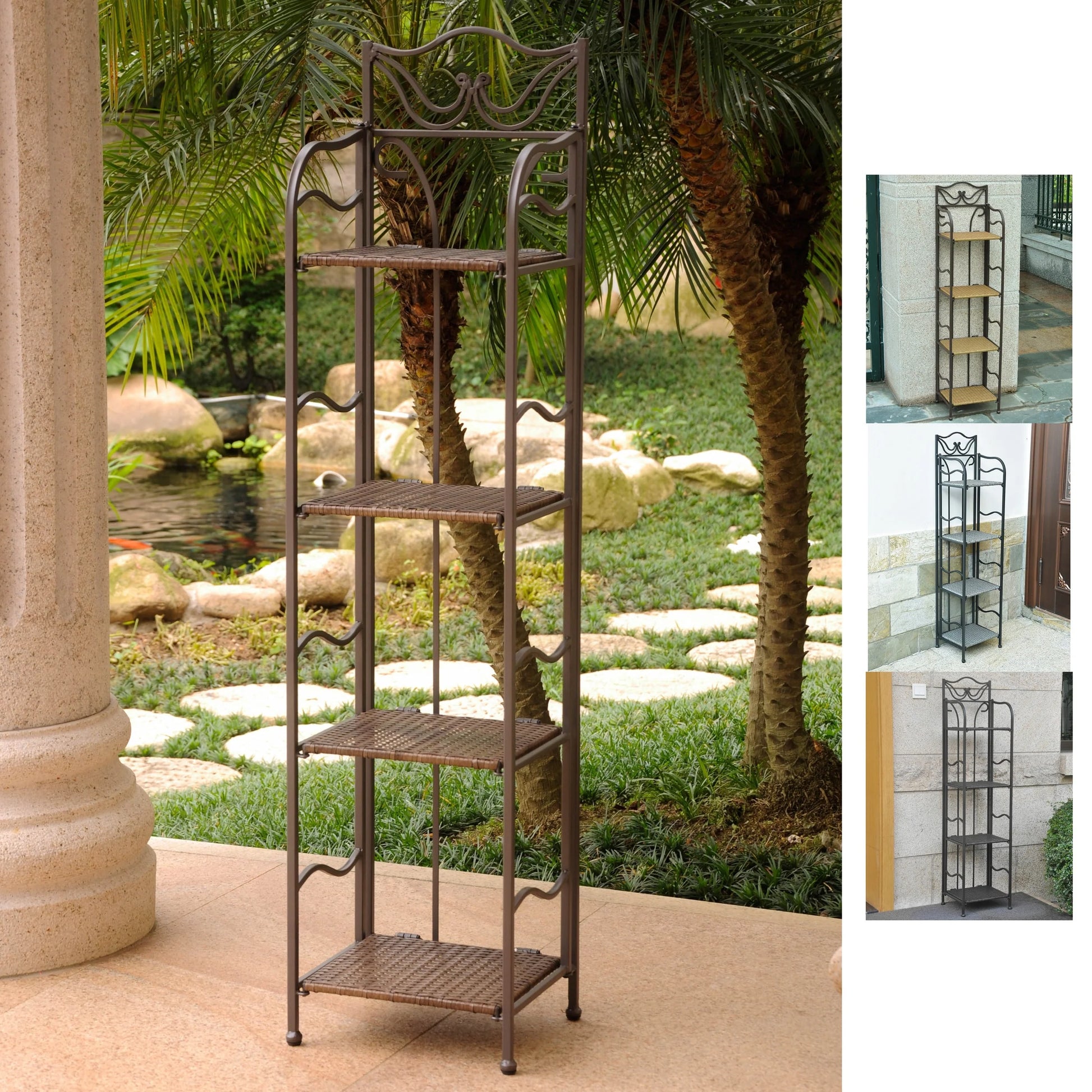 Elevate your gardening game with the International Caravan Valencia 4-tier Plant Shelf. Perfect for indoor or outdoor use, this plant shelf features four spacious shelves that provide ample space for growing climbing plants, potted herbs, and more. Made of sturdy powder-coated steel, each shelf can support up to 30 pounds, giving you the freedom to choose pots and accessories without limitations. With its beautiful resin wicker weave in various colors, UV protection, and weather-resistant materials, this plant shelf is a perfect addition to your garden, kitchen, bathroom, or deck.