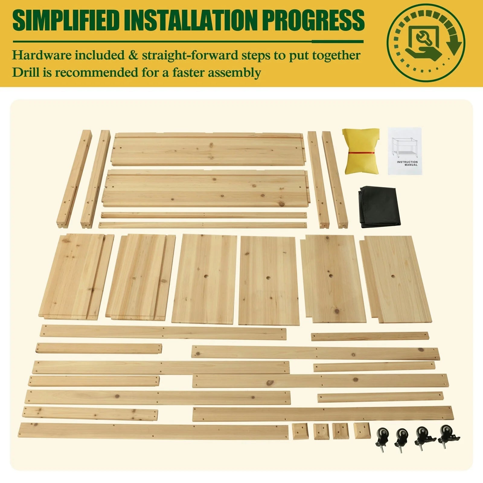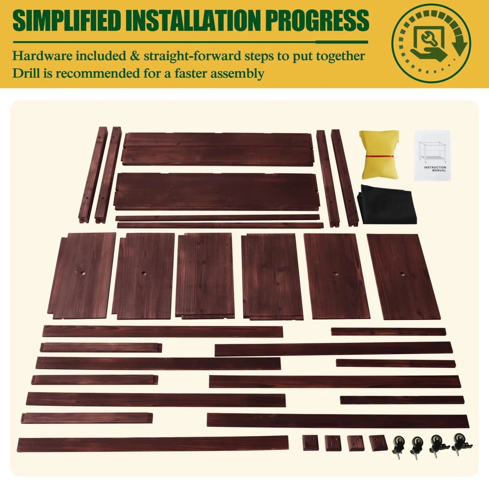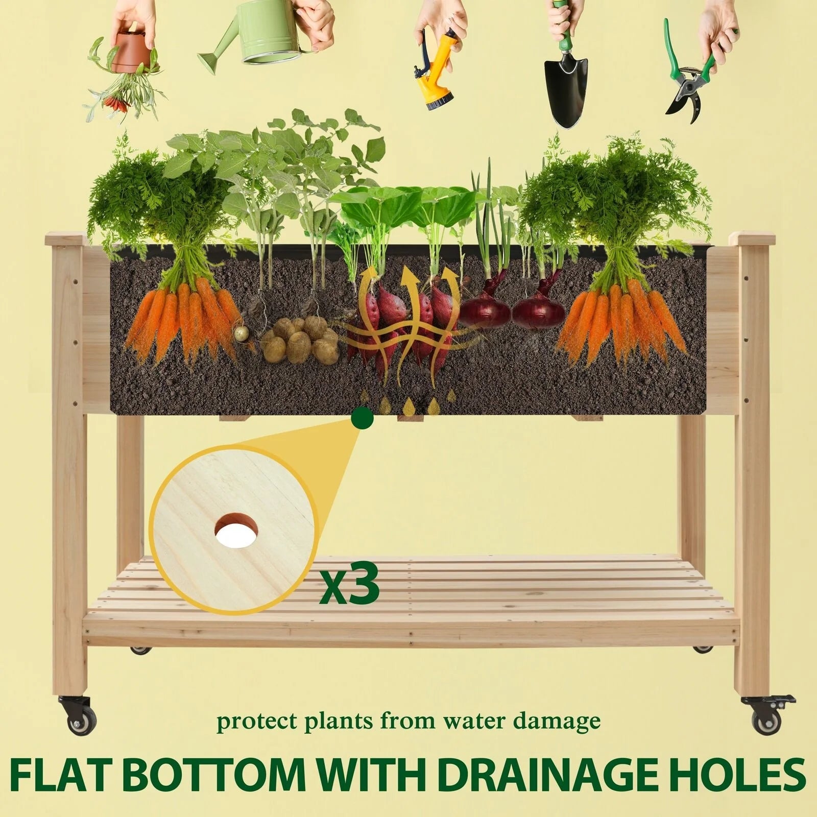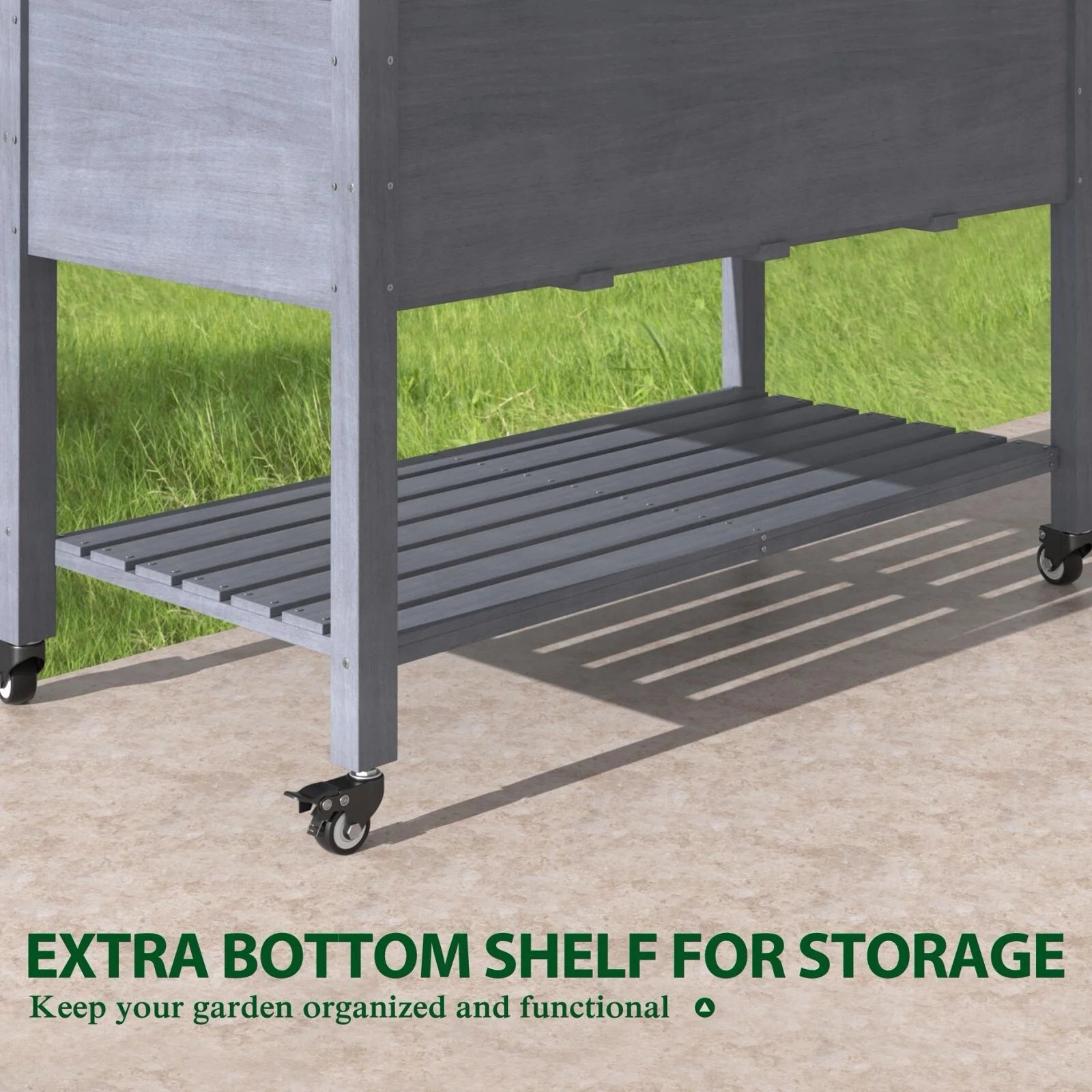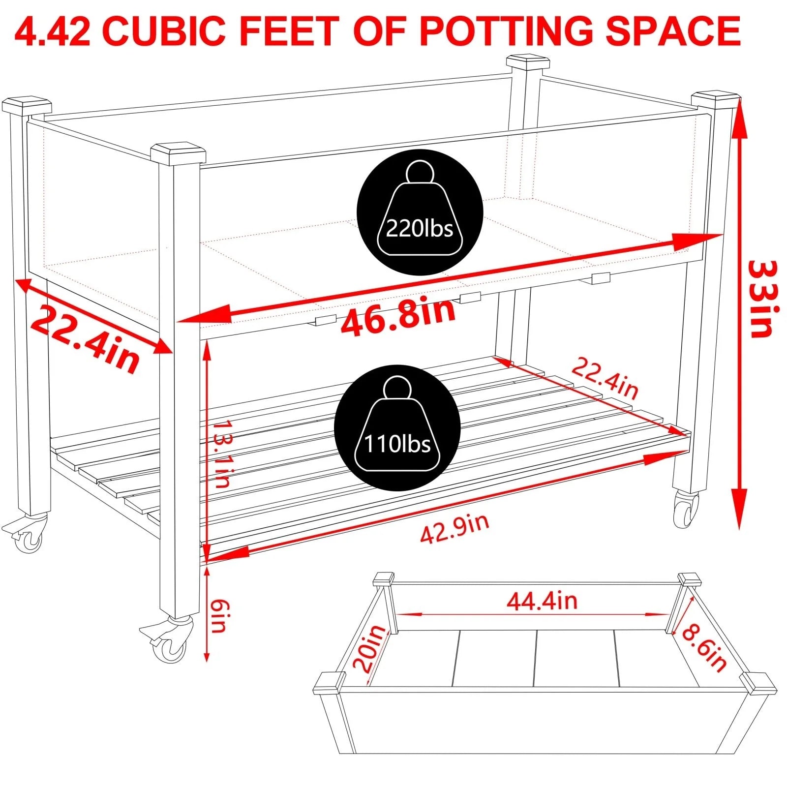VEIKOUS Wood Raised Garden Bed Planter Box with Four Wheels and Legs, 46.8''W x 22.4''D x 33''H - 46.8''W x 22.4''D x 33''H