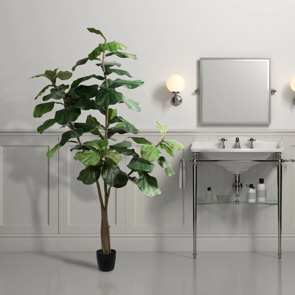 Vickerman 6' Artificial Potted Fiddle Tree. Elevate your indoor decor with the 6-Foot Tall Potted Faux Fiddle Tree with 65 Leaves by Vickerman and enjoy a touch of nature in your home or office. This faux fiddle leaf fig tree is a stunning accent piece for your home decor, featuring realistic features and intricate details that make it stand out. Its vibrant green color is perfect for adding a pop of color to any room. Designed to fill empty corners and enhance your space with greenery decor, this tall faux plant is perfect. The artificial floor plant is maintenance-free, so you can enjoy the beauty of the fiddle tree without having to worry about watering or pruning. A simple wipe with a dry cloth is all you need to remove any dust. Ideal for indoor use, this faux fiddle leaf fig tree is perfect for adding some natural charm to your decor. Whether you're searching for a tall fake plant, greenery decor, or artificial indoor trees, this faux fiddle leaf tree is the perfect choice to add natural charm to your interior decor.