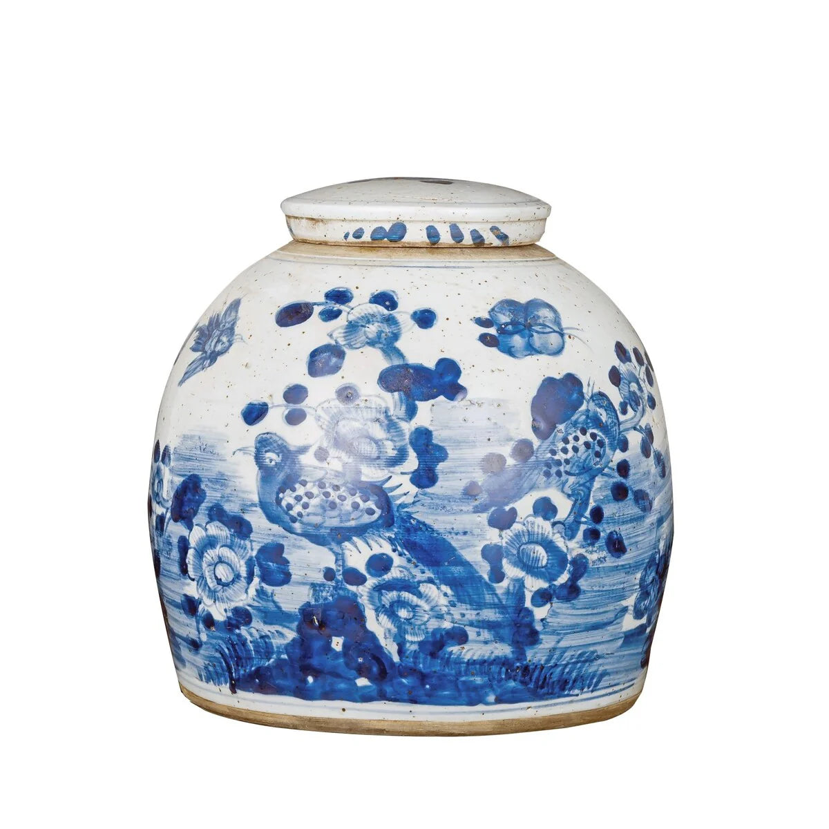 Vintage Ming Jar Flower Bird Motif - Large. High fire porcelain, hand shaped, hand painted. Made from the region where ceramic and porcelain was invented, a small town in southern China, known as the Capital of Ceramic. Hand crafted item, minor shape, size, finish variation is expected, it is part of the character. Can be used in-door or out-door, water proof, weather proof.