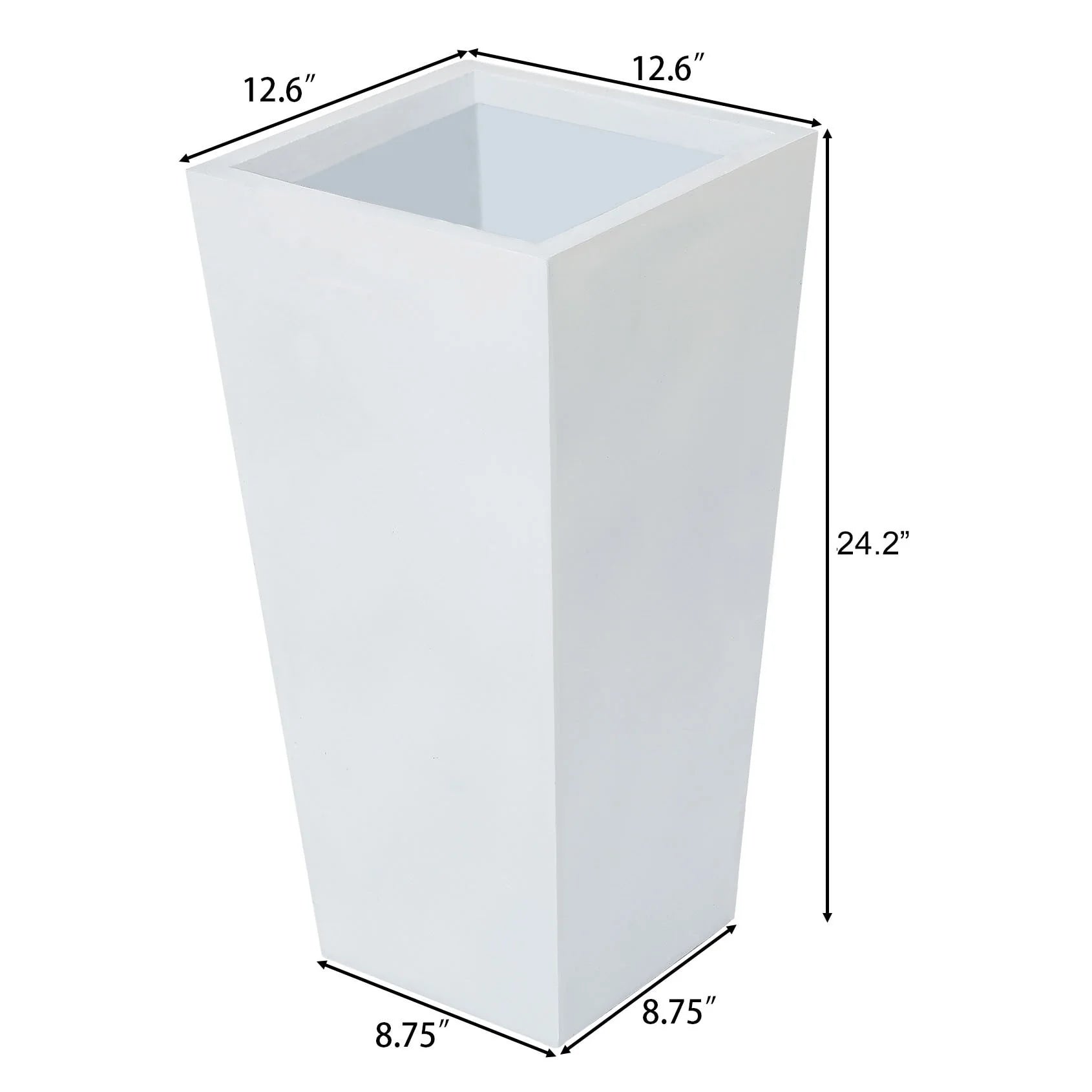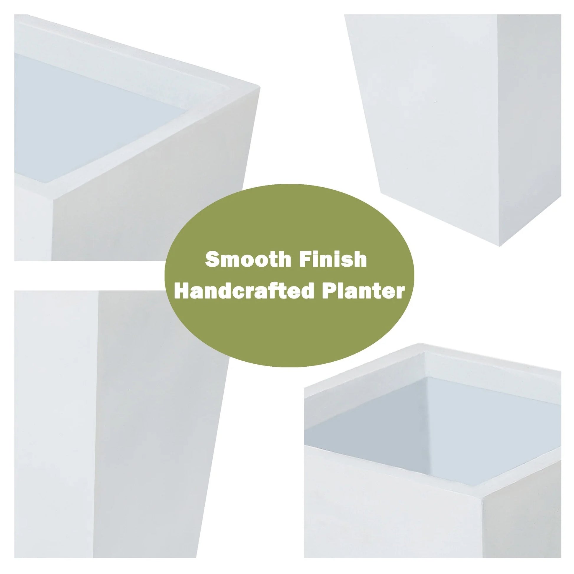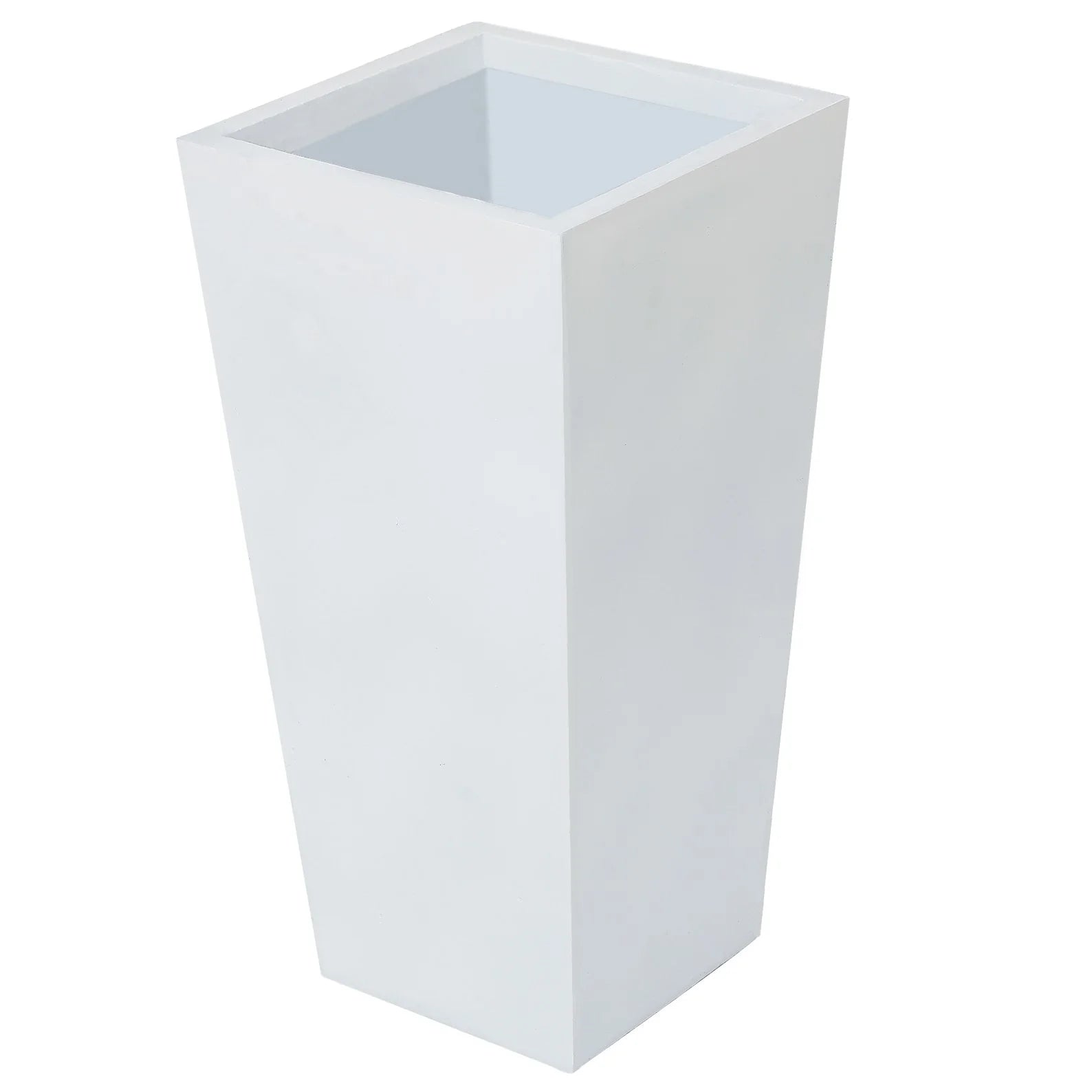 This tall and distinctive planter is the perfect addition to any front entrance. This design showcases a modern, sleek square tapered design, finished in a brilliant white perfect for the modern home. Designed to live outdoors, it is crafted from weather-resistant magnesium oxide material that does not mind UV light beaming down or rainstorms rolling through, and this planter is durable and designed for all seasons. The planter includes a drainage hole so you can avoid over watering your plant. It also includes a drainage plug, so you can place it indoors to freshen up your home as well! Whether on your porch, in your sun room or entryway, this planter is the perfect complement to your style!