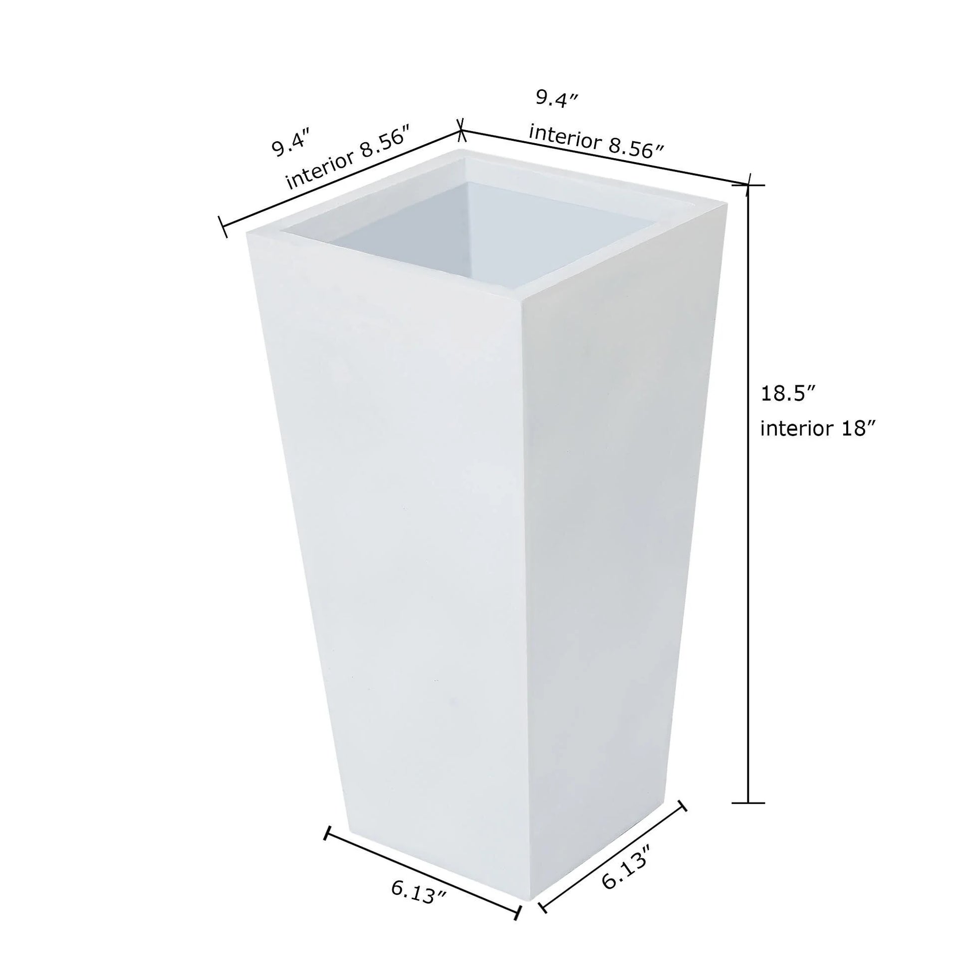White Tall Square Tapered Indoor & Outdoor Planter